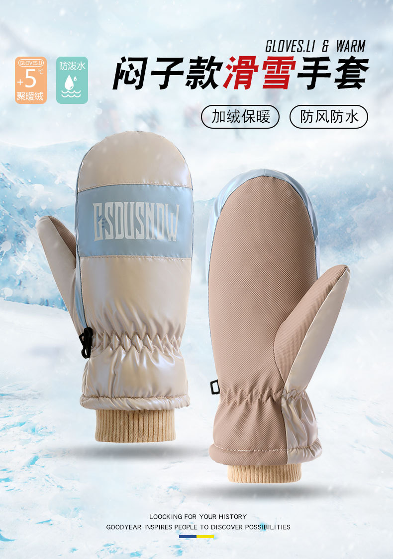 겨울 스키 장갑은 방풍 차가운 안감 벨벳 패딩 따뜻한 팜 PU 미끄럼 방지 방지