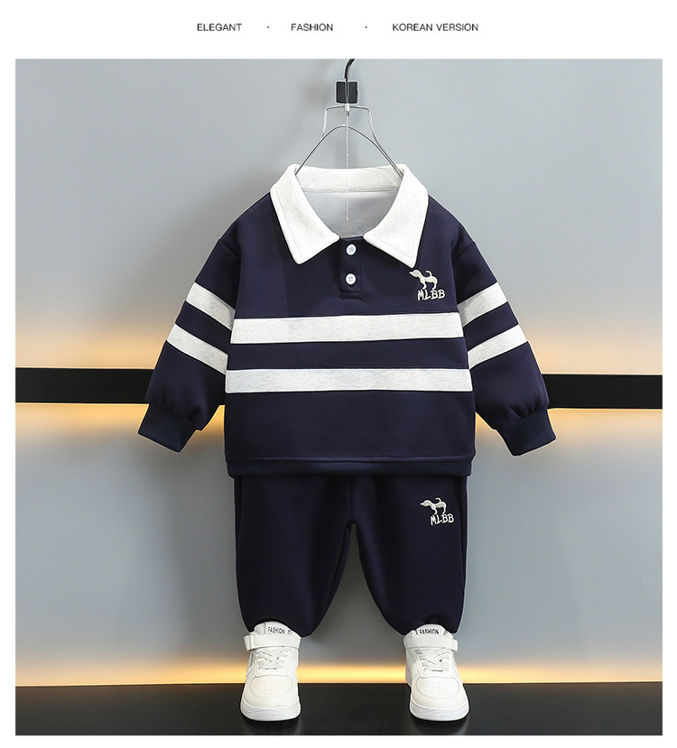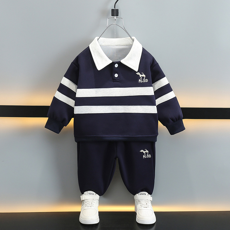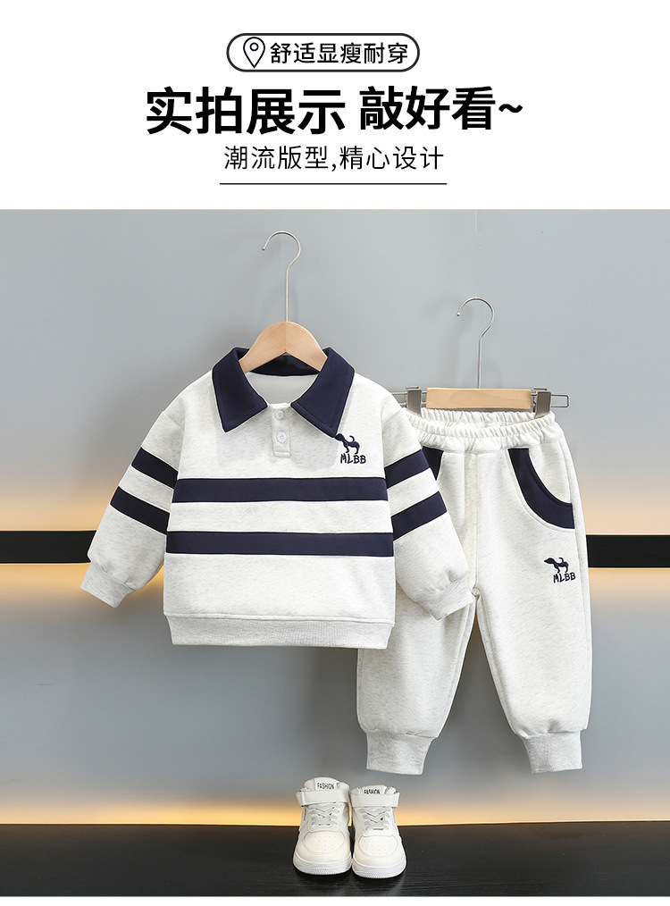 어린이 봄과 가을 폴로 셔츠 세트 2024 새로운 어린이 시원한 잘 생긴 스웨터 투피스 대외 무역 아동복 조수 의류스토어 가기