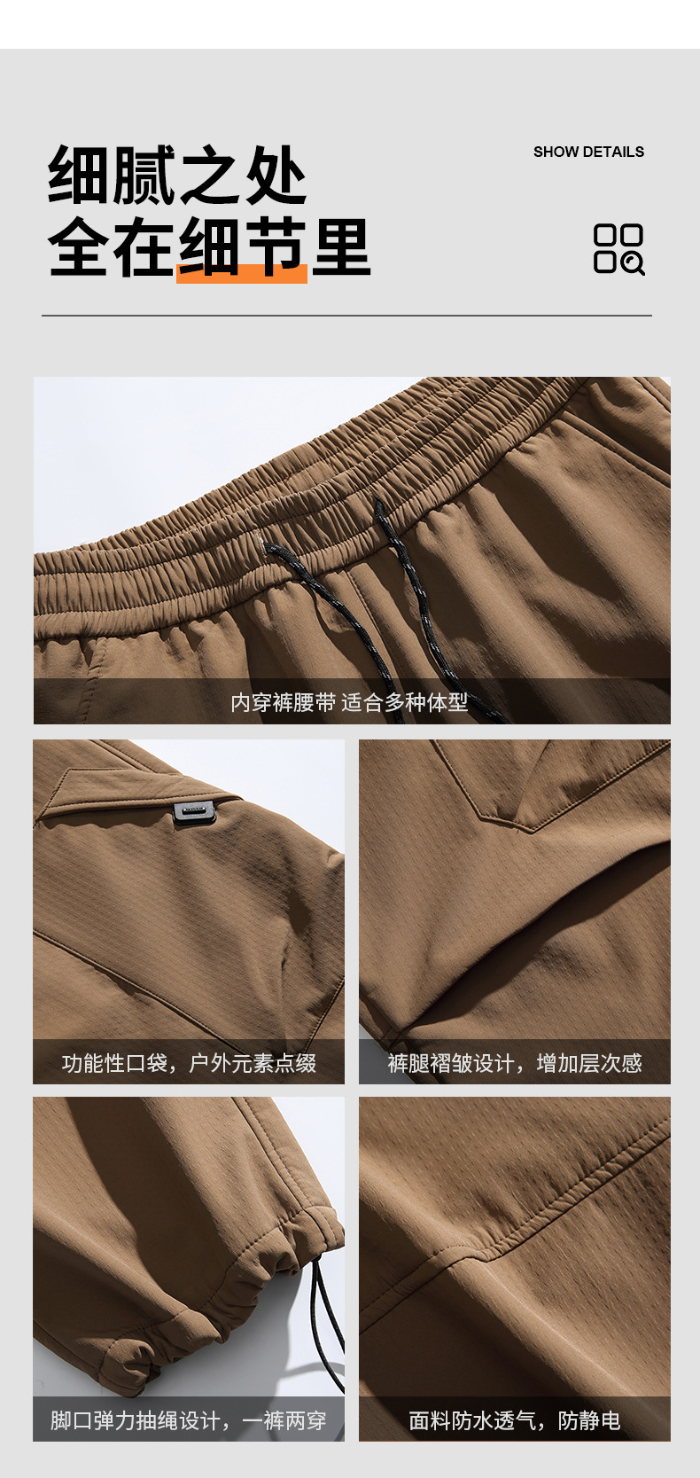IZEXX 트렌디 브랜드 아웃도어 스포츠 3중 방수 봄가을 남성용 카고 팬츠, 대형 포켓 방수 아메리칸 스타일 낙하산부 바지, 스트레이트 핏스토어 가기