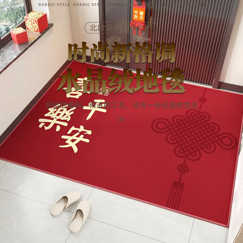 입구 문 매트 고급 빨간색 축제 입구 미끄럼 방지 매트 가정용 문 입구 크리스탈 벨벳 더러운 방지 발 매트스토어 가기
