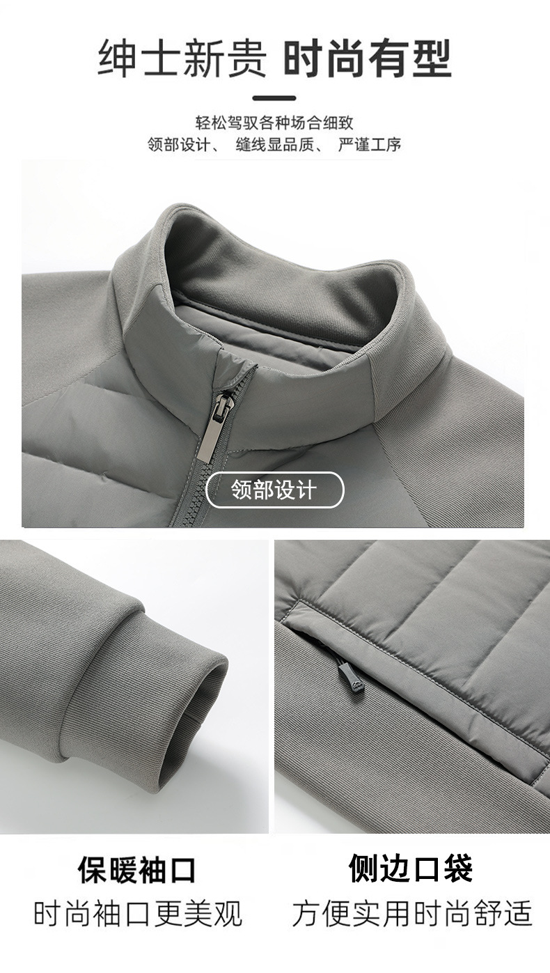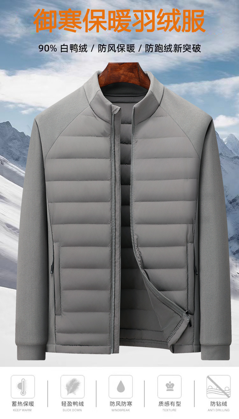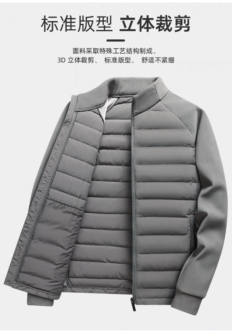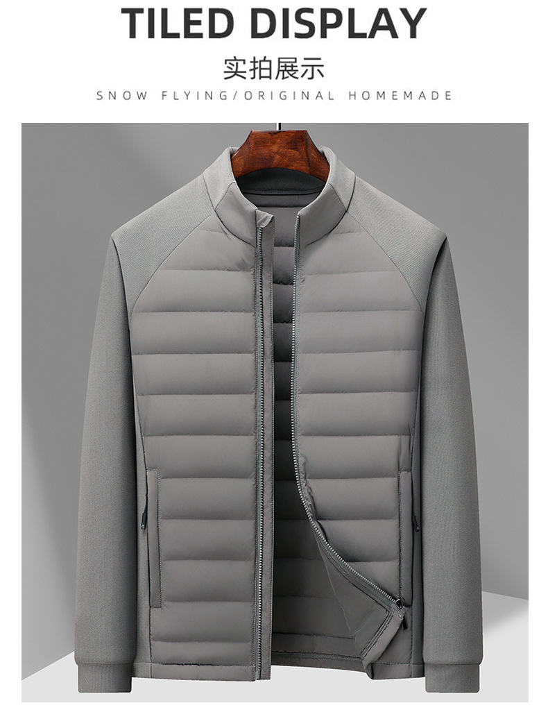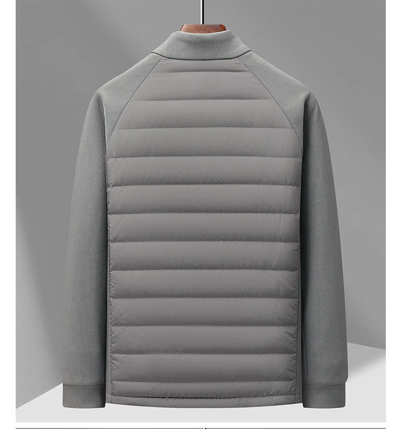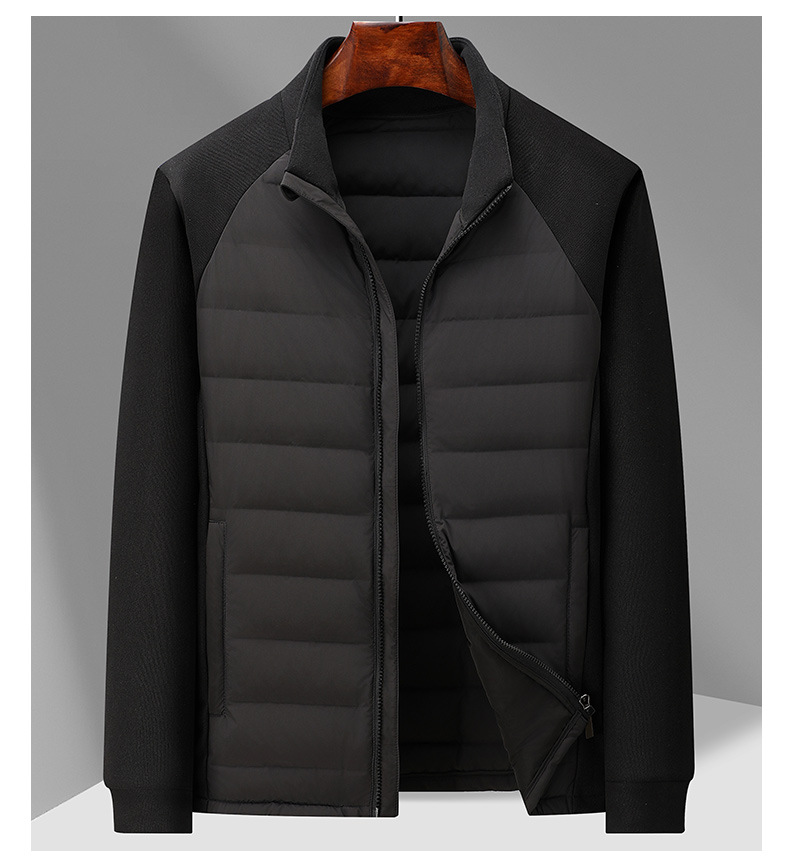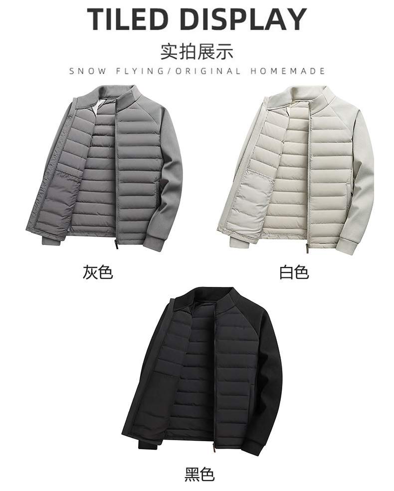 국경 간 도매, 2025년형 니트 스플라이싱 화이트 덕다운 남성용 스탠드 칼라 경량 다운 재킷, 가을 겨울용 코트스토어 가기