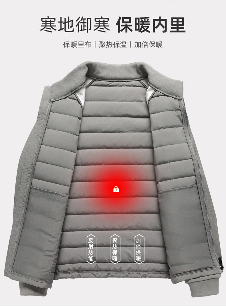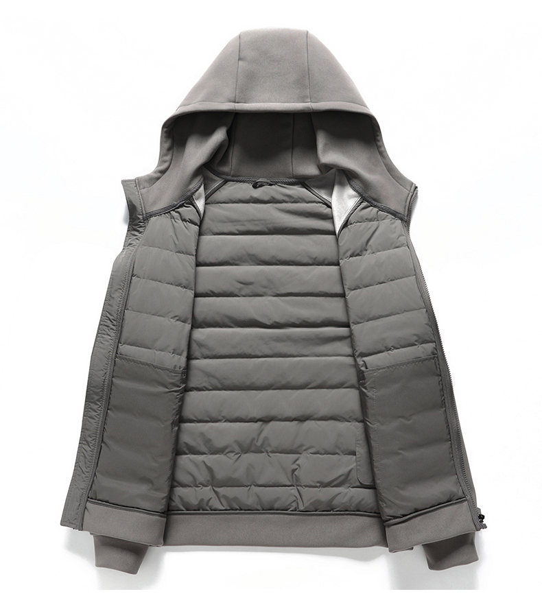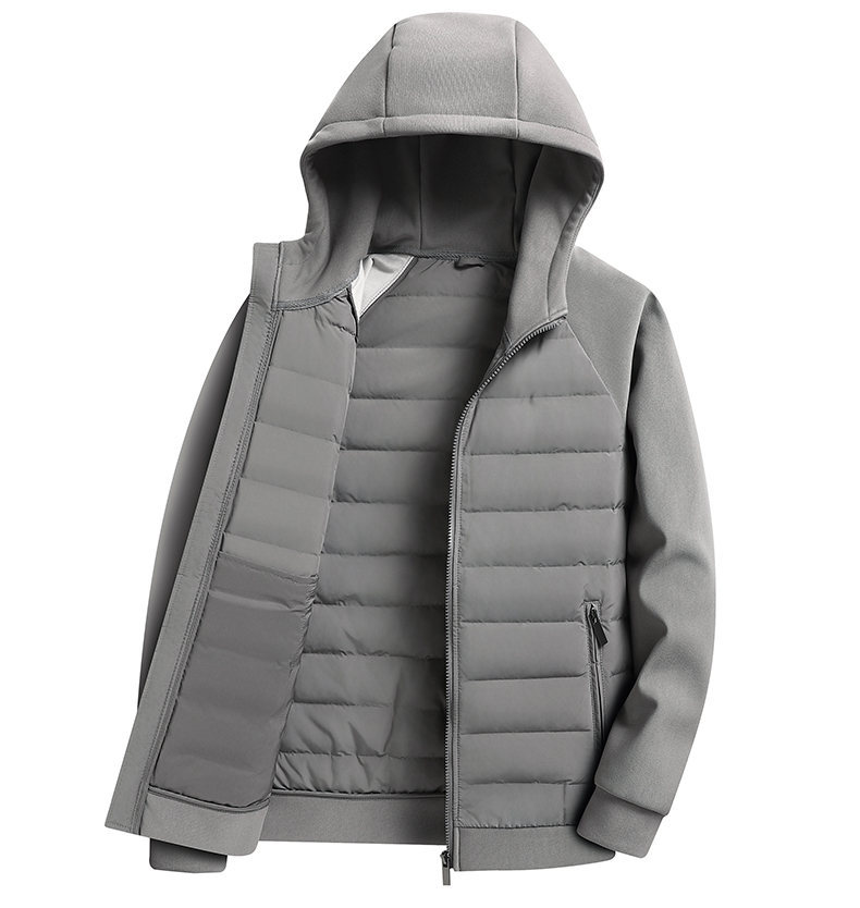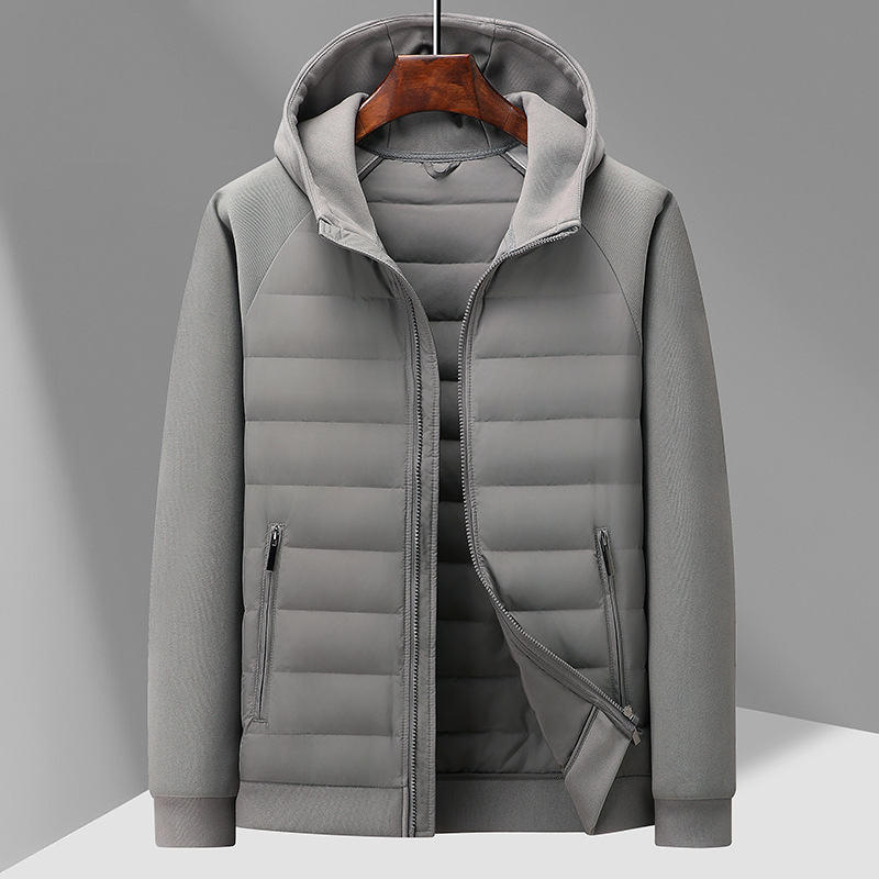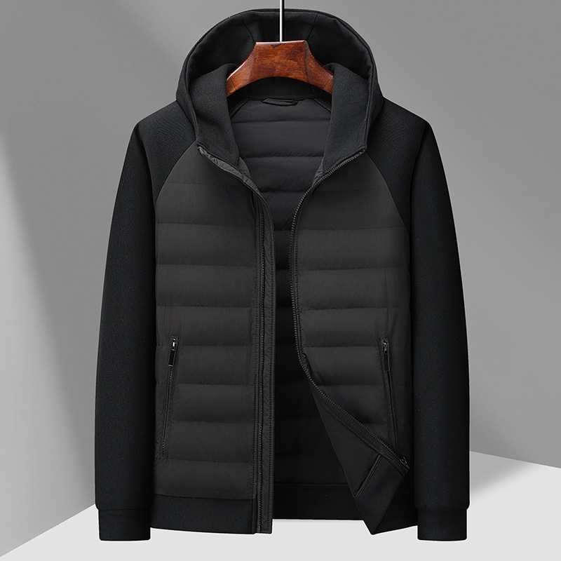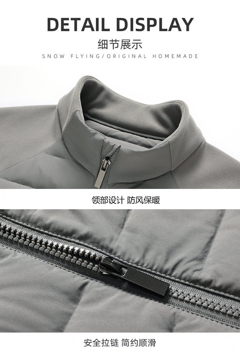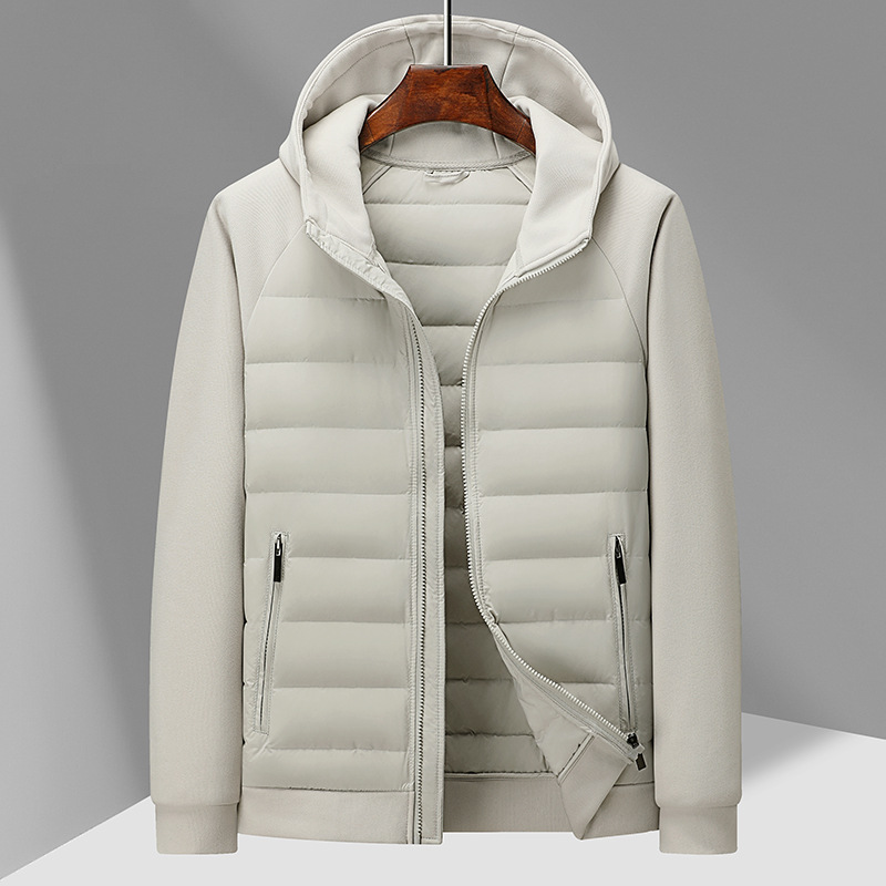국경 간 도매, 2025년형 니트 스플라이싱 화이트 덕다운 남성용 스탠드 칼라 경량 다운 재킷, 가을 겨울용 코트스토어 가기