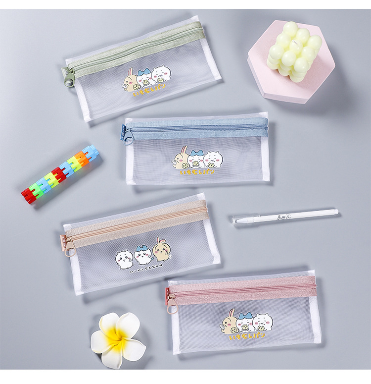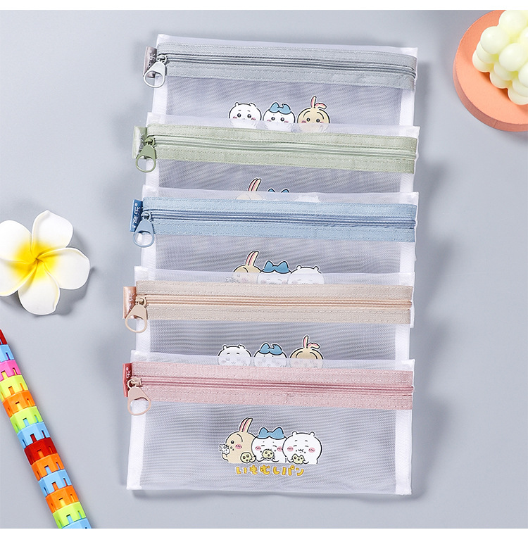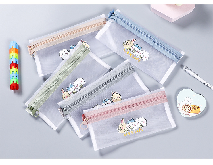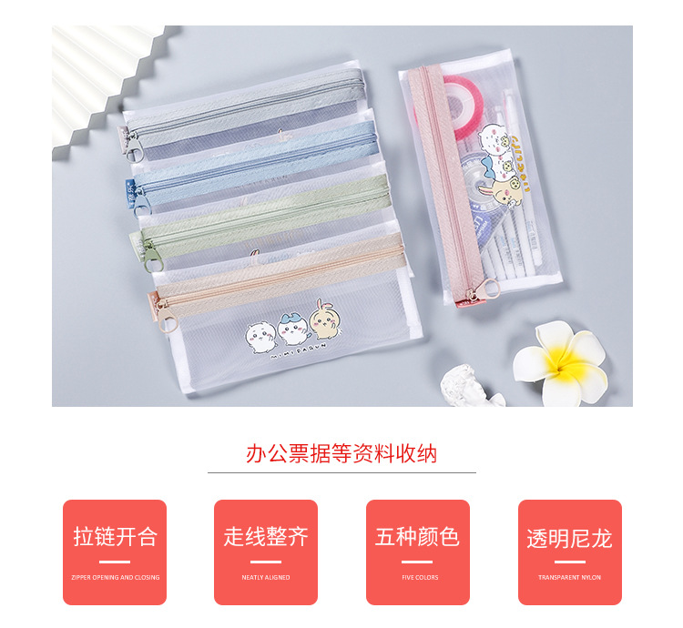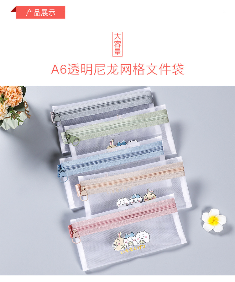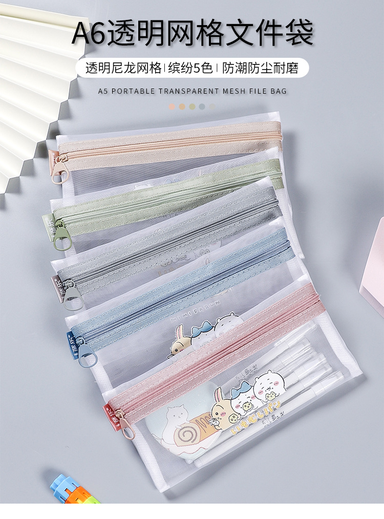 나일론 메쉬 투명 연필 가방 간단한 지퍼 파일 가방 A6 빌 가방 학생 시험 문구 가방 그리드 연필 가방
