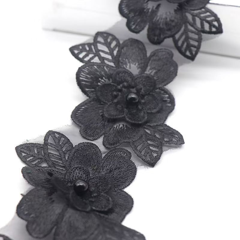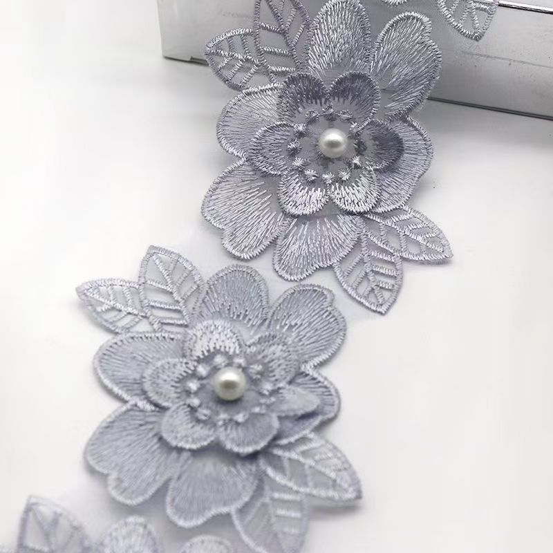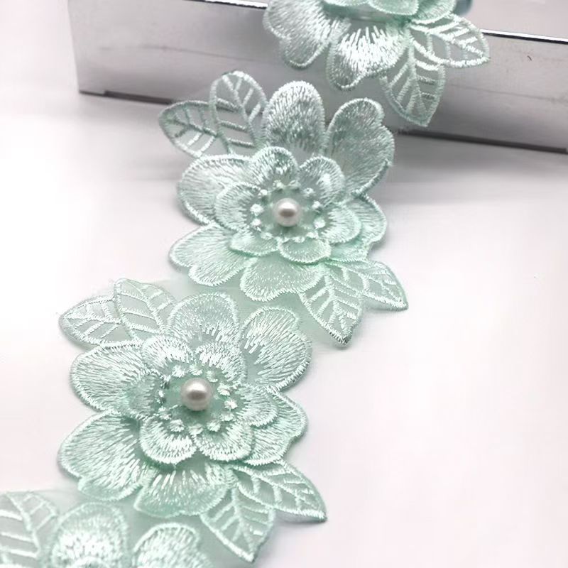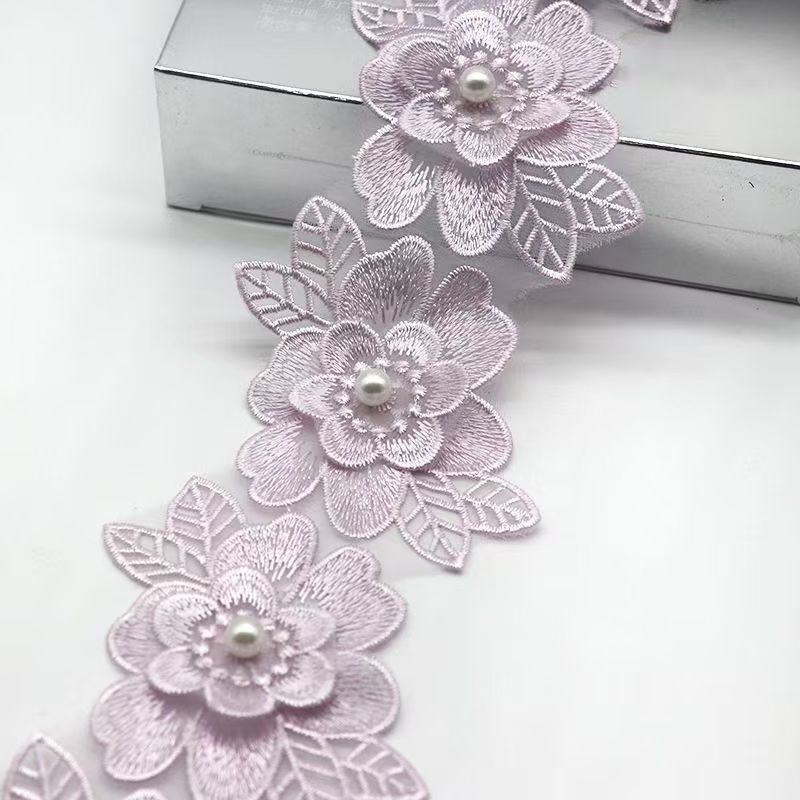 새로운 재고 공급 organza 꽃 손 레이스 폭 6x10CM 공장 직접 폴리 에스테르 진주