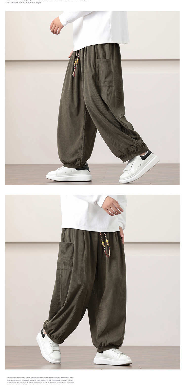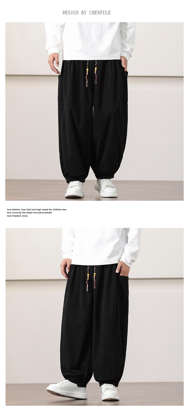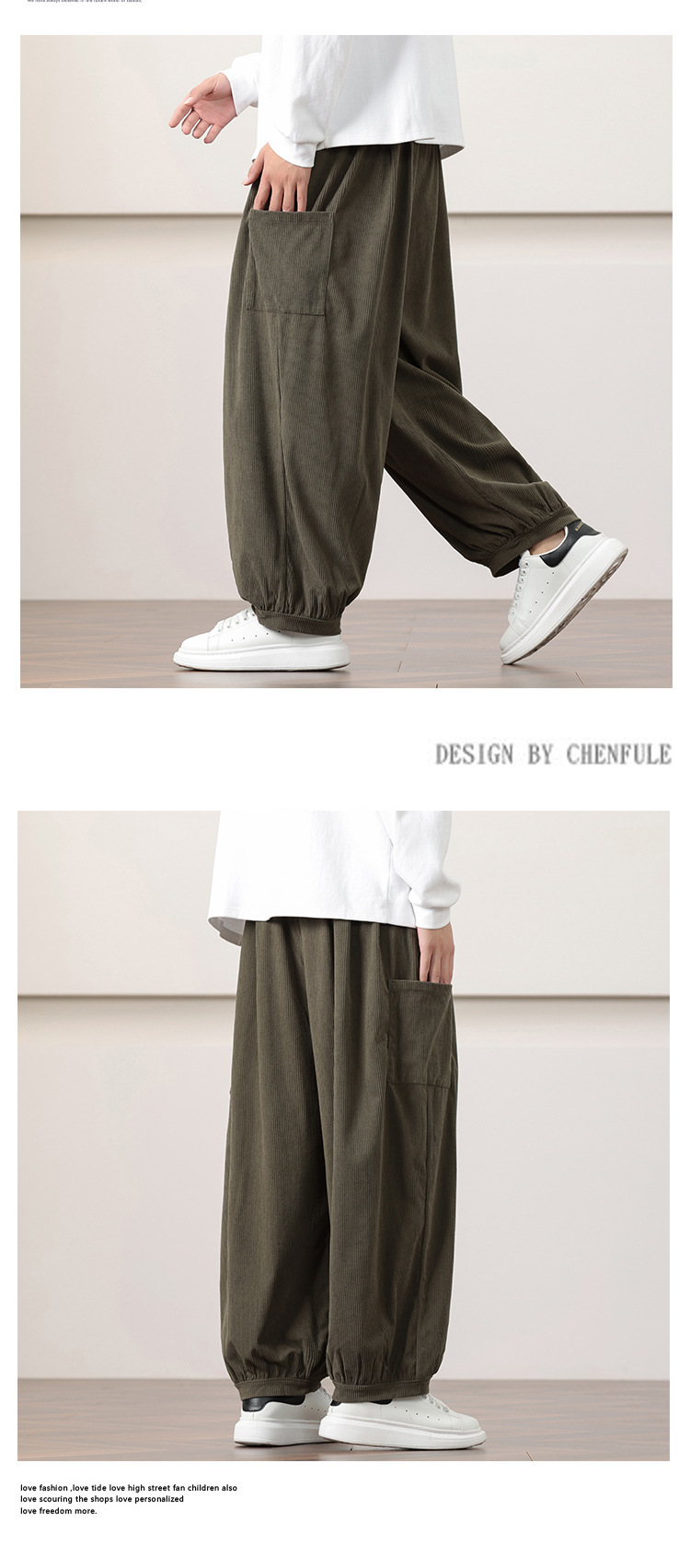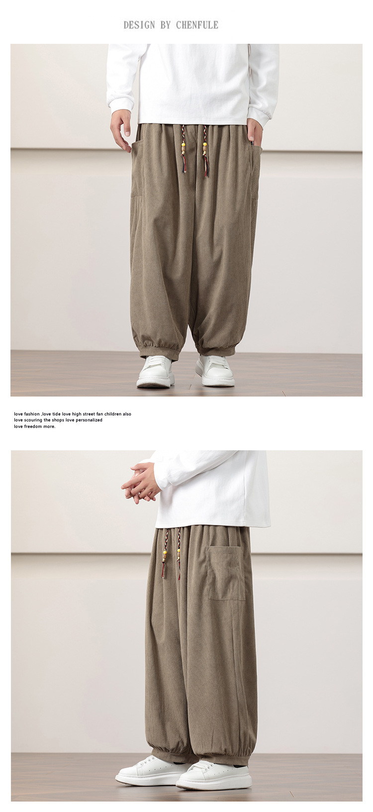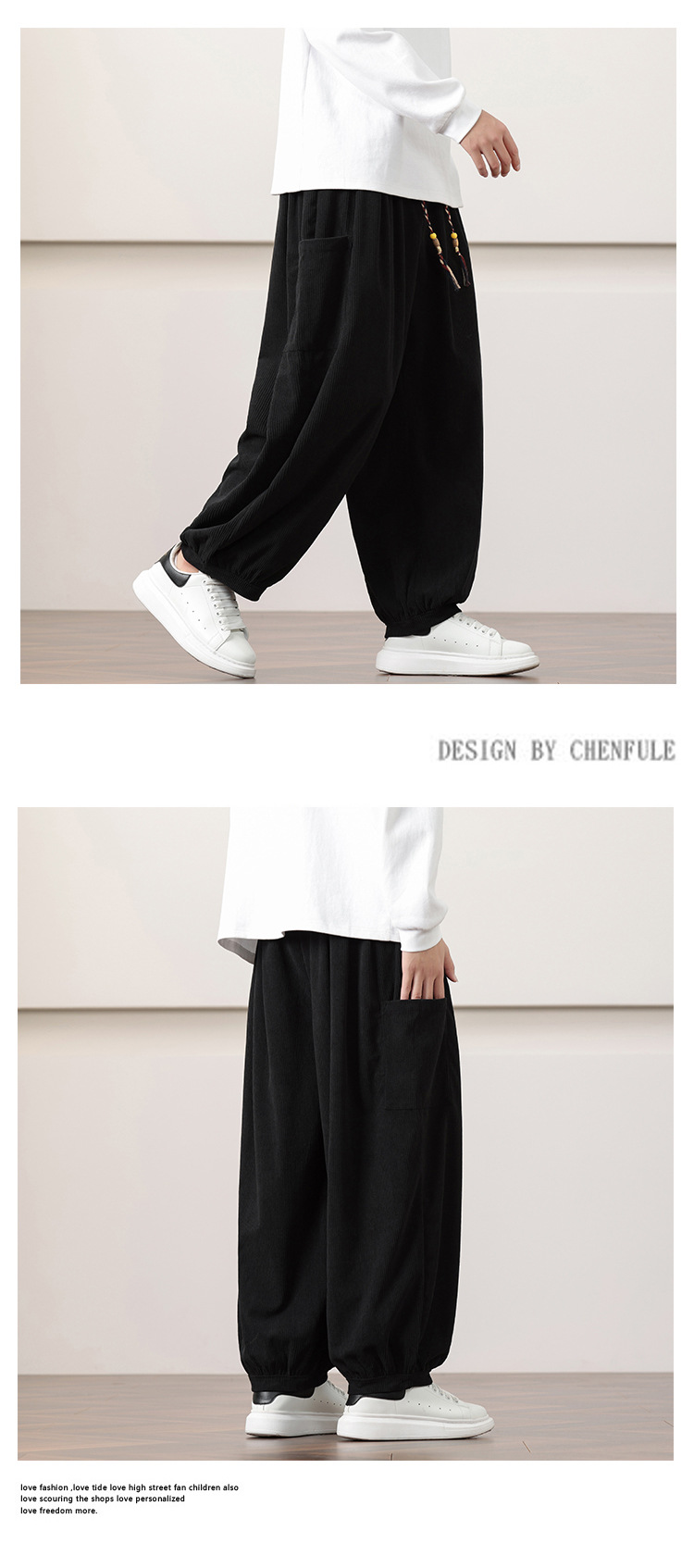 2024 가을 국경 새로운 중국 스타일 코듀로이 한렌 바지 남자 대외 무역 플러스 사이즈 남자 캐주얼 와이드 레그 바지스토어 가기