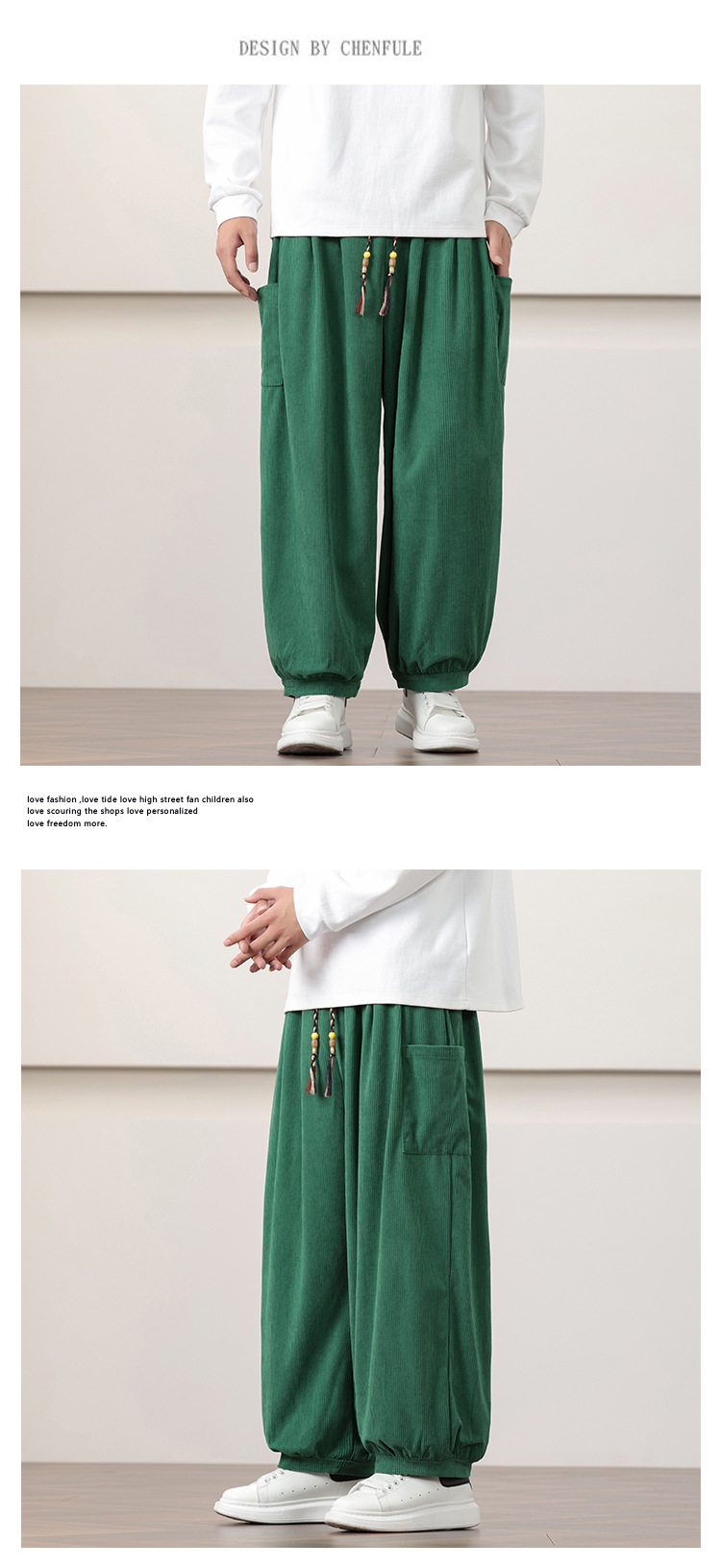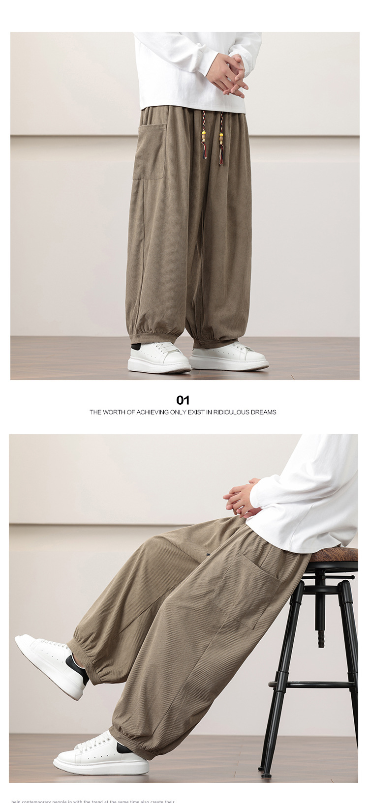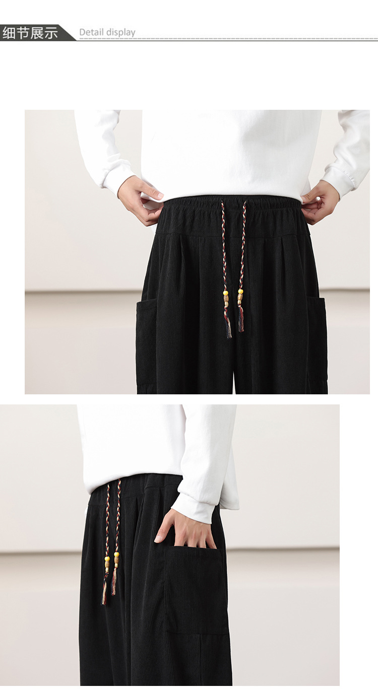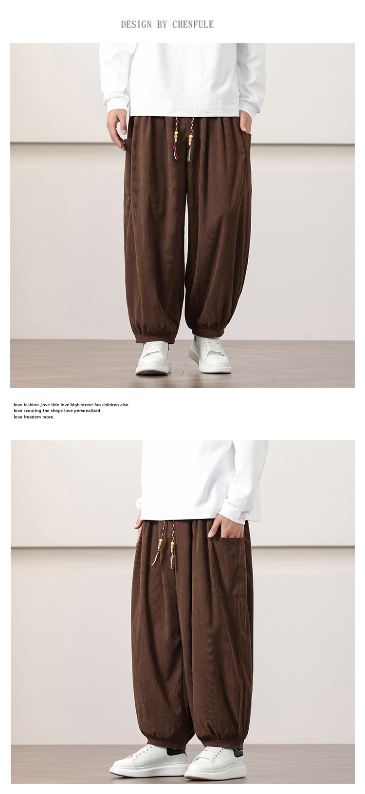 2024 가을 국경 새로운 중국 스타일 코듀로이 한렌 바지 남자 대외 무역 플러스 사이즈 남자 캐주얼 와이드 레그 바지스토어 가기
