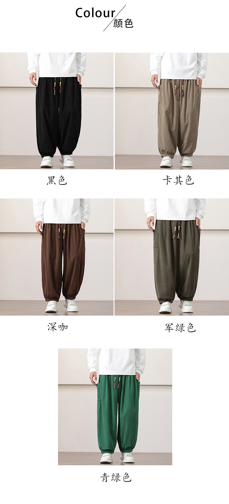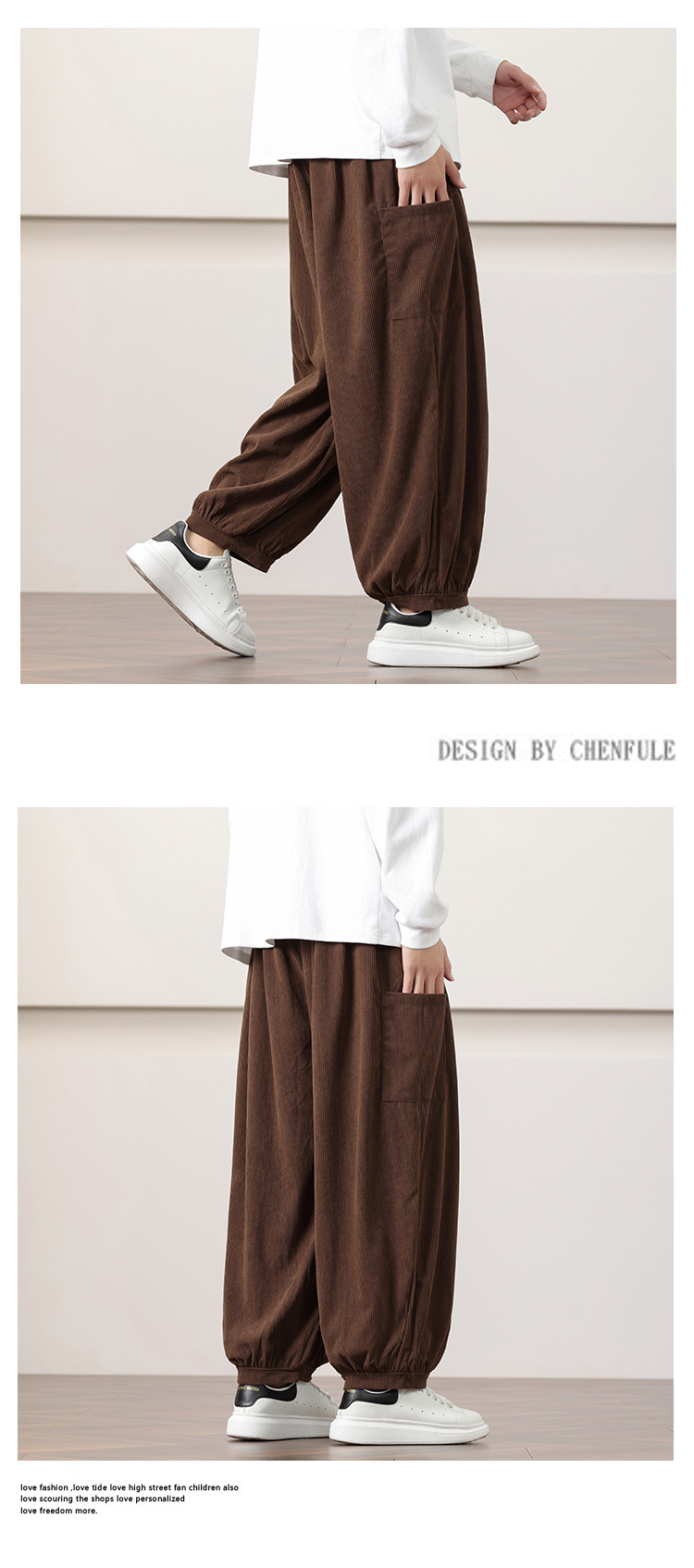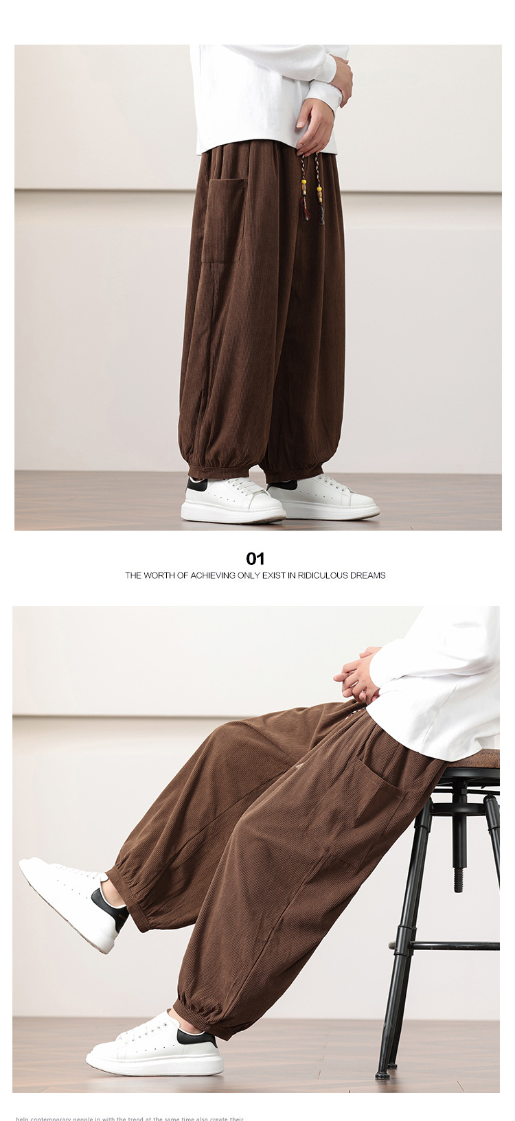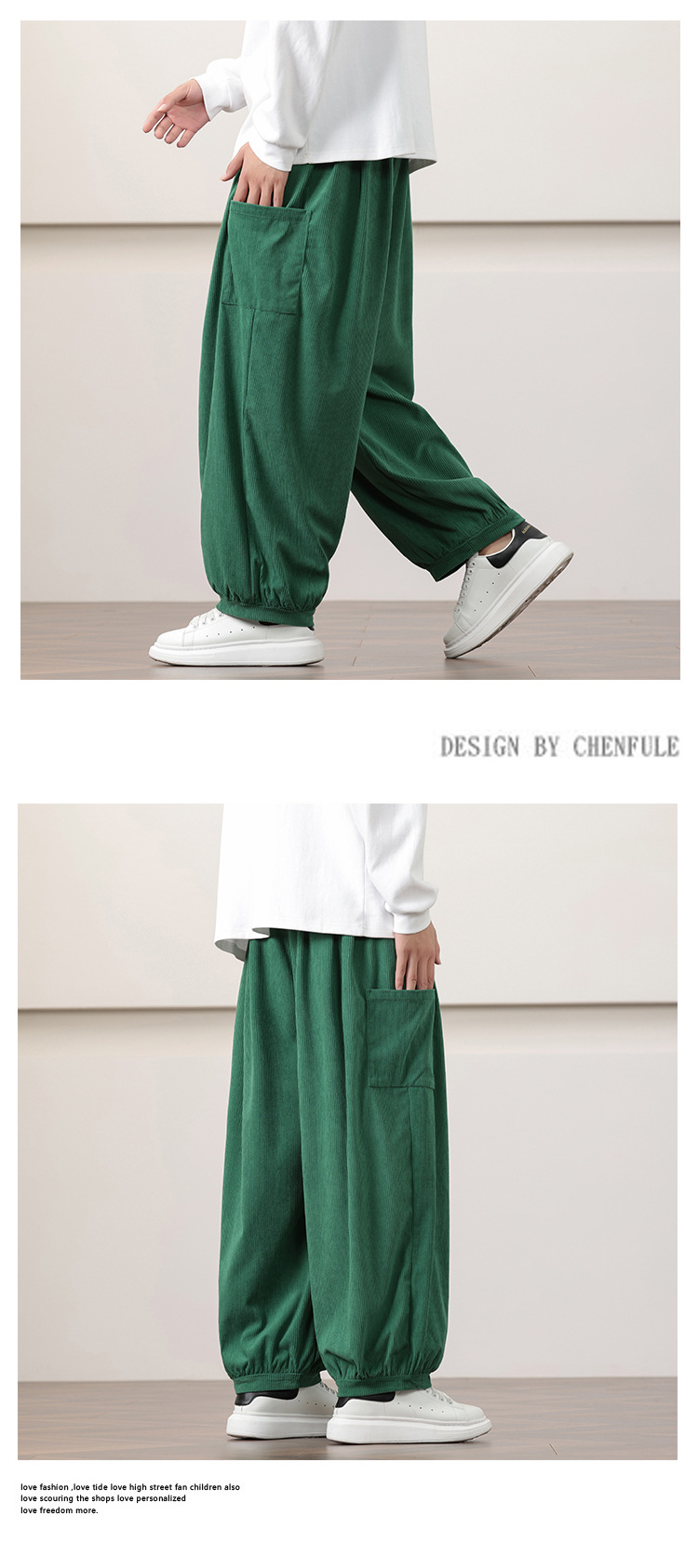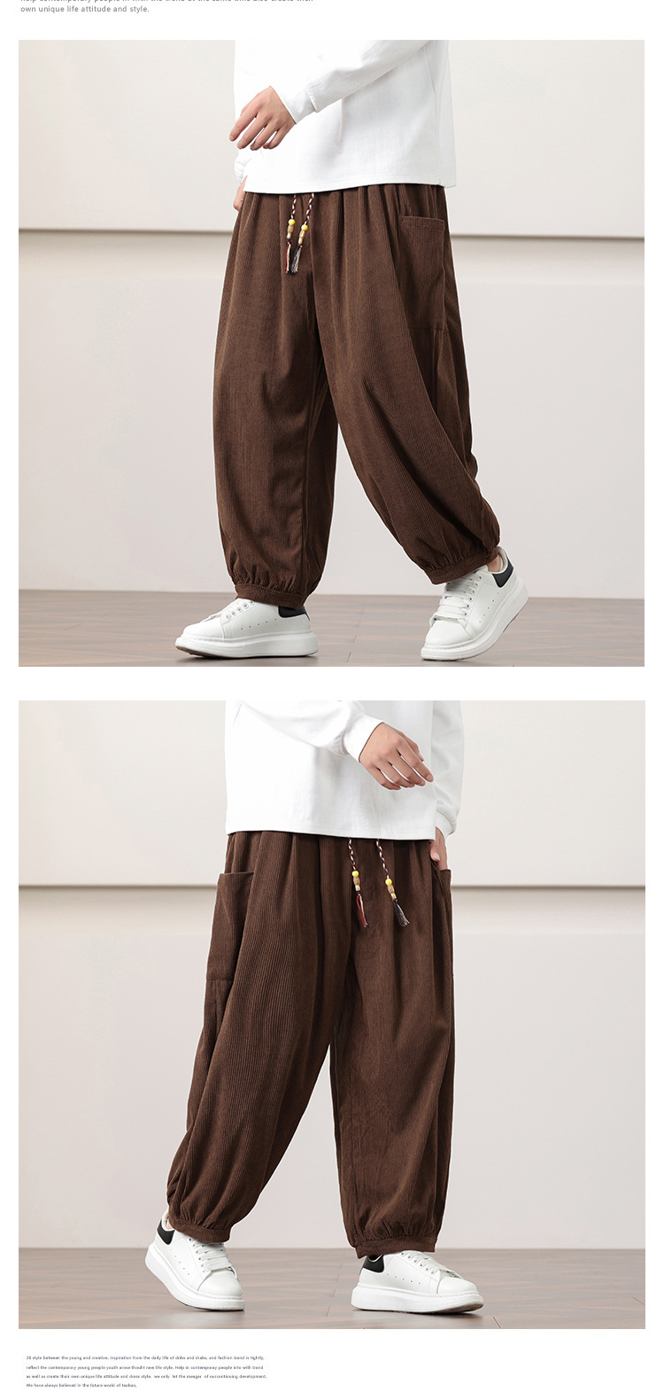 2024 가을 국경 새로운 중국 스타일 코듀로이 한렌 바지 남자 대외 무역 플러스 사이즈 남자 캐주얼 와이드 레그 바지스토어 가기