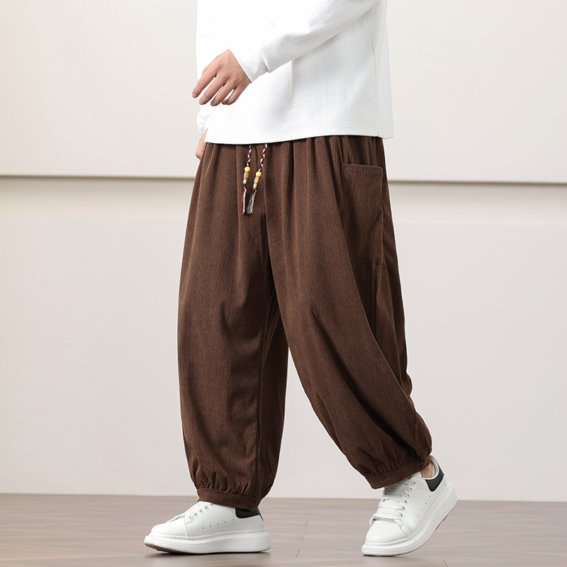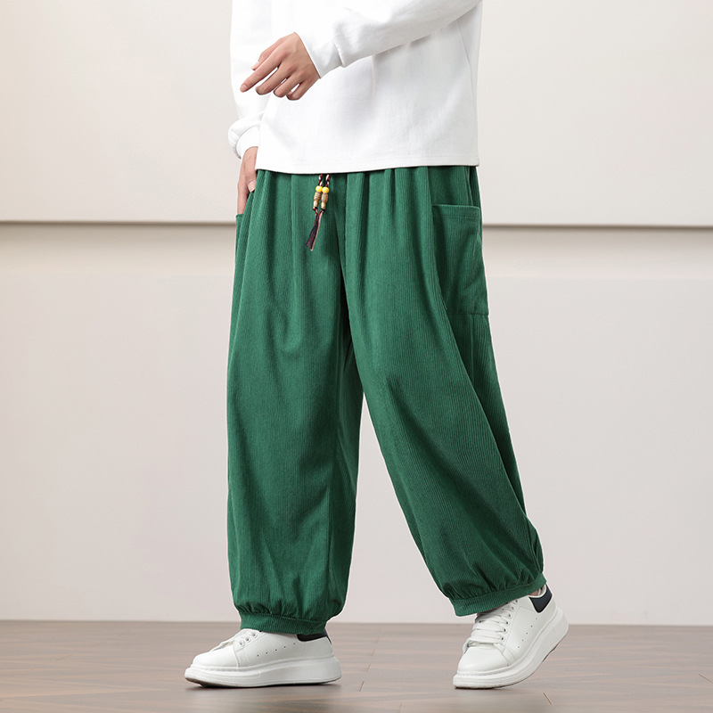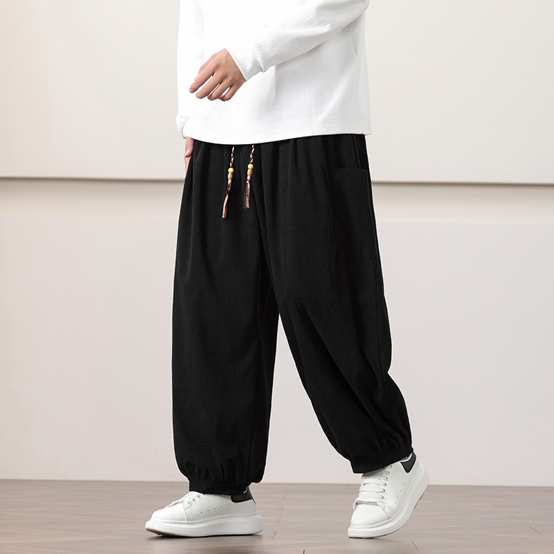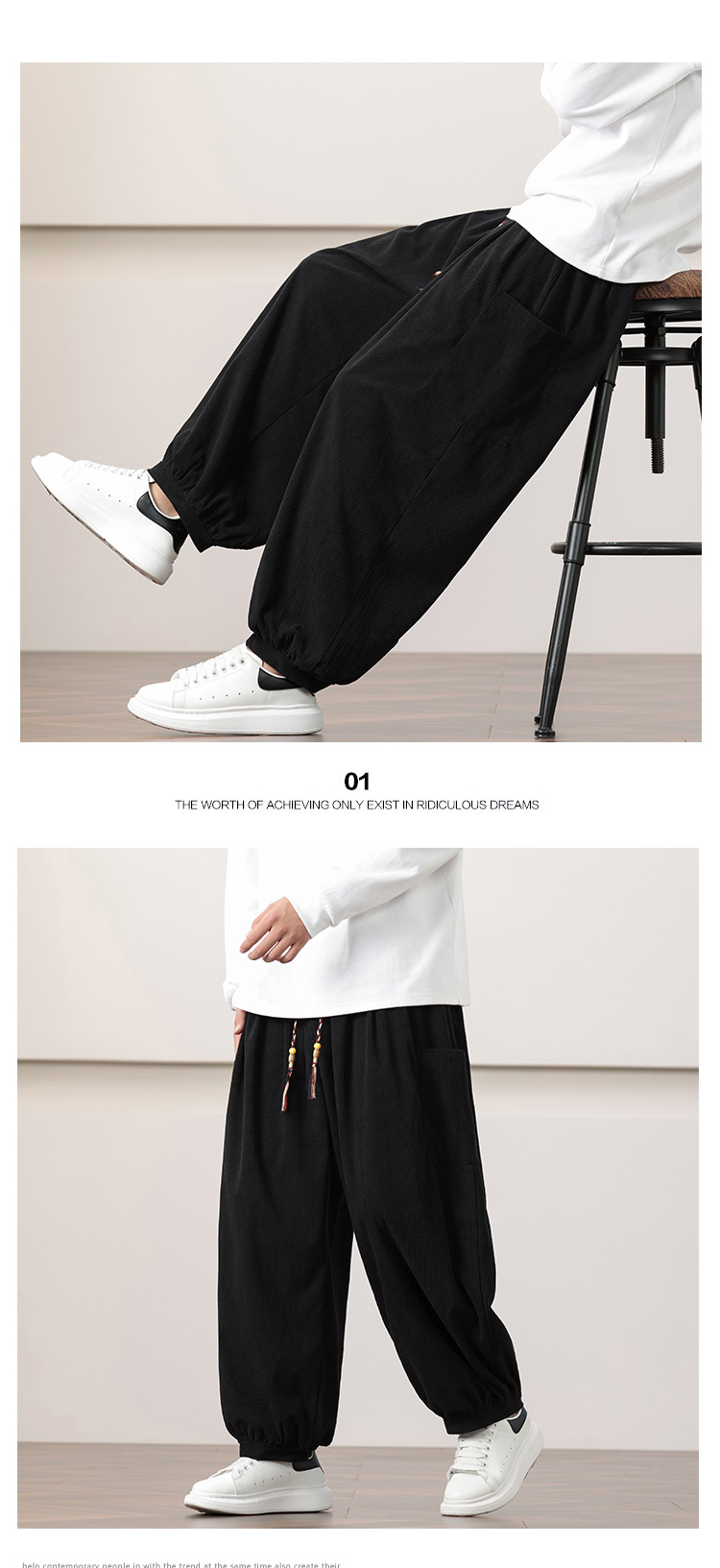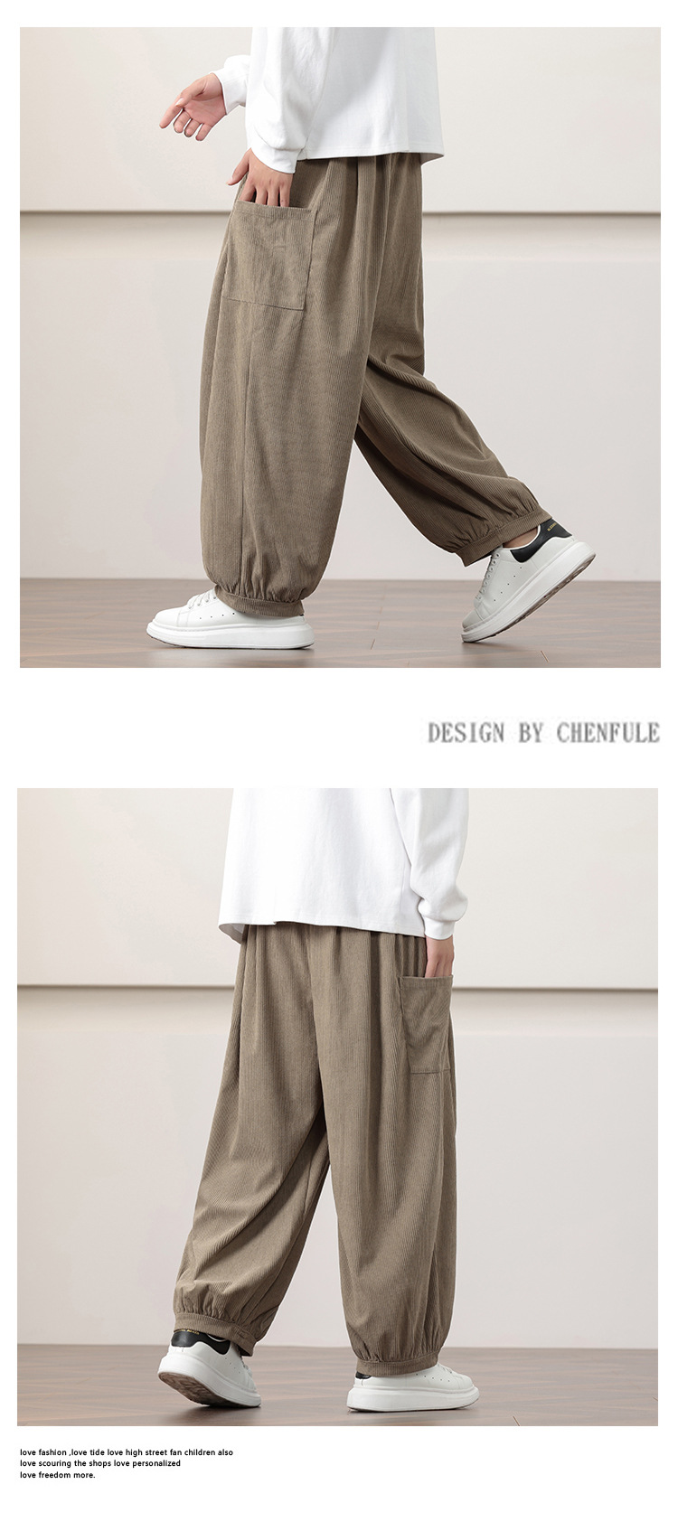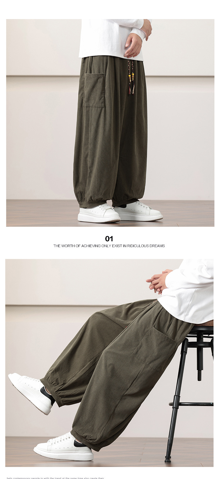 2024 가을 국경 새로운 중국 스타일 코듀로이 한렌 바지 남자 대외 무역 플러스 사이즈 남자 캐주얼 와이드 레그 바지