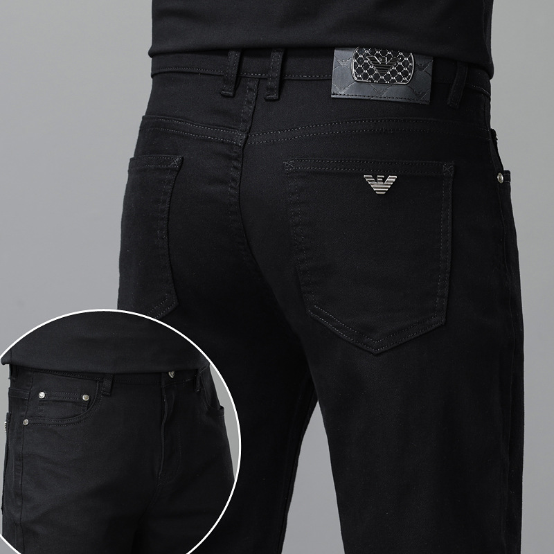 2024 새로운 하이 엔드 브랜드 블랙 청바지 남자의 가을과 겨울 두꺼운 탄성 느슨한 캐주얼 스트레이트 라이트 럭셔리 청소년스토어 가기