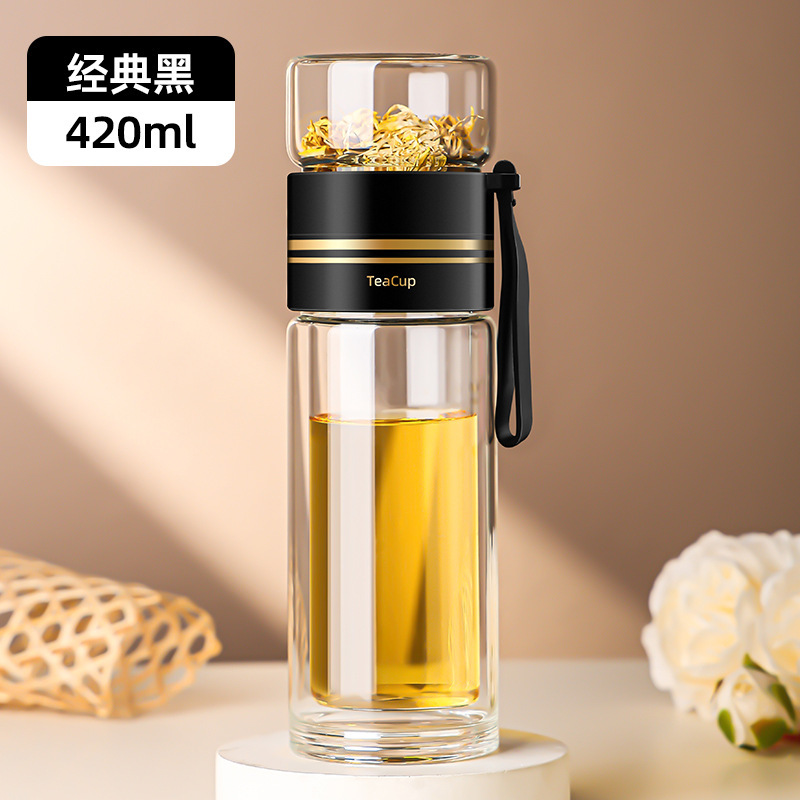 차 분리 컵 더블 레이어 절연 유리 컵 오피스 티 컵 스트레인 유리 컵 래커 선물 컵