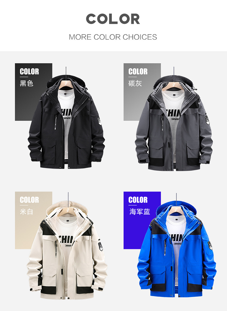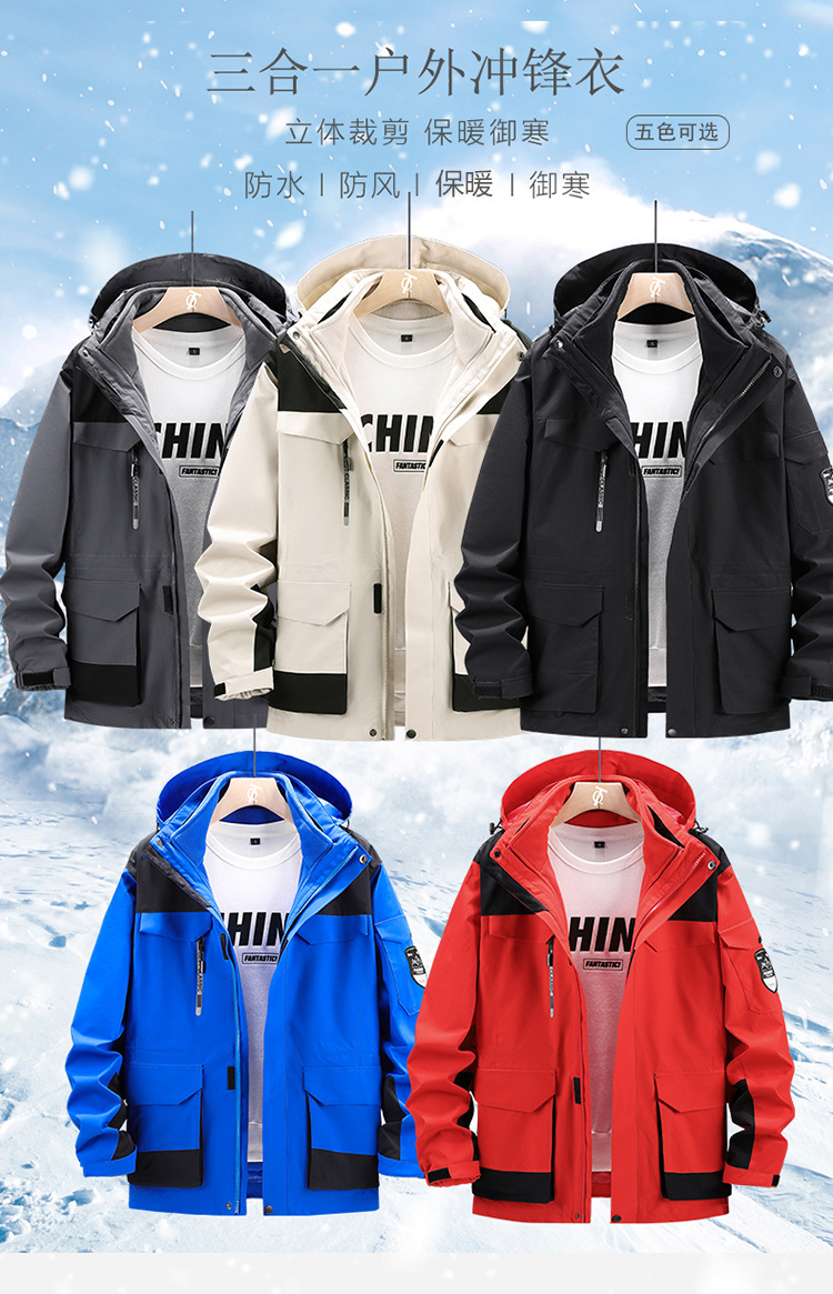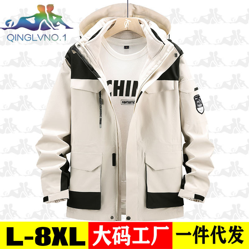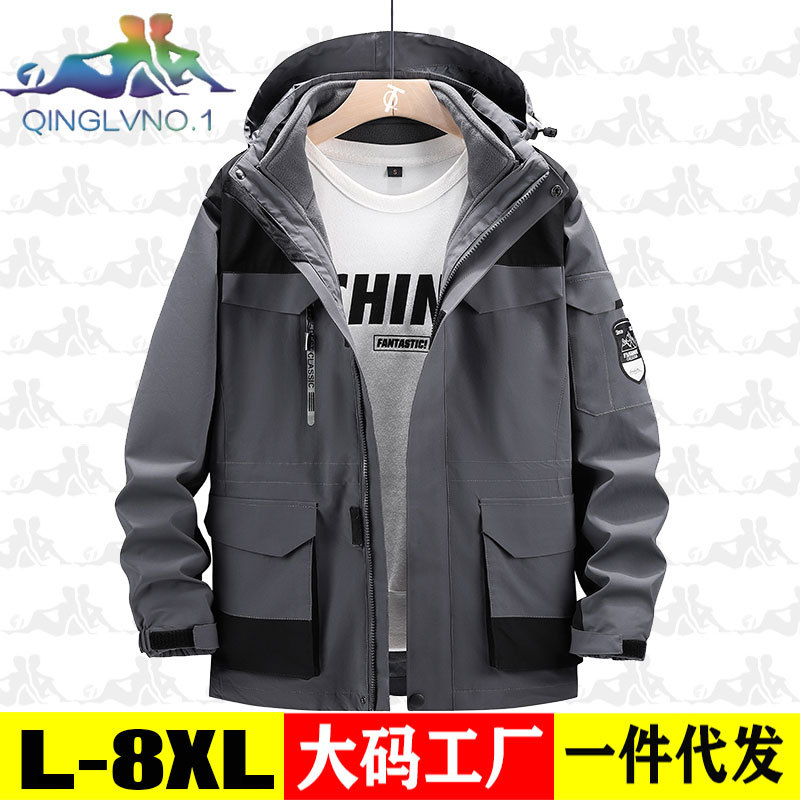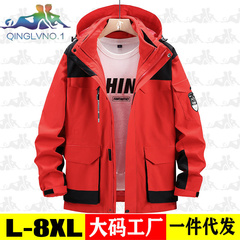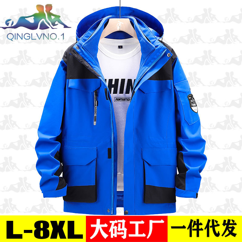 가을과 겨울 옷 남자 3 대 1 2 피스 세트 등산 세트 중간 길이의 야외 툴링 재킷 플러스 사이즈스토어 가기