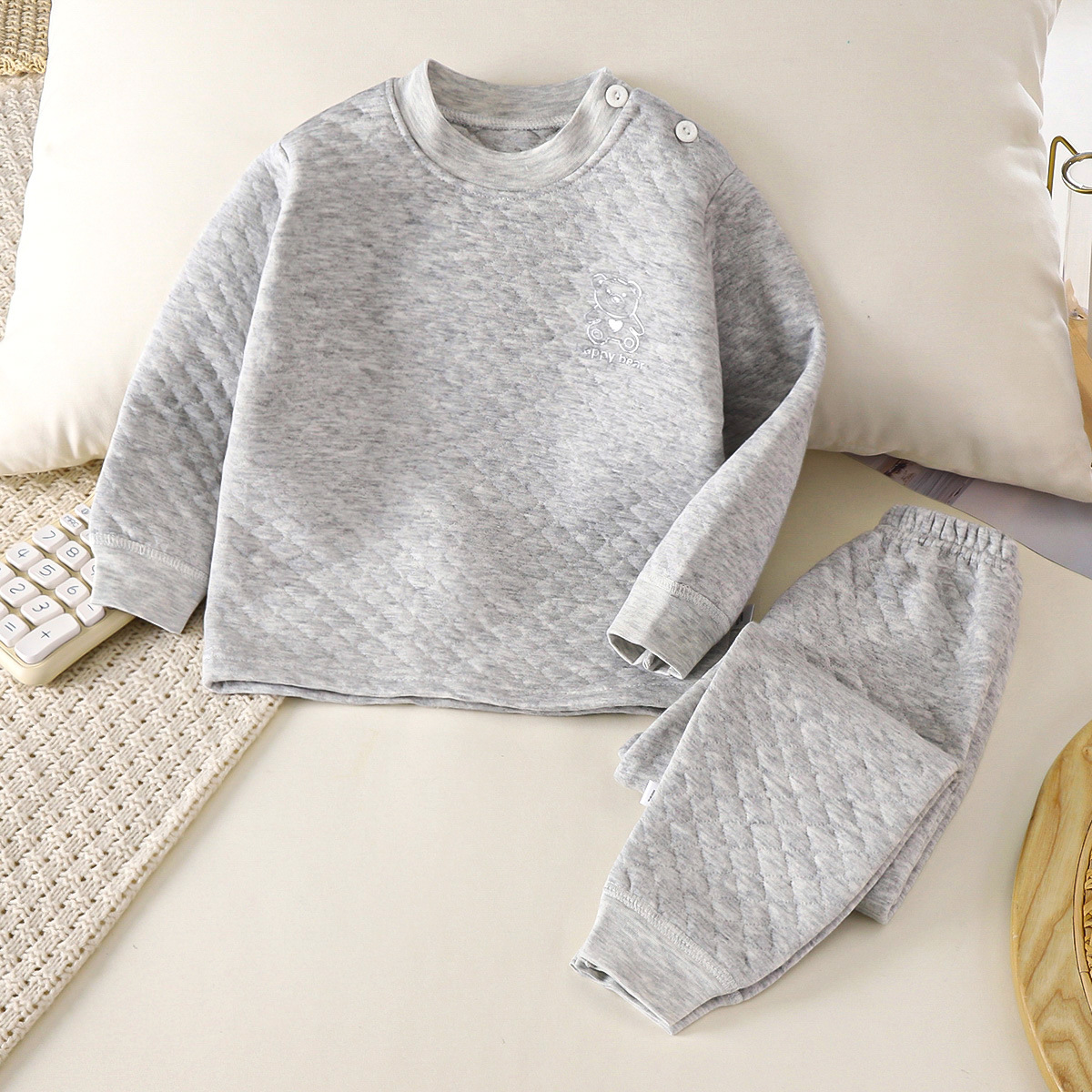 어린이 열 속옷 세트 소년 면 두꺼운 탑 걸스 3 층 퀼트 파자마 겨울 기모 가을 옷