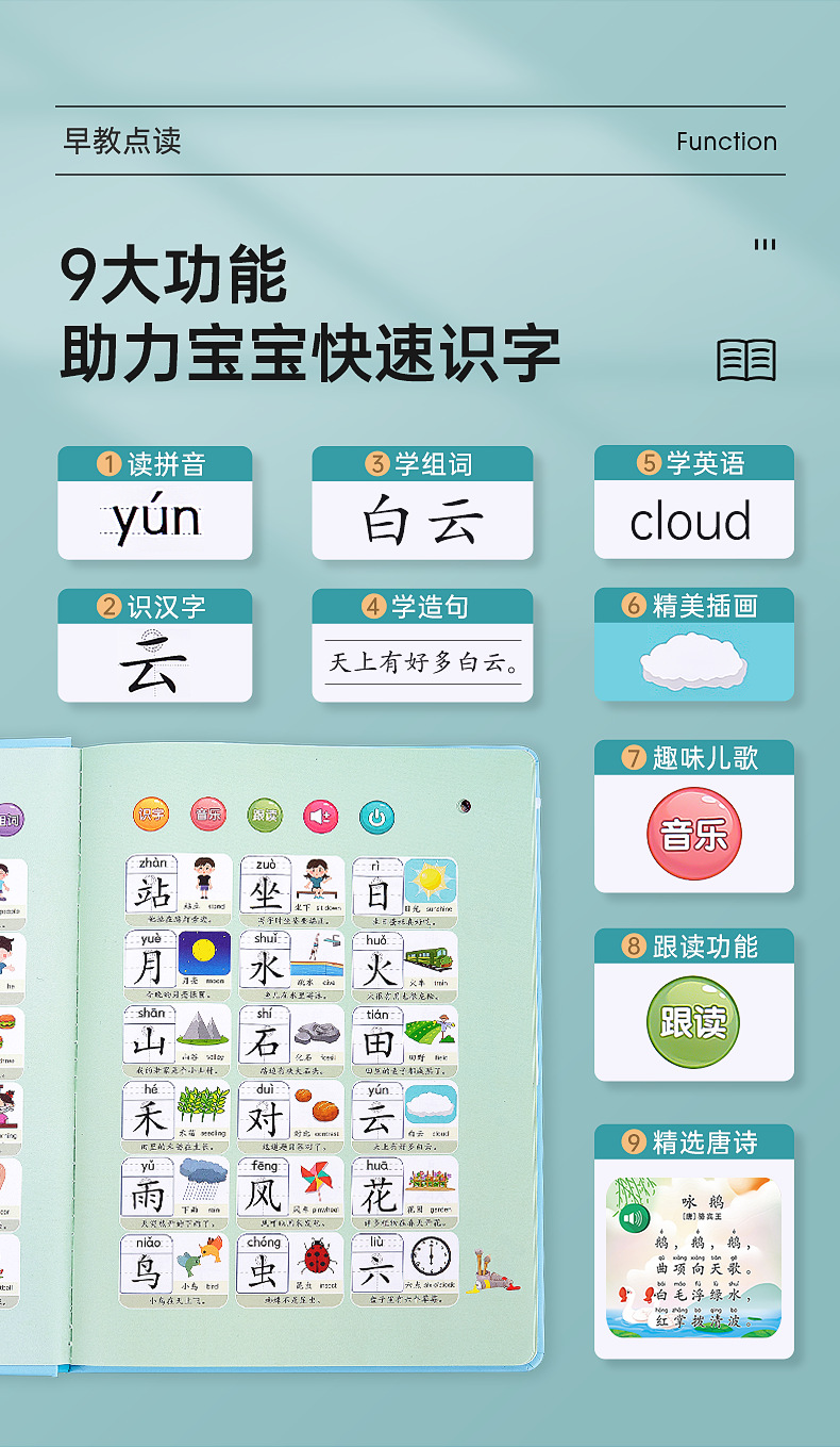 어린이 문맹 퇴치 3000 카드 독서 기계 조기 교육 음성 도서 유치원 인식 오디오 유물 교육 완구스토어 가기