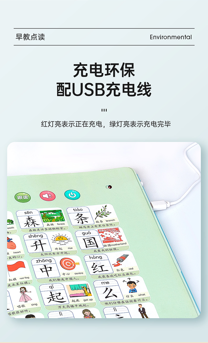 • 마법의 한자 300+ 병음 학습 기계( 16inch -USB 충전)