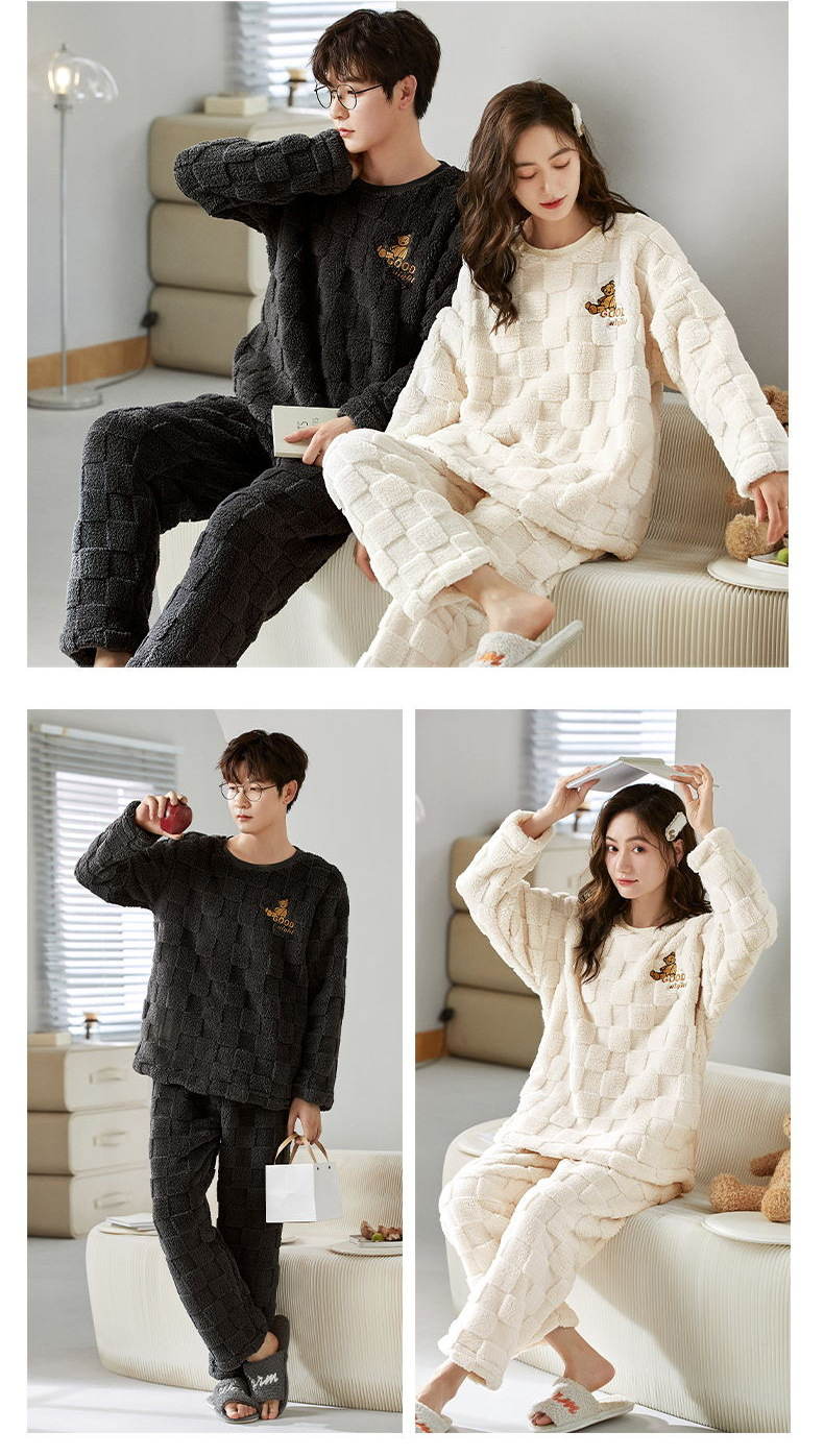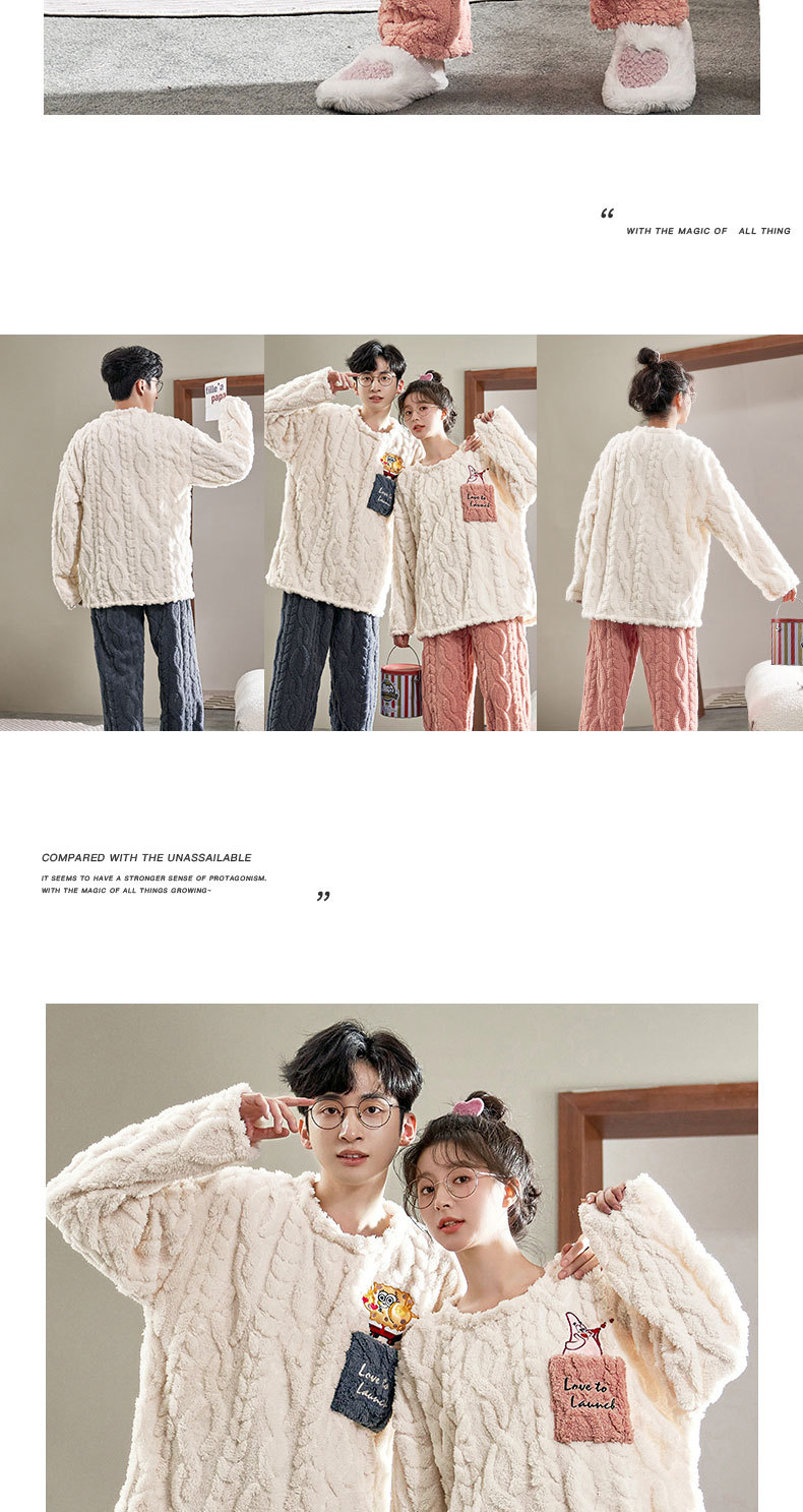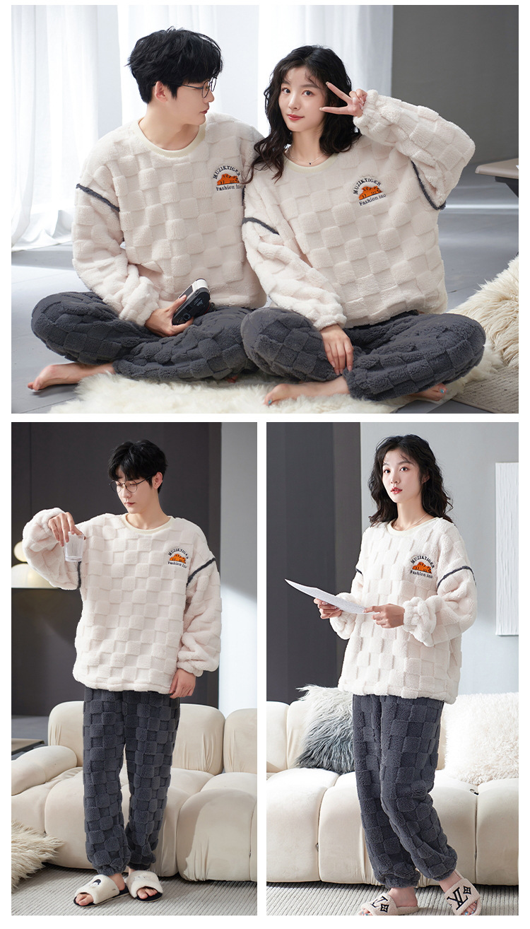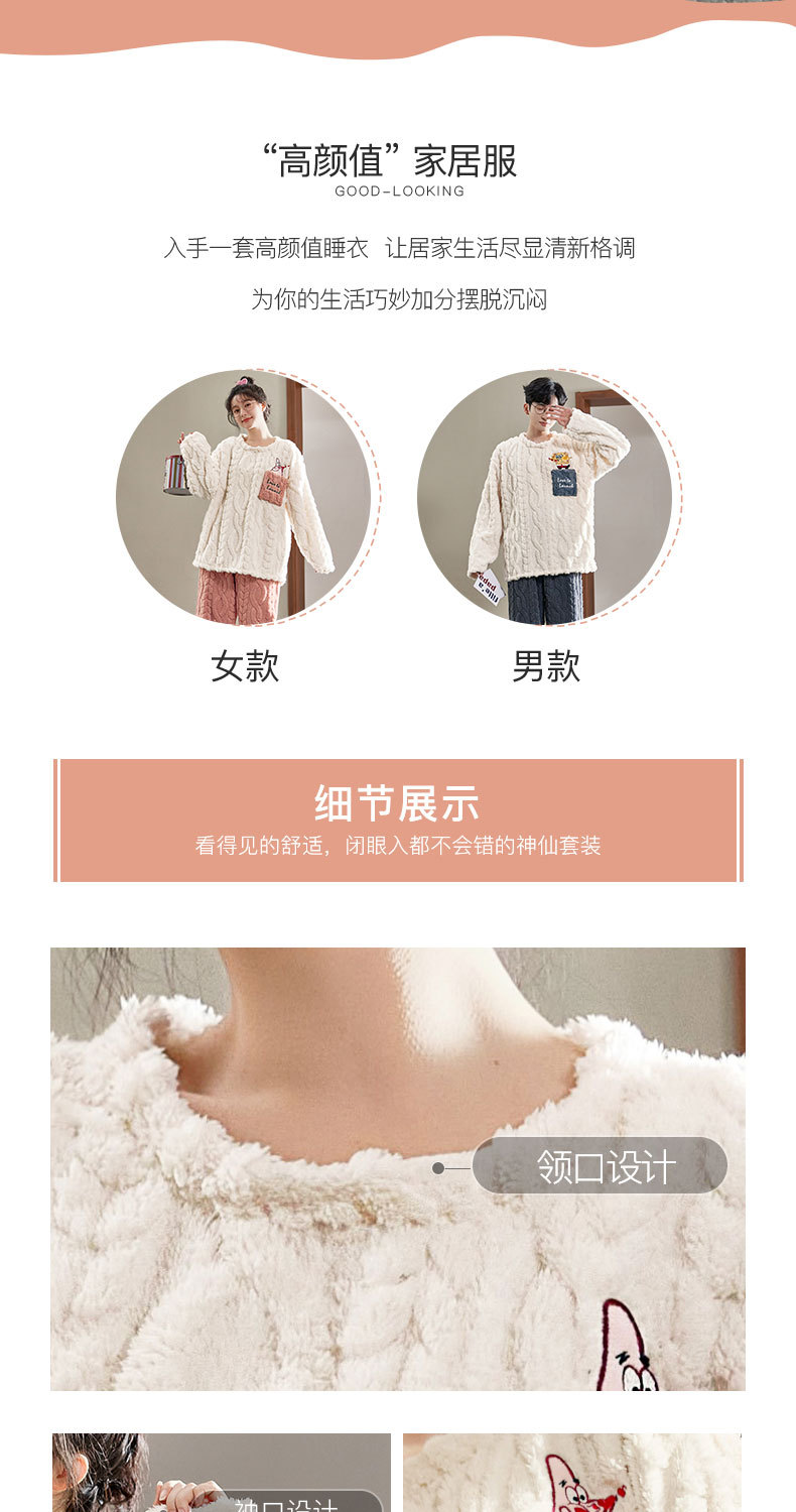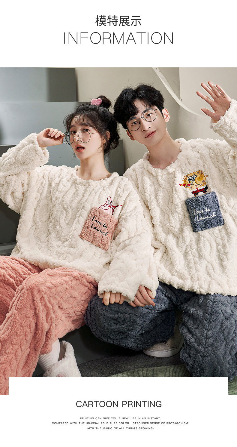 커플 잠옷 여성의 겨울 플란넬 두꺼운 둥근 목 귀여운 한국 산호 양털 따뜻한 남자 캐주얼 홈 옷스토어 가기