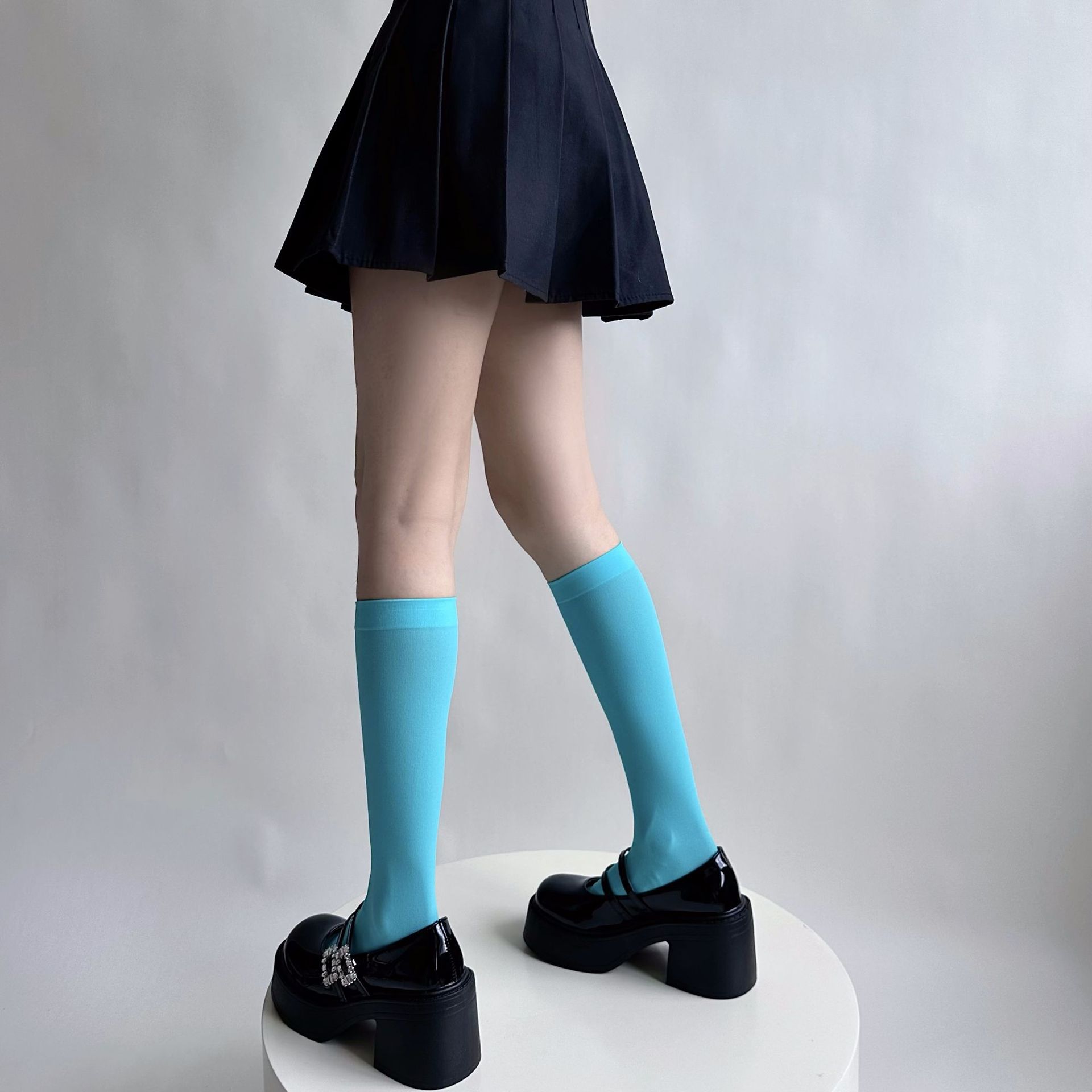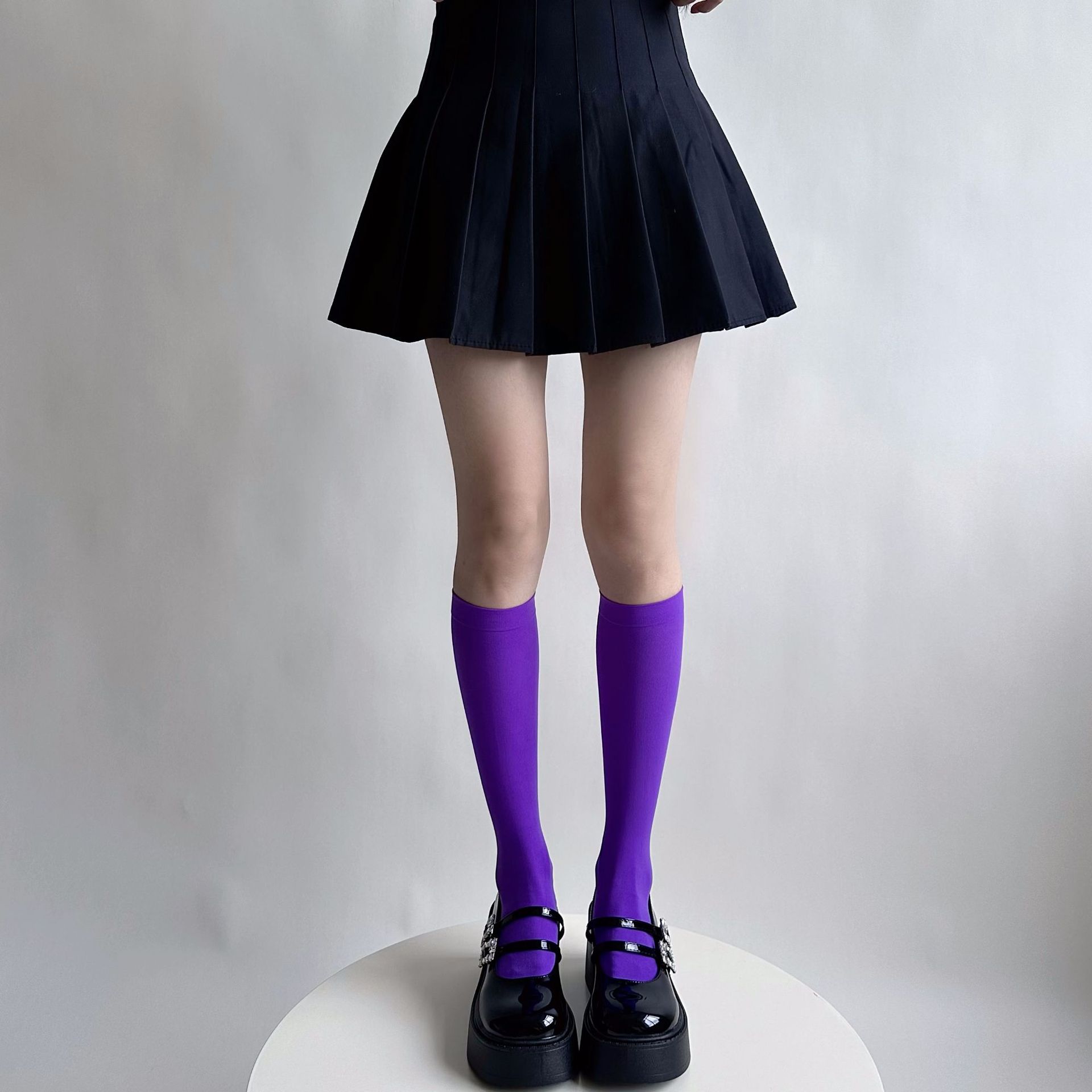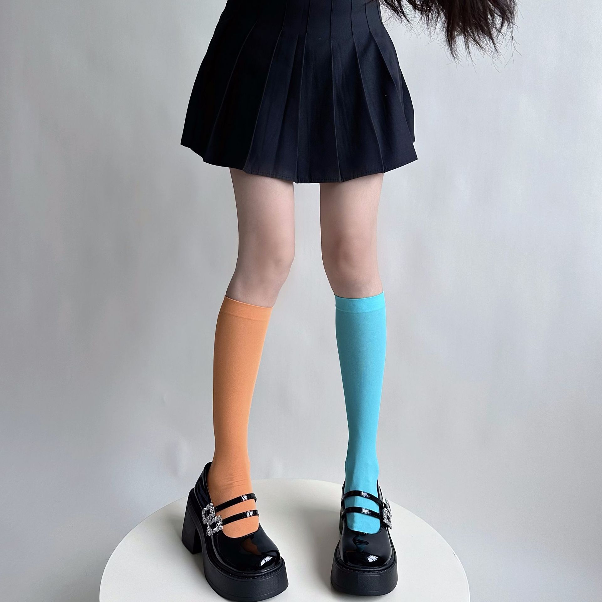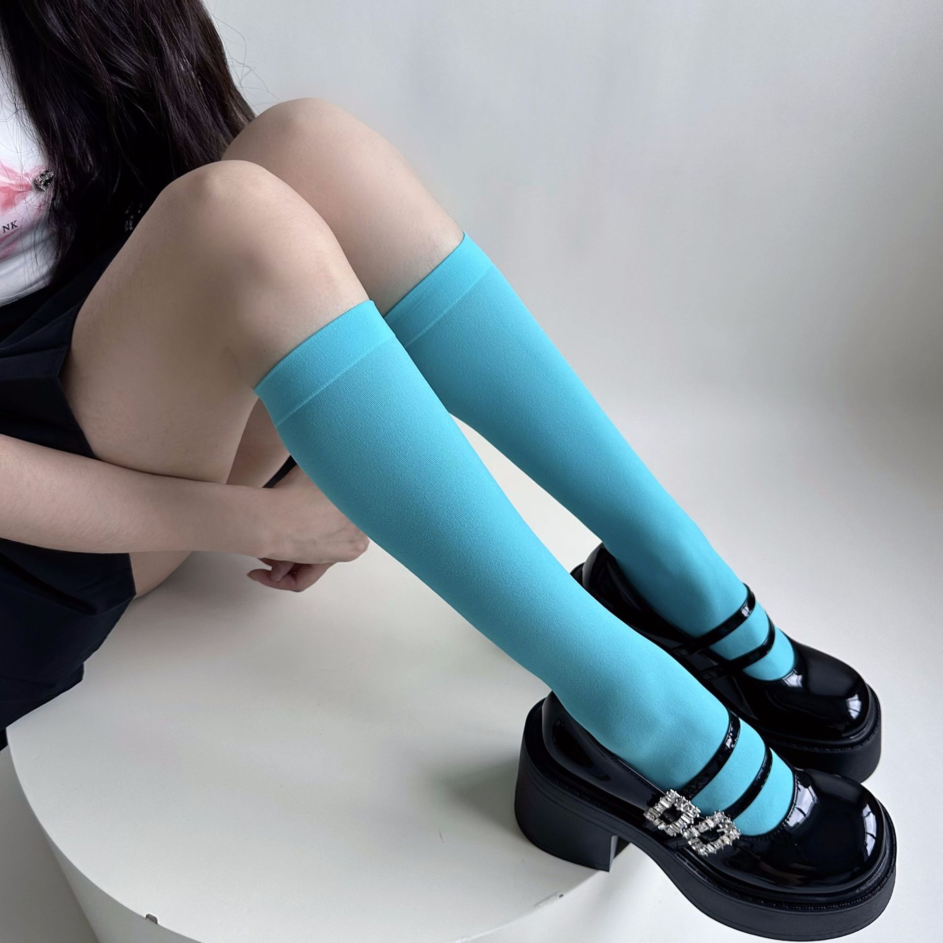 소녀의 여름 얇은 성격 올 매치 벨벳 캔디 컬러 무릎 높은 양말 컬러 일본 스타일 Y2K 스타일 여성용 송아지 양말스토어 가기