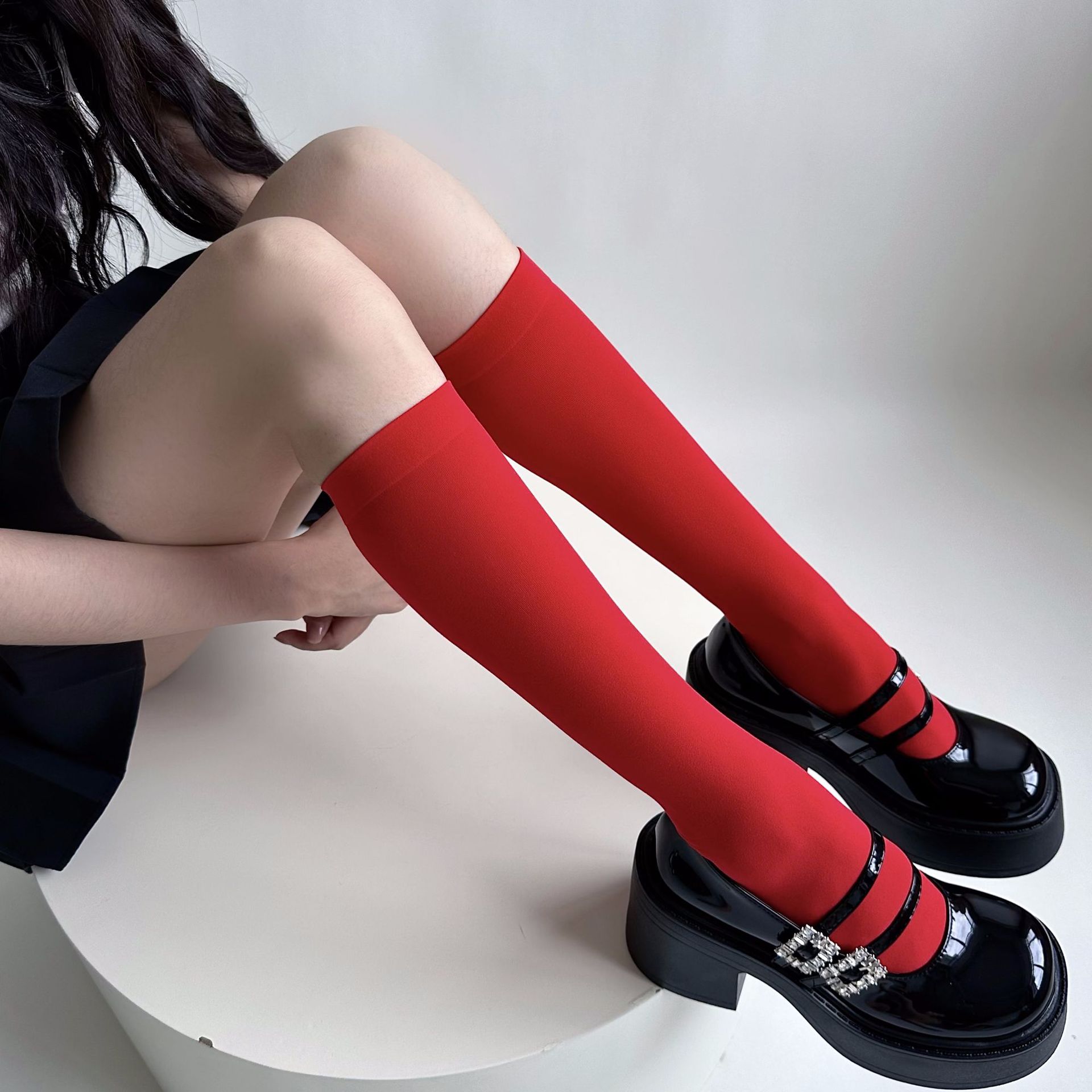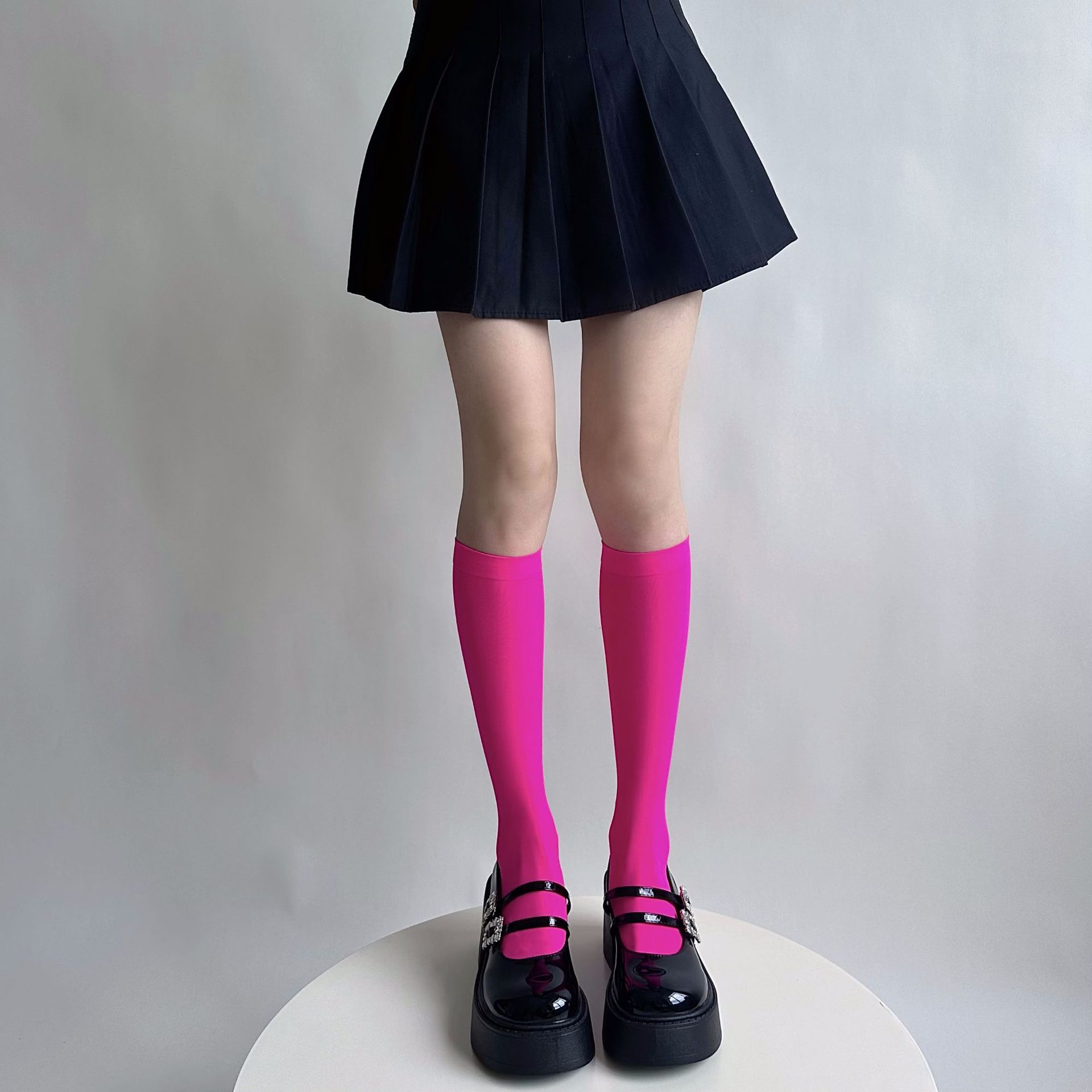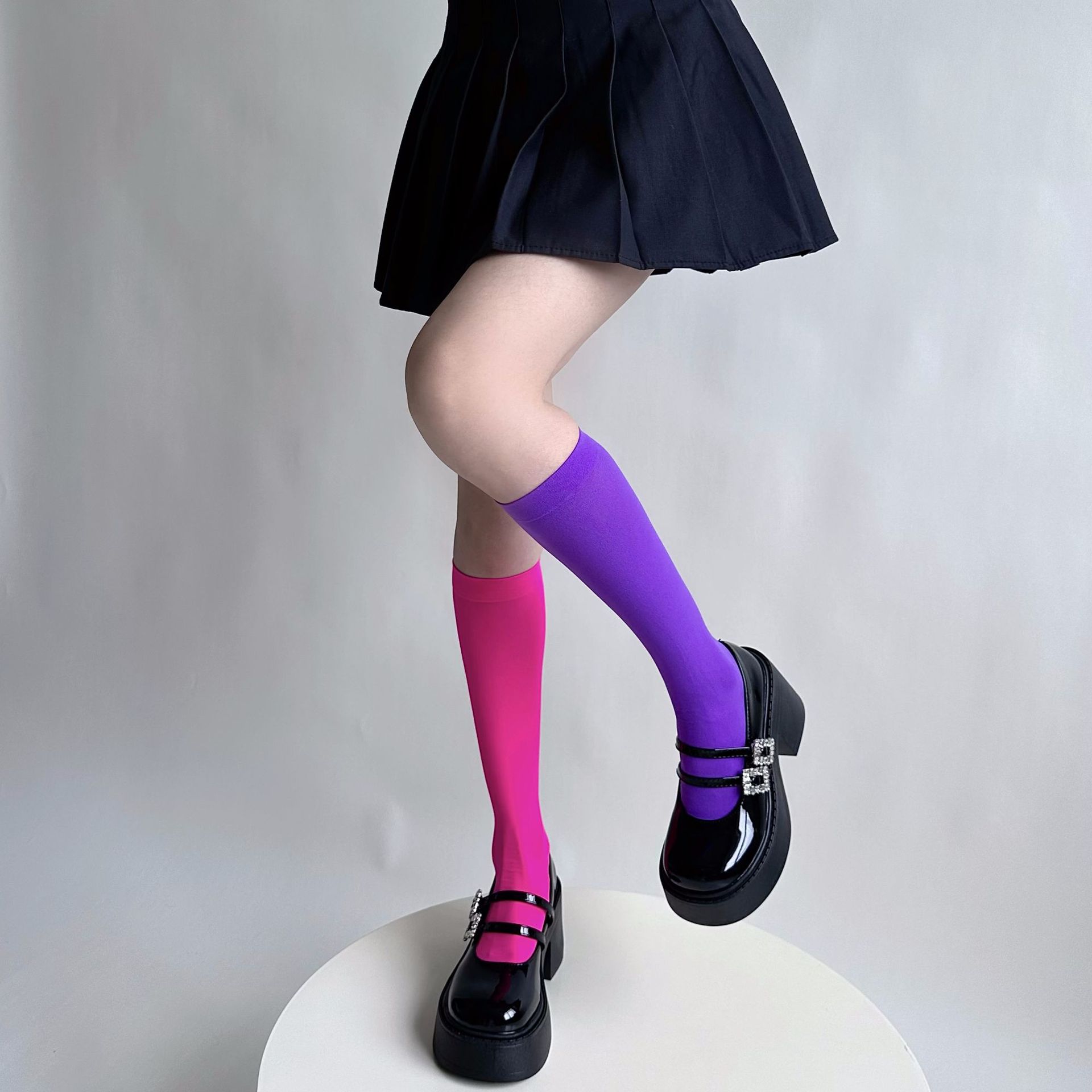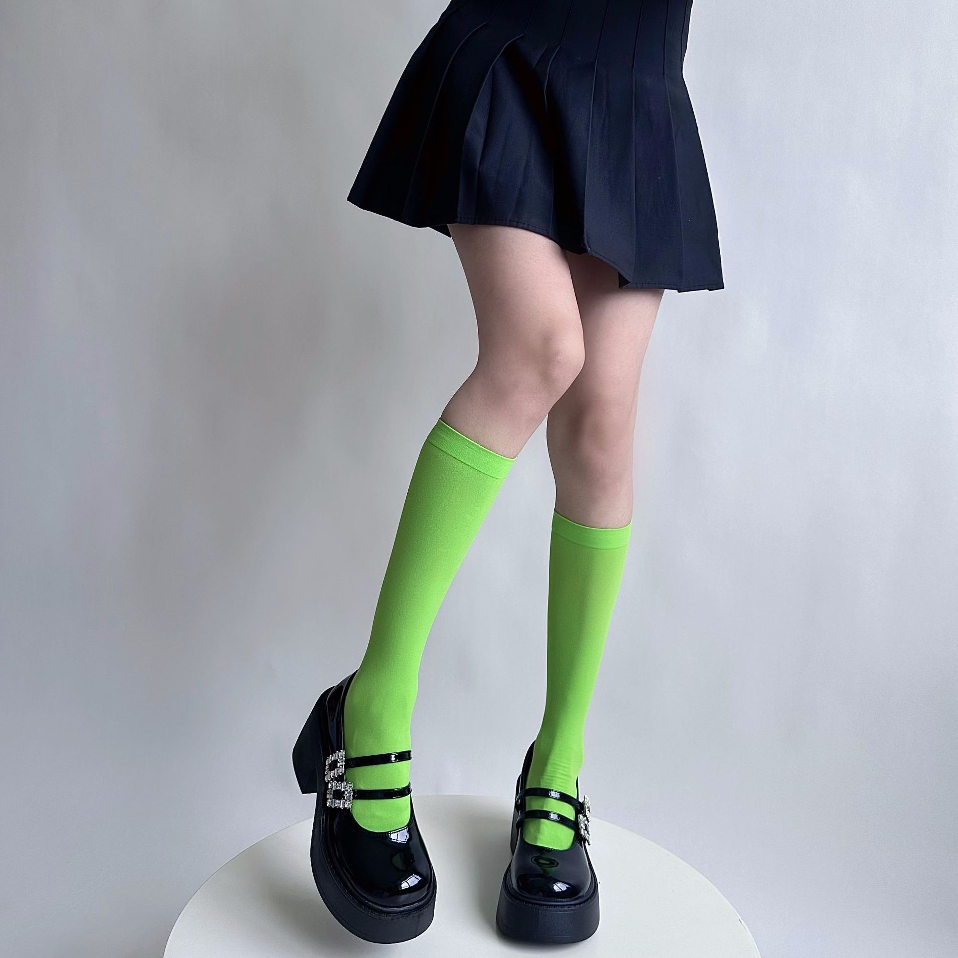 소녀의 여름 얇은 성격 올 매치 벨벳 캔디 컬러 무릎 높은 양말 컬러 일본 스타일 Y2K 스타일 여성용 송아지 양말스토어 가기