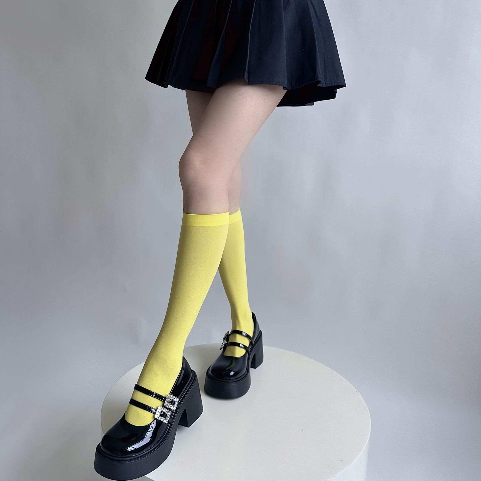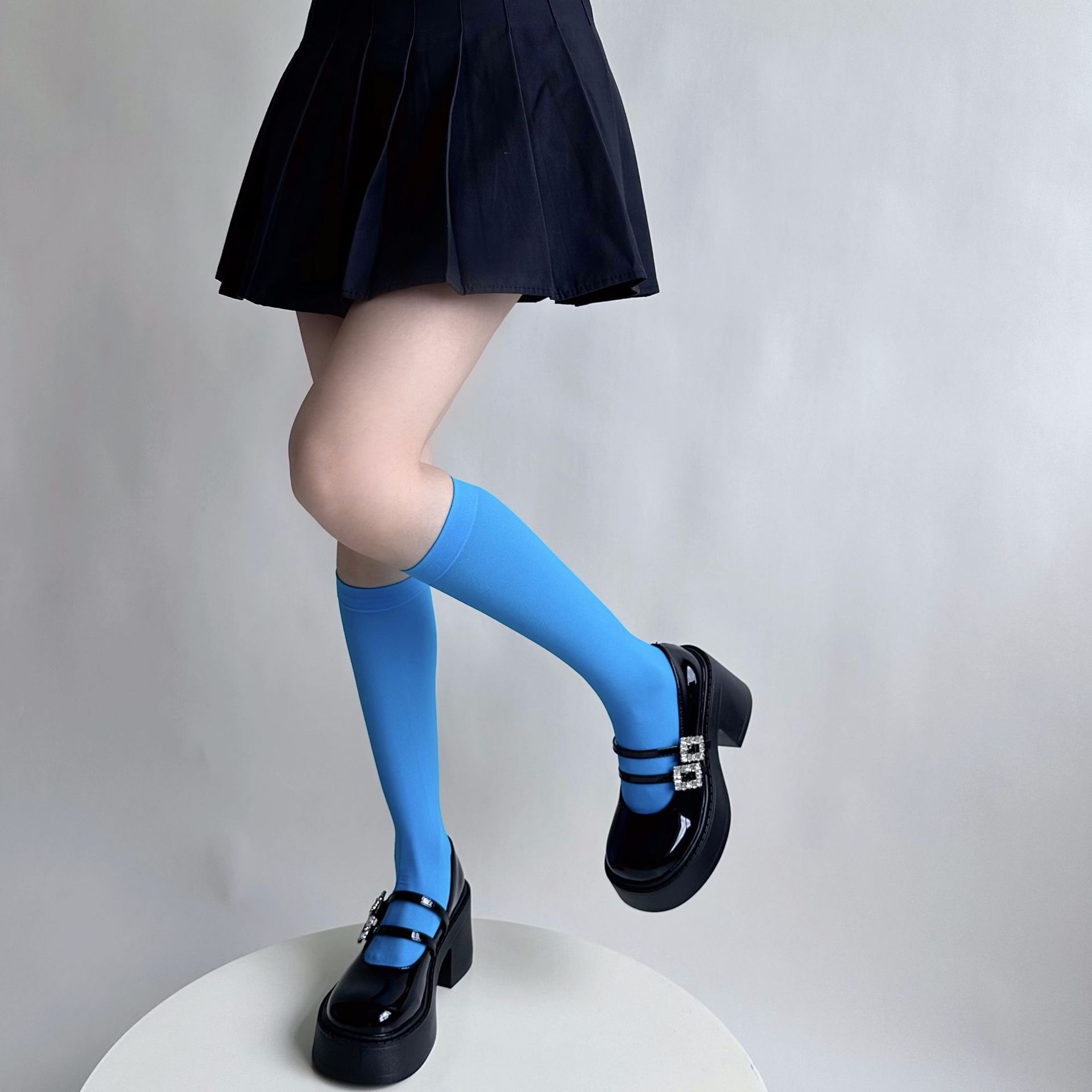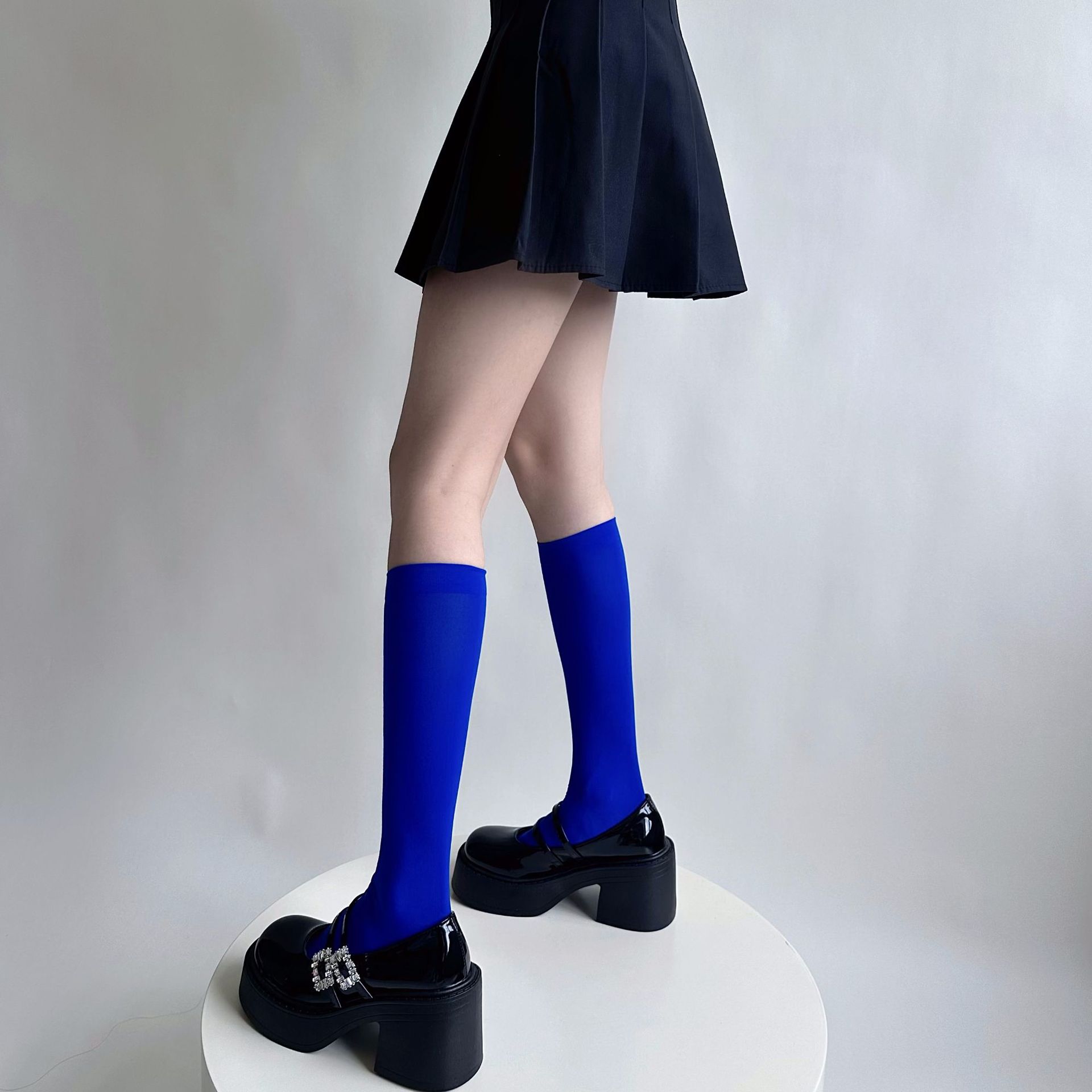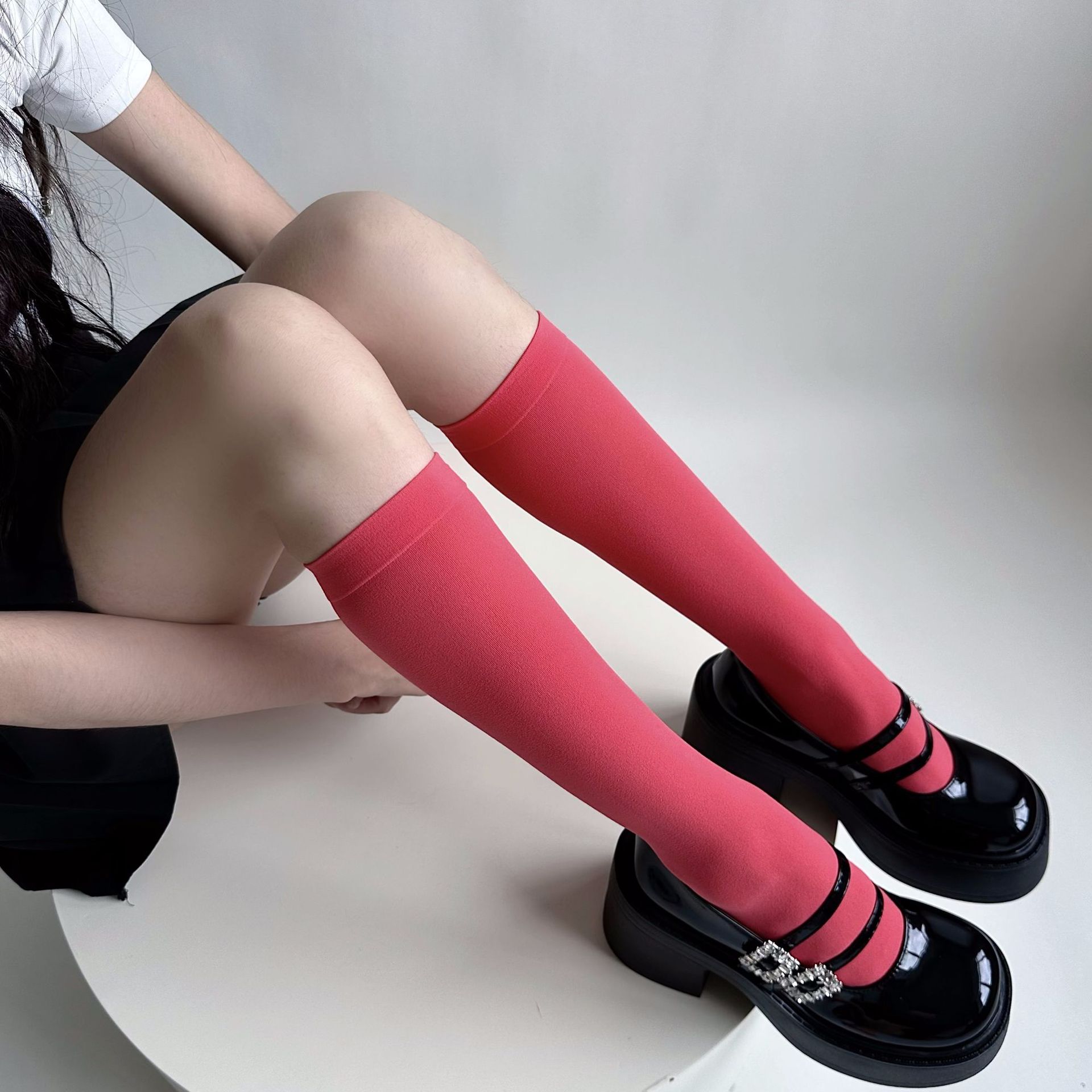 소녀의 여름 얇은 성격 올 매치 벨벳 캔디 컬러 무릎 높은 양말 컬러 일본 스타일 Y2K 스타일 여성용 송아지 양말스토어 가기