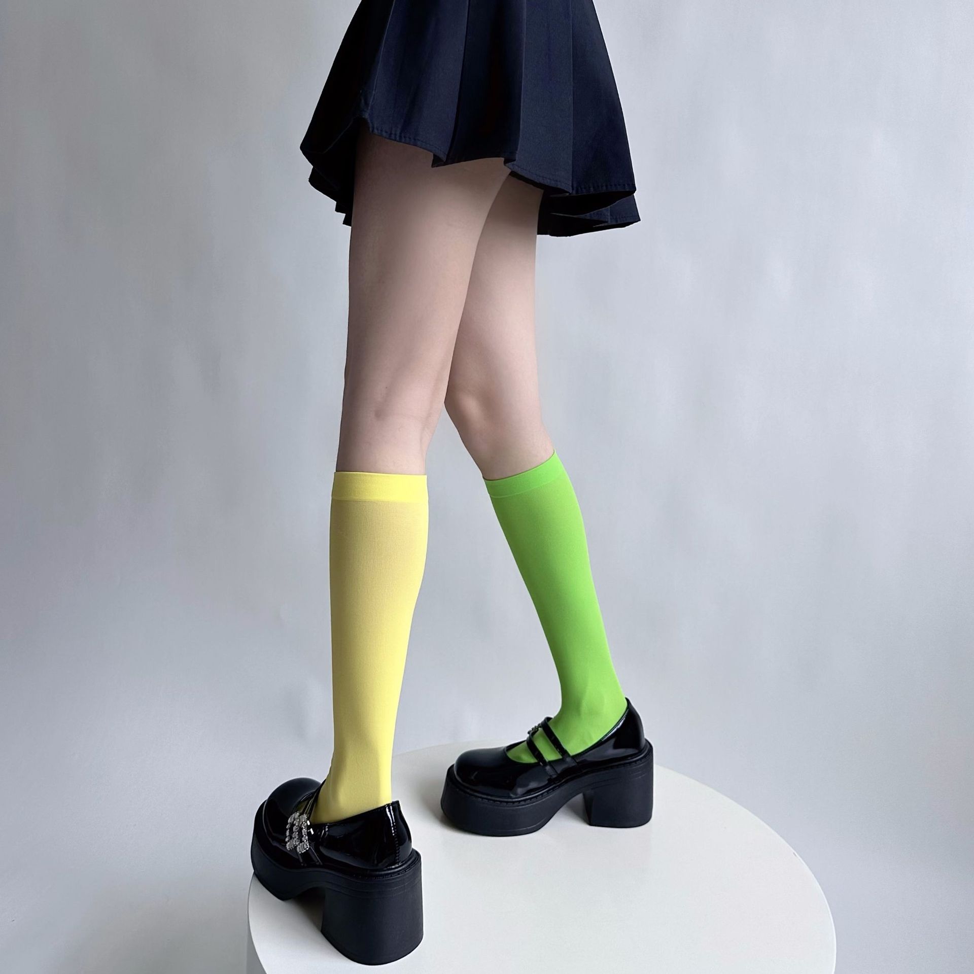소녀의 여름 얇은 성격 올 매치 벨벳 캔디 컬러 무릎 높은 양말 컬러 일본 스타일 Y2K 스타일 여성용 송아지 양말