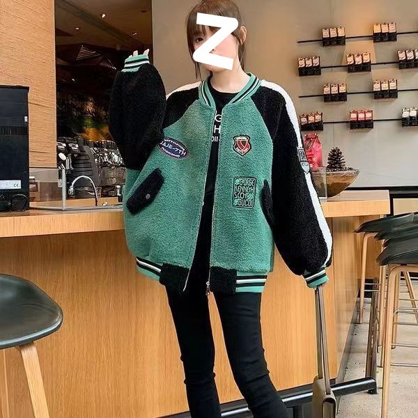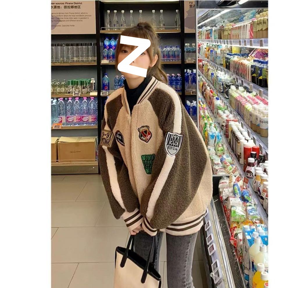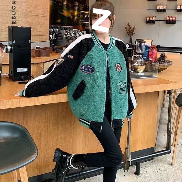 두꺼운 양고기 양모 코트 여성 유럽 역 2024 가을과 겨울 새로운 느슨한 플러스 사이즈 야구 옷을 학생 재킷에 넣습니다.스토어 가기