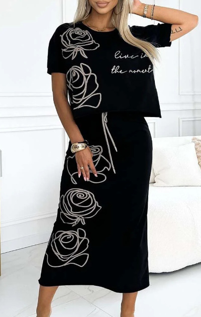 아마존 국경 2024 가을 유럽과 미국 패션 대외 무역 여성의 새로운 인쇄 된 두 조각 인쇄 원피스