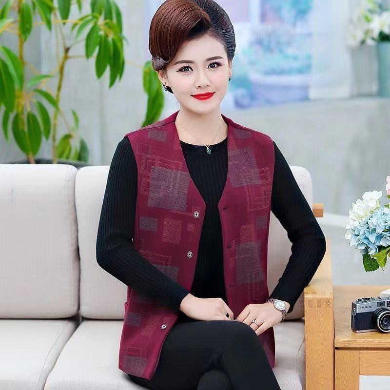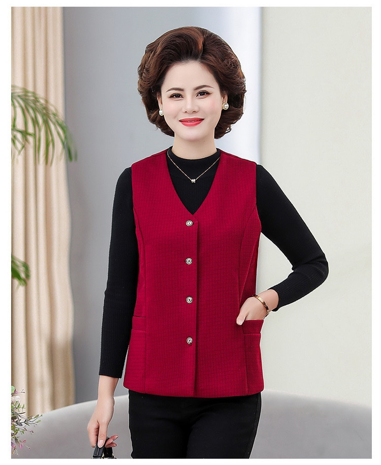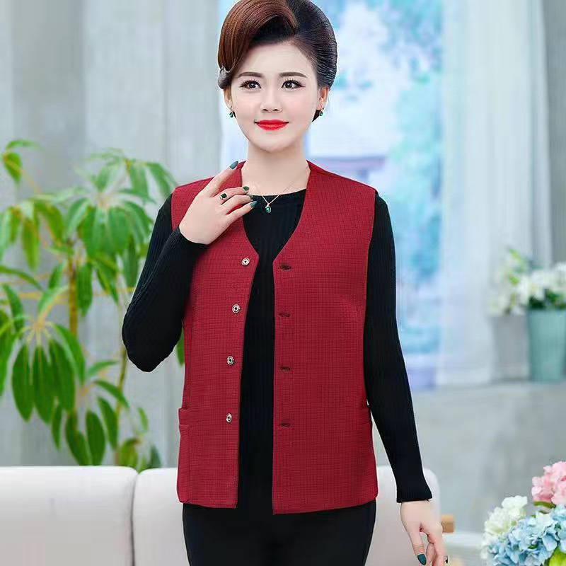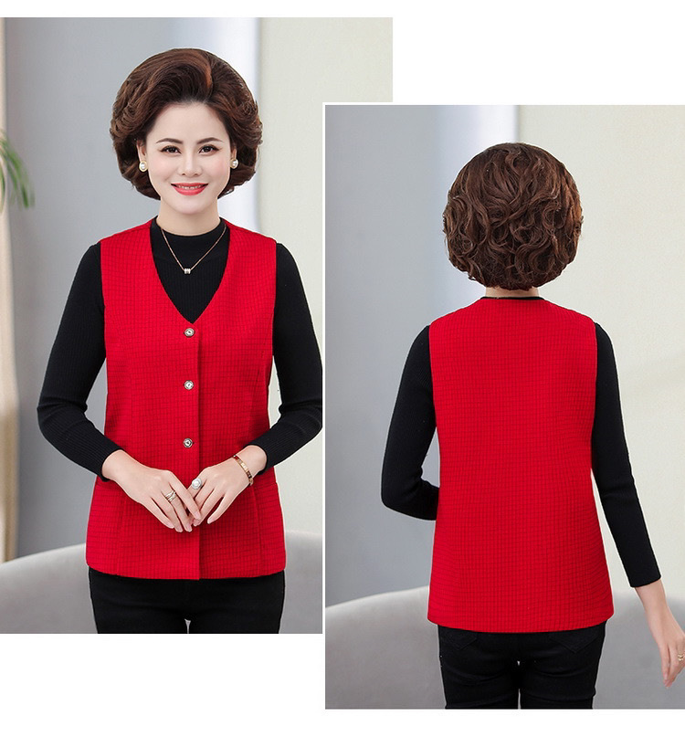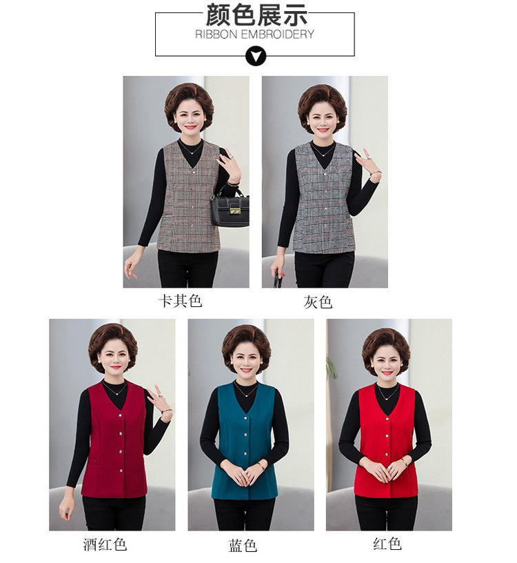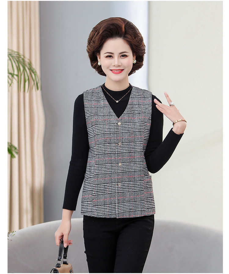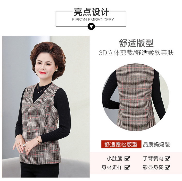 봄과 가을 중년 조끼 여성의 짧은 느슨한 플러스 사이즈 어머니의 격자 무늬 조끼 노인을위한 얇은 조끼