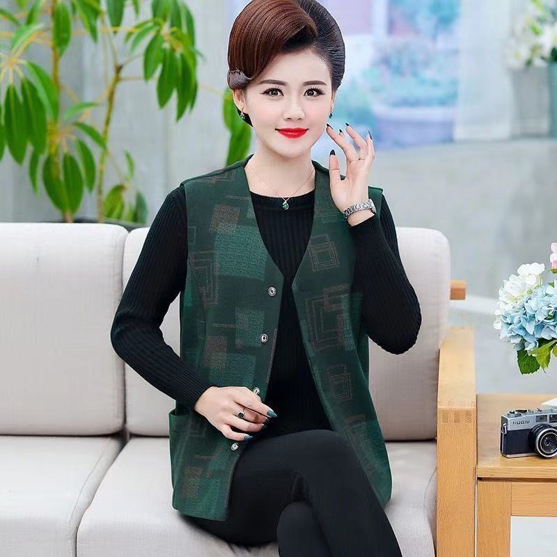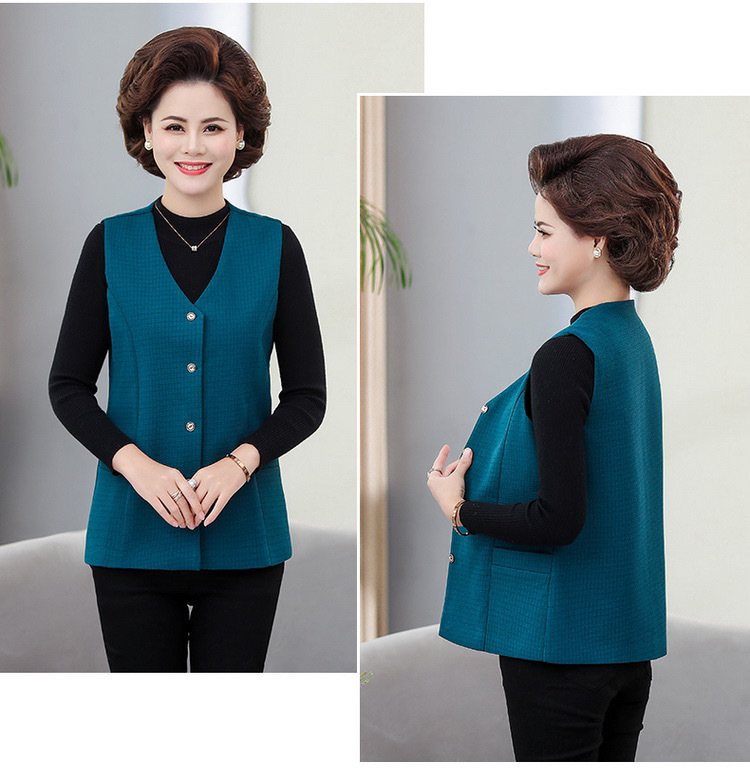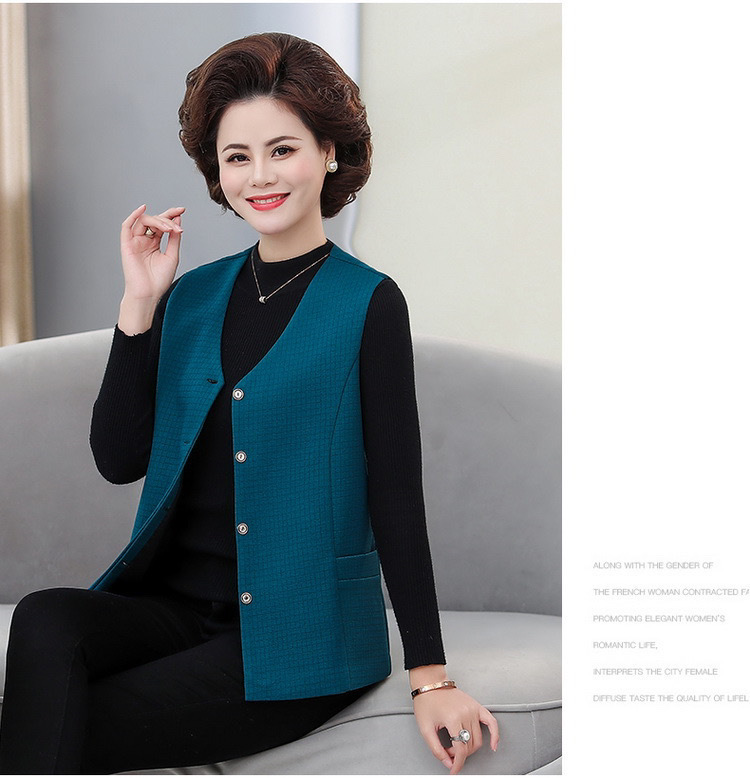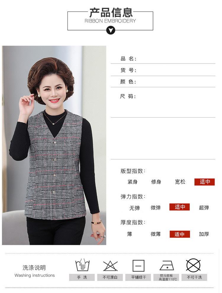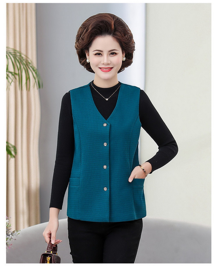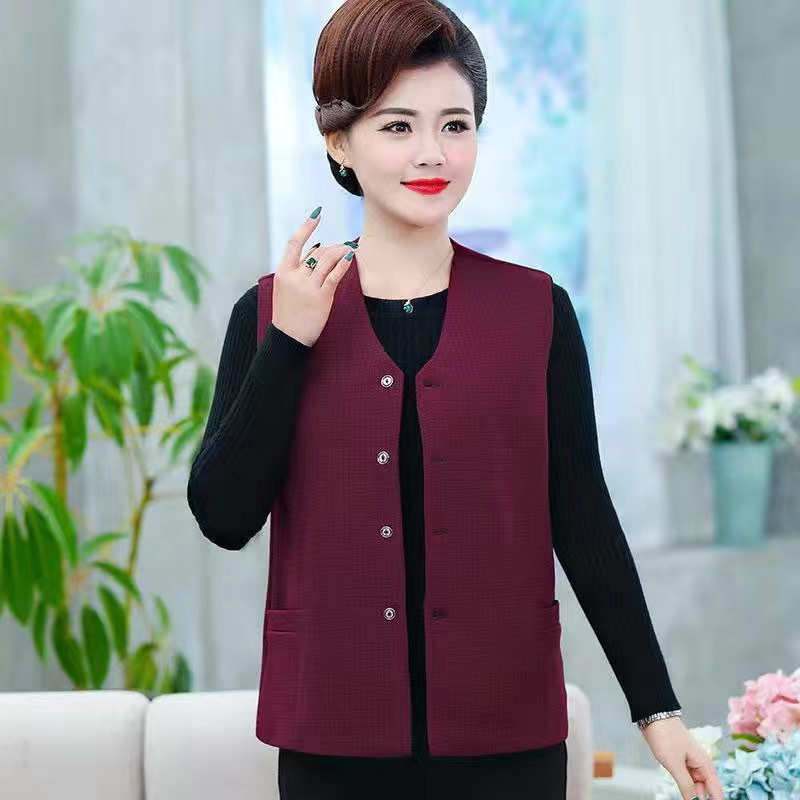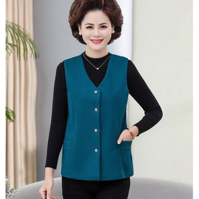 봄과 가을 중년 조끼 여성의 짧은 느슨한 플러스 사이즈 어머니의 격자 무늬 조끼 노인을위한 얇은 조끼
