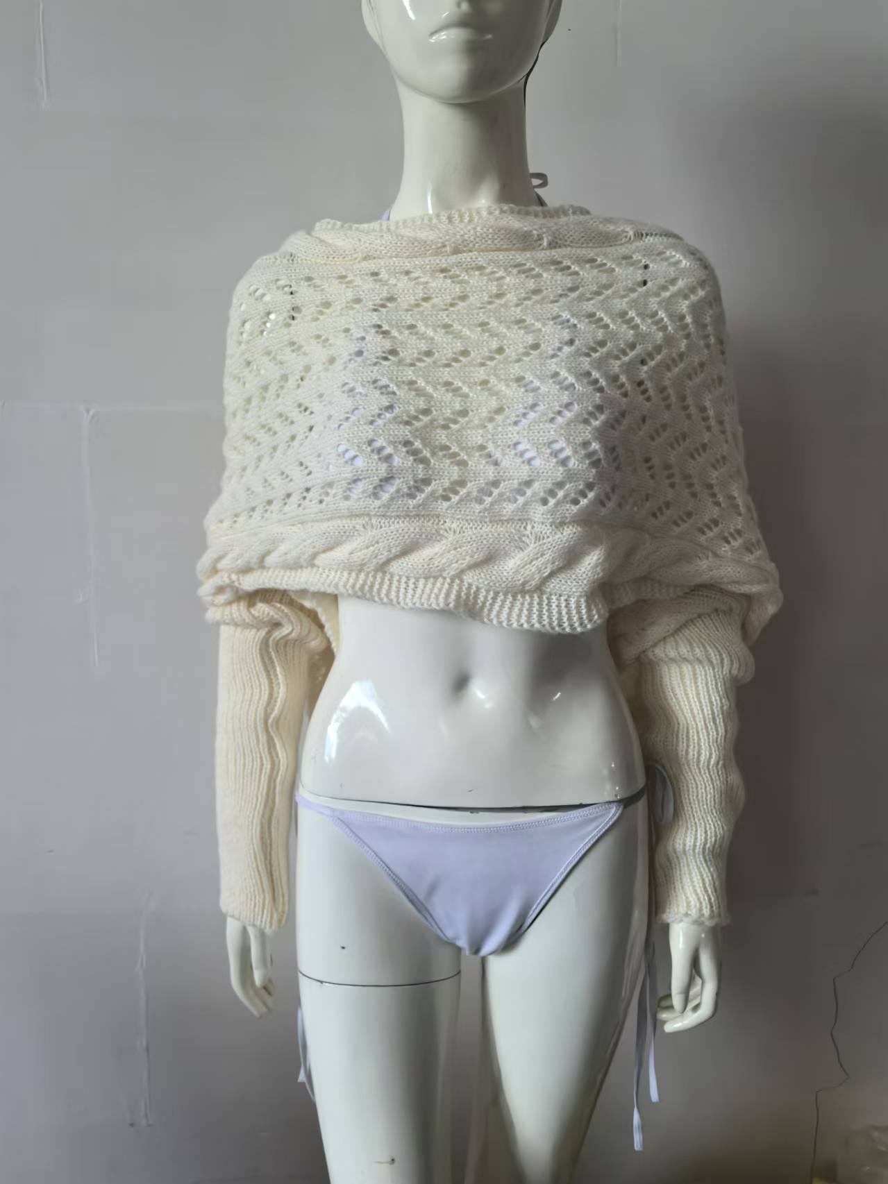 2024 년 새로운 아마존 폭발 중공 짧은 크로스 스웨터 니트 긴 목도리 따뜻한 스카프 여성용 칼라