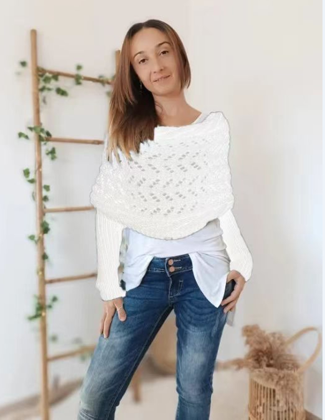 2024 년 새로운 아마존 폭발 중공 짧은 크로스 스웨터 니트 긴 목도리 따뜻한 스카프 여성용 칼라스토어 가기