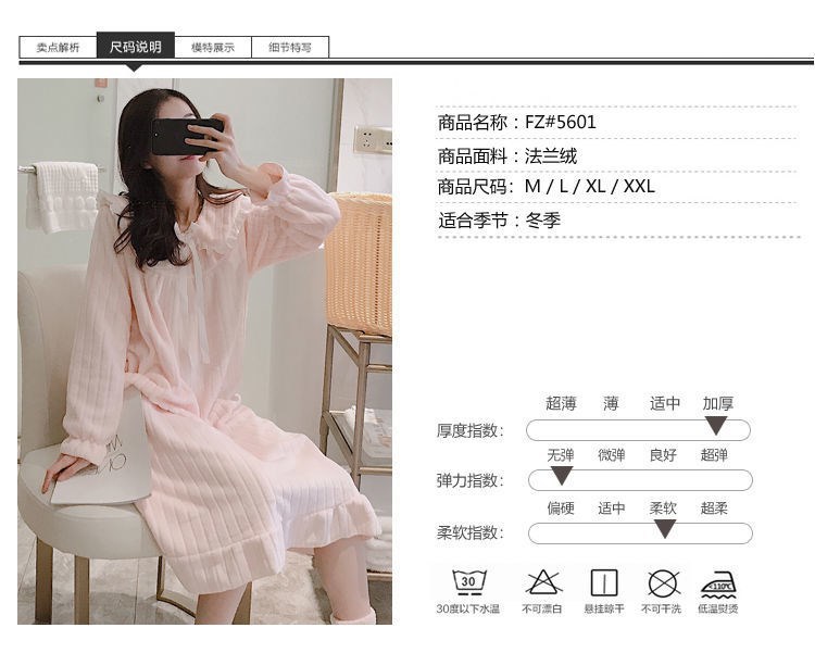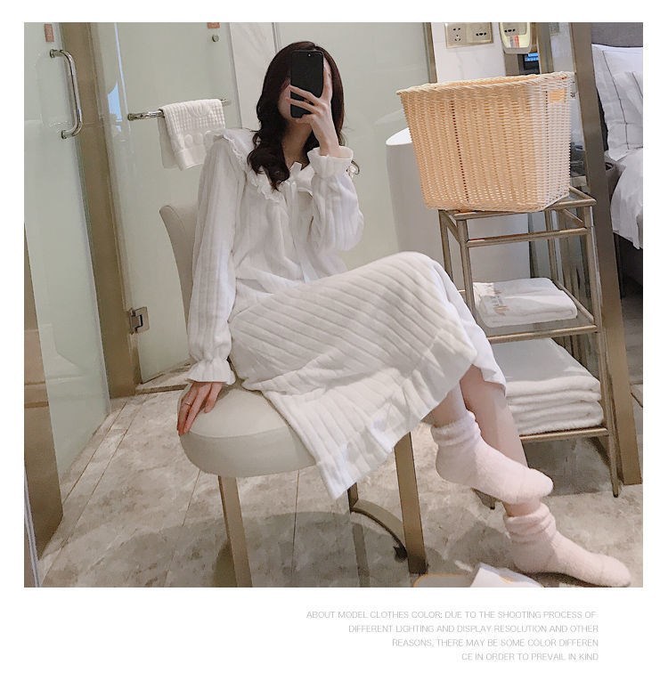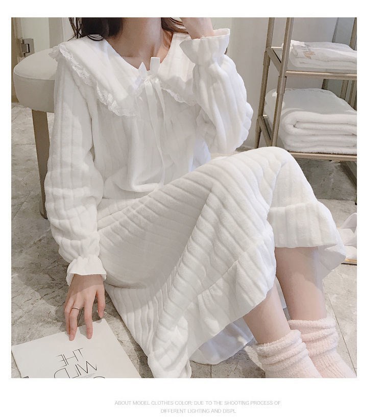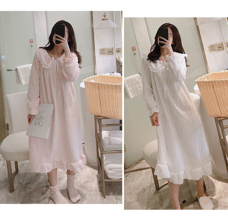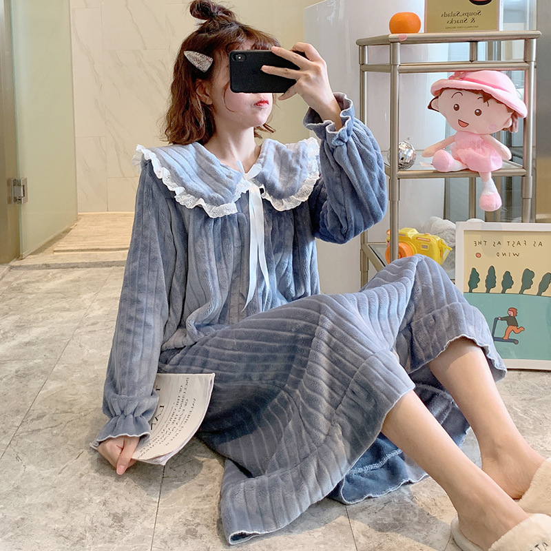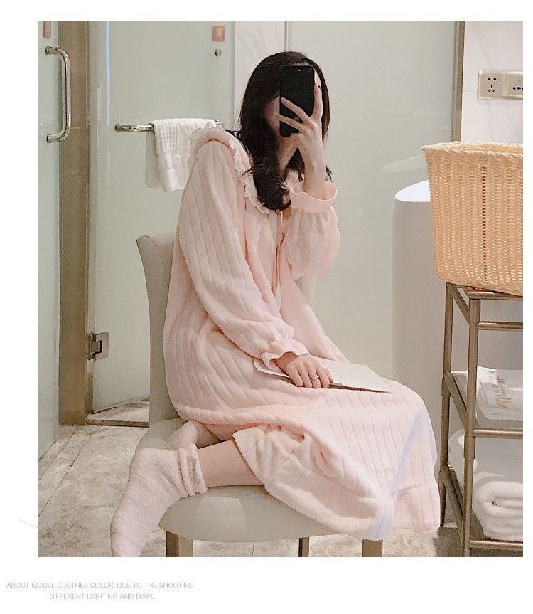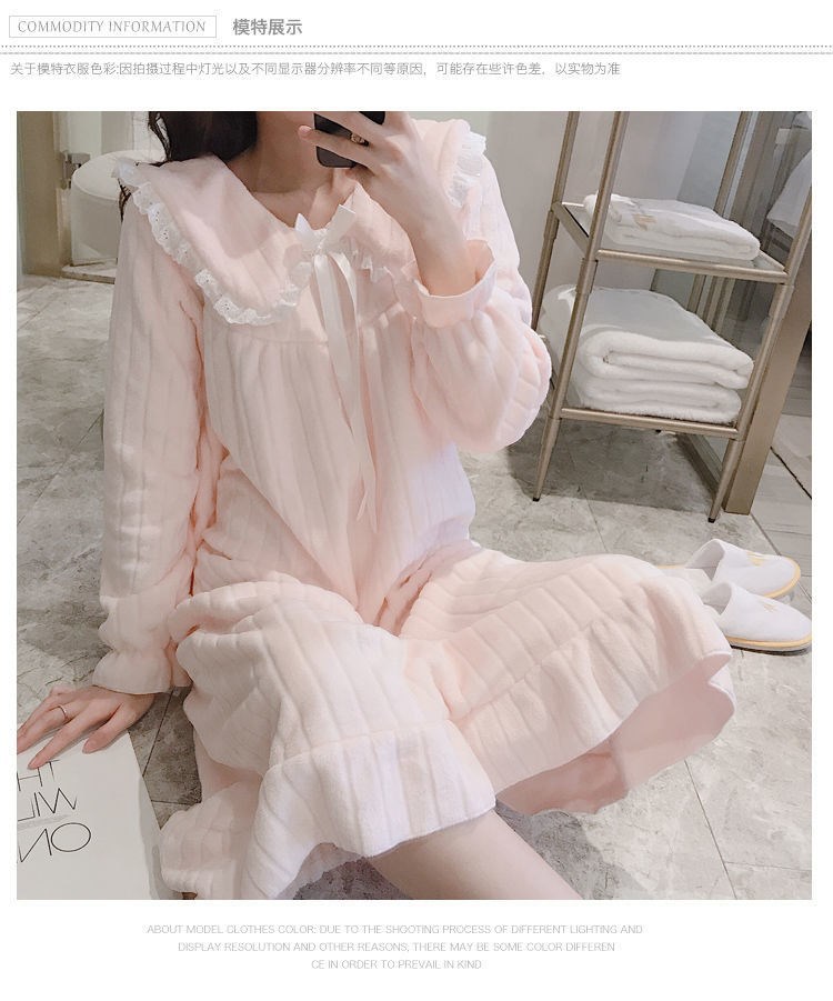 나이트 가운 여성의 가을과 겨울 산호 양털 달콤한 귀여운 공주 스타일 홈 옷 플란넬 두꺼운 중간 길이의 국경스토어 가기