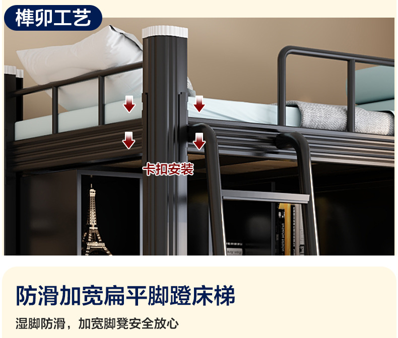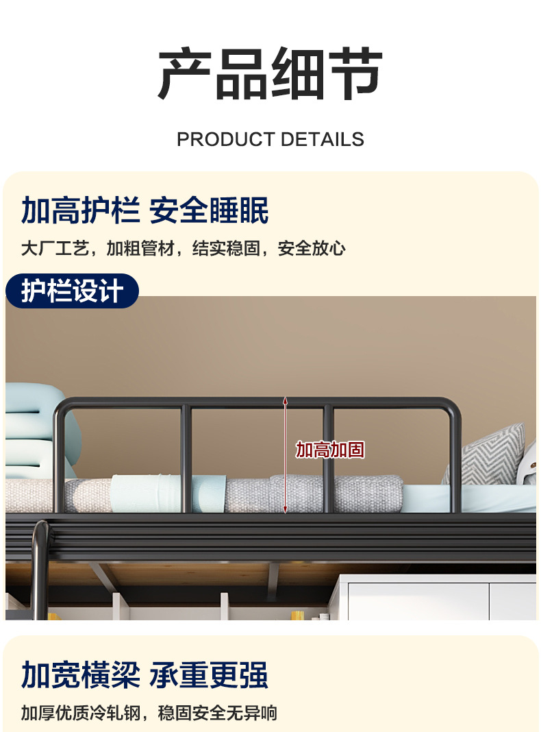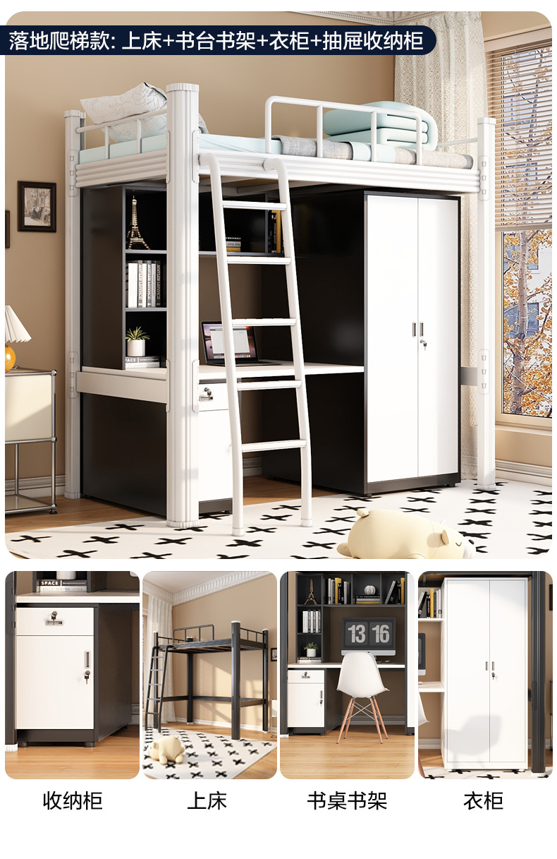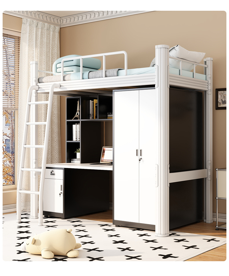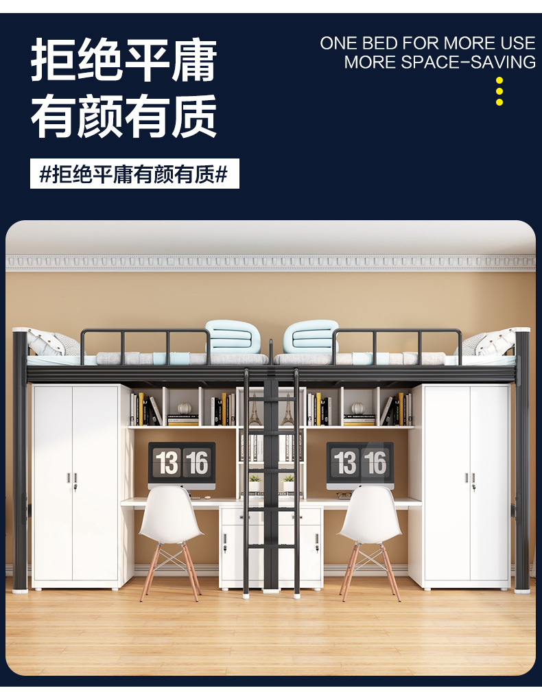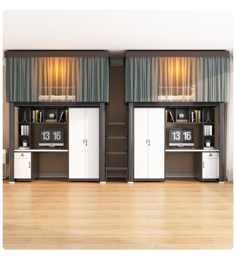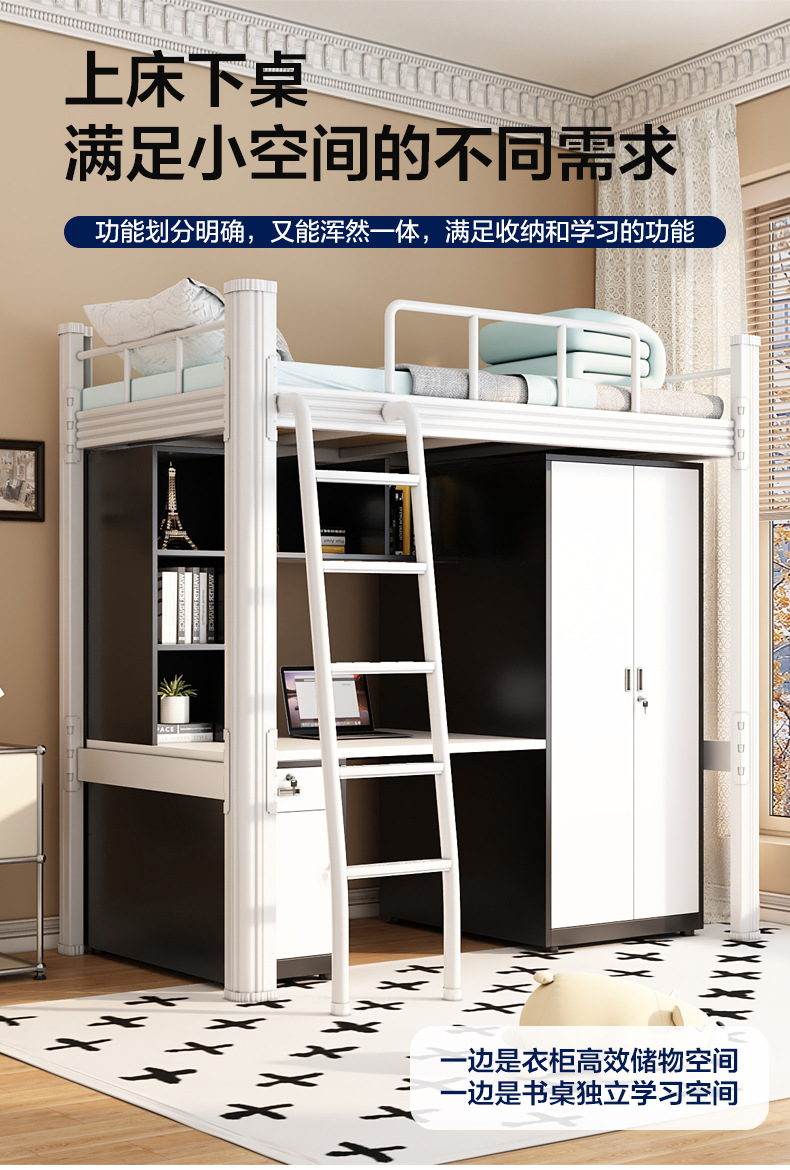 두꺼운 철 높은 침대 학생 기숙사 상하 이층 침대 다기능 침대 낮은 테이블 콤보 아파트 침대