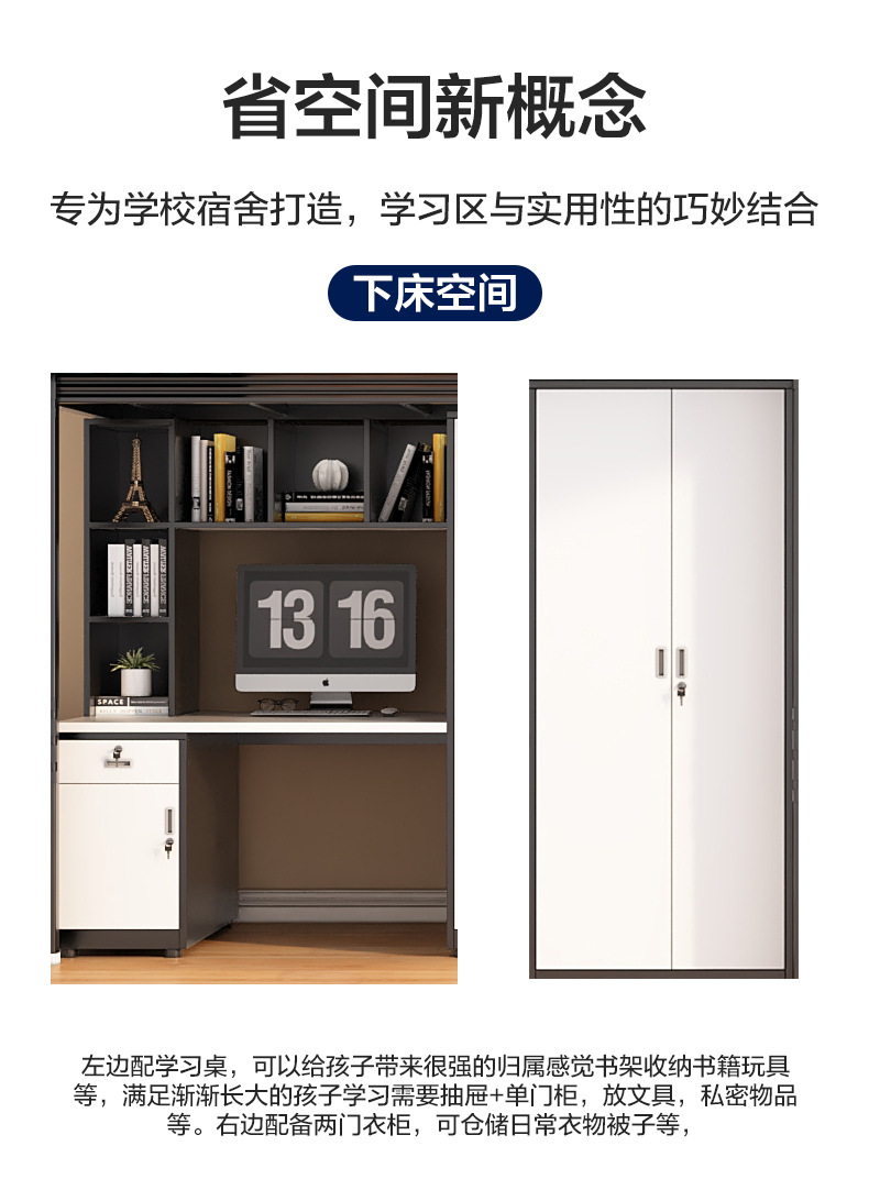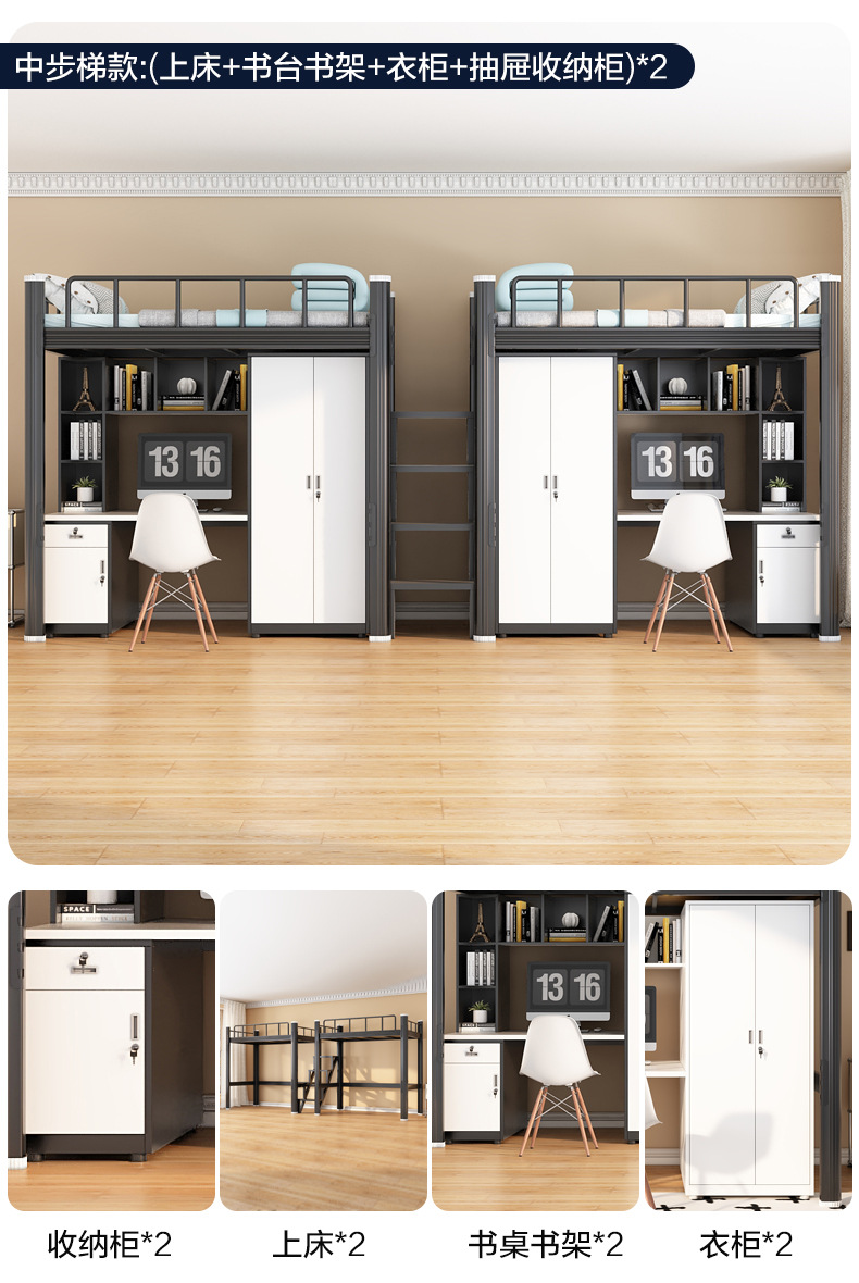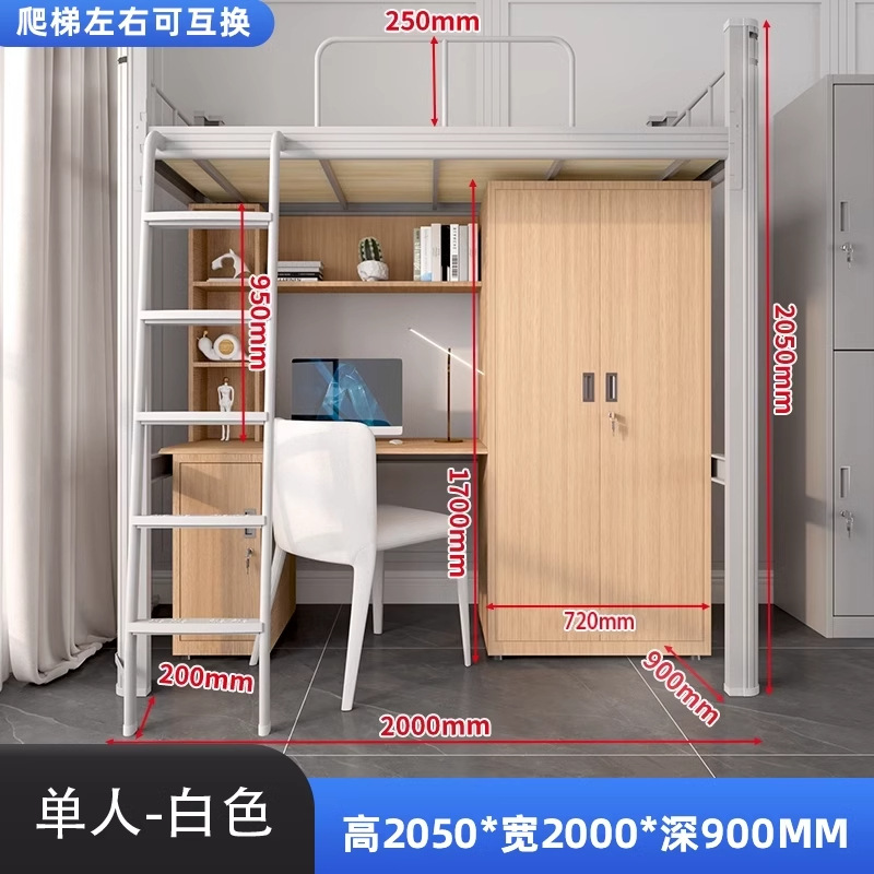 • 단일 흰색 침대 프레임 + 강철 옷장 + 데스크탑 + 책장 + 작은 캐비닛