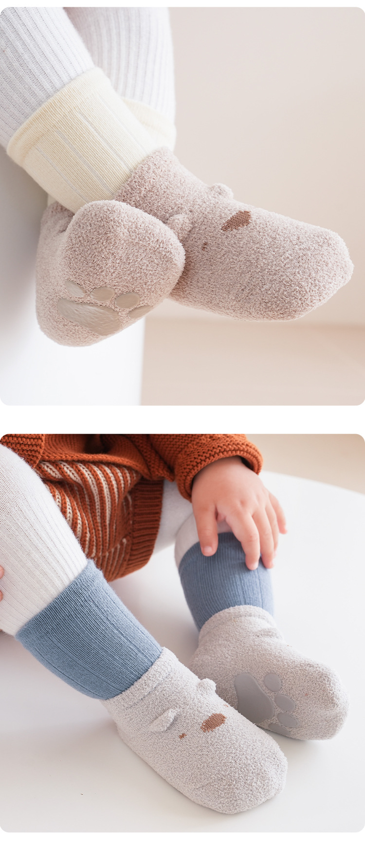 24 년 새로운 가을과 겨울 아기 바닥 양말 더블 Luokou 만화 색상 일치하는 아기 분배 미끄럼 방지 유아 양말 두꺼운 따뜻한스토어 가기
