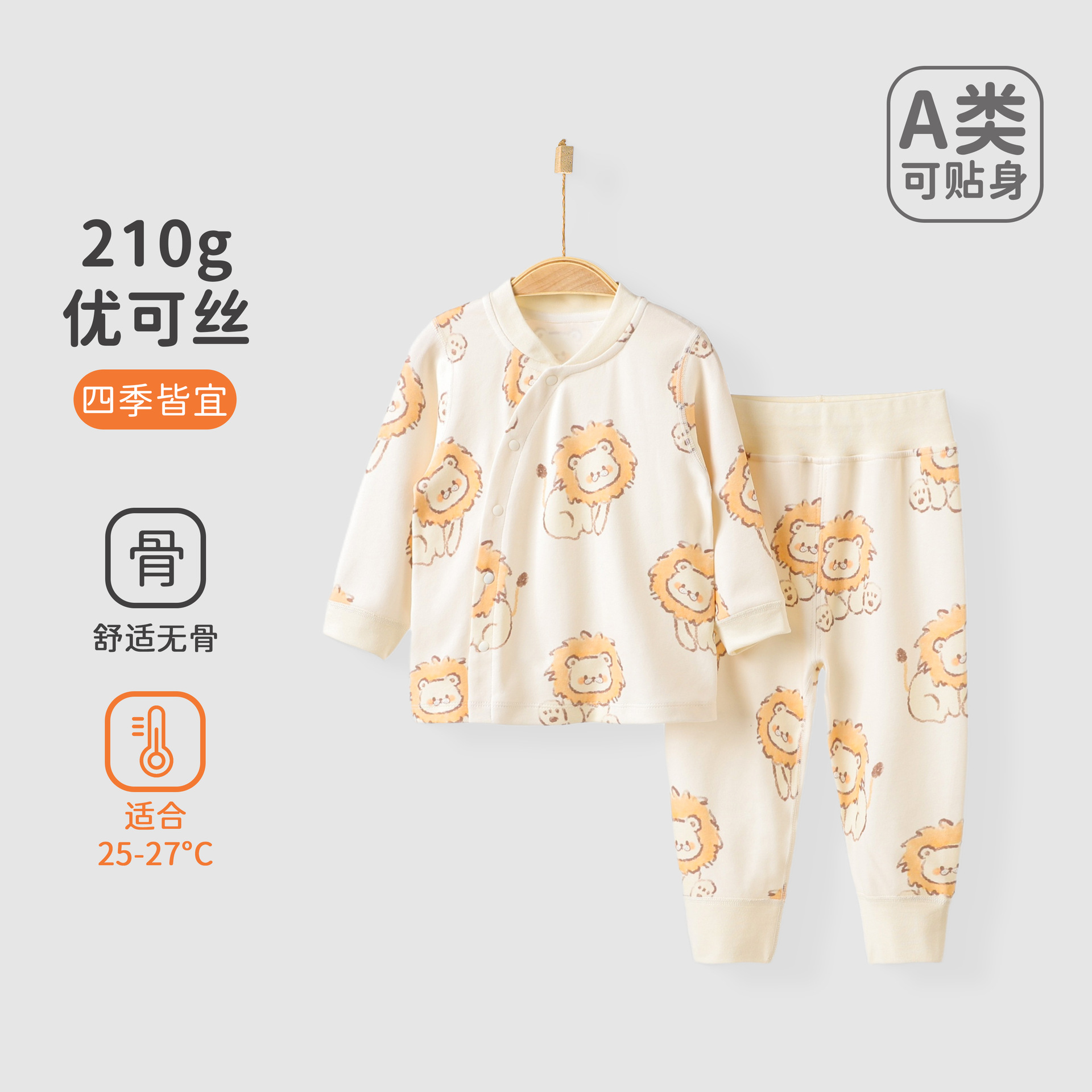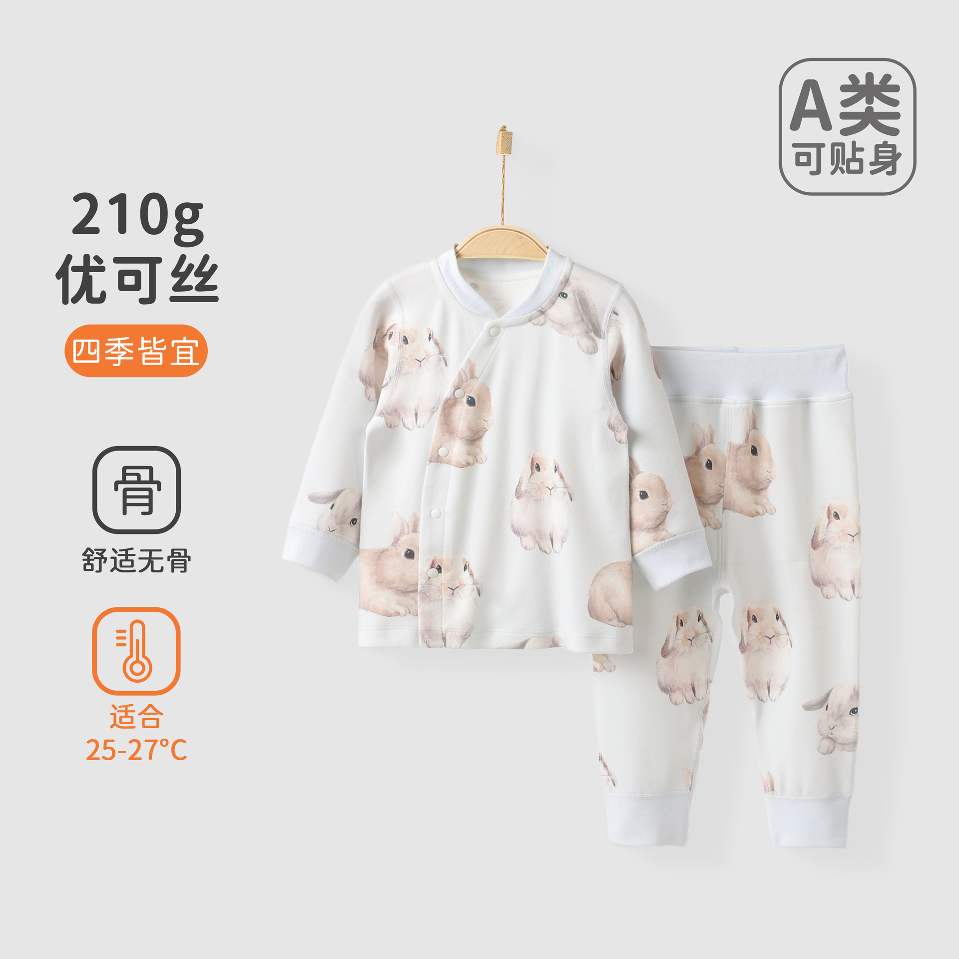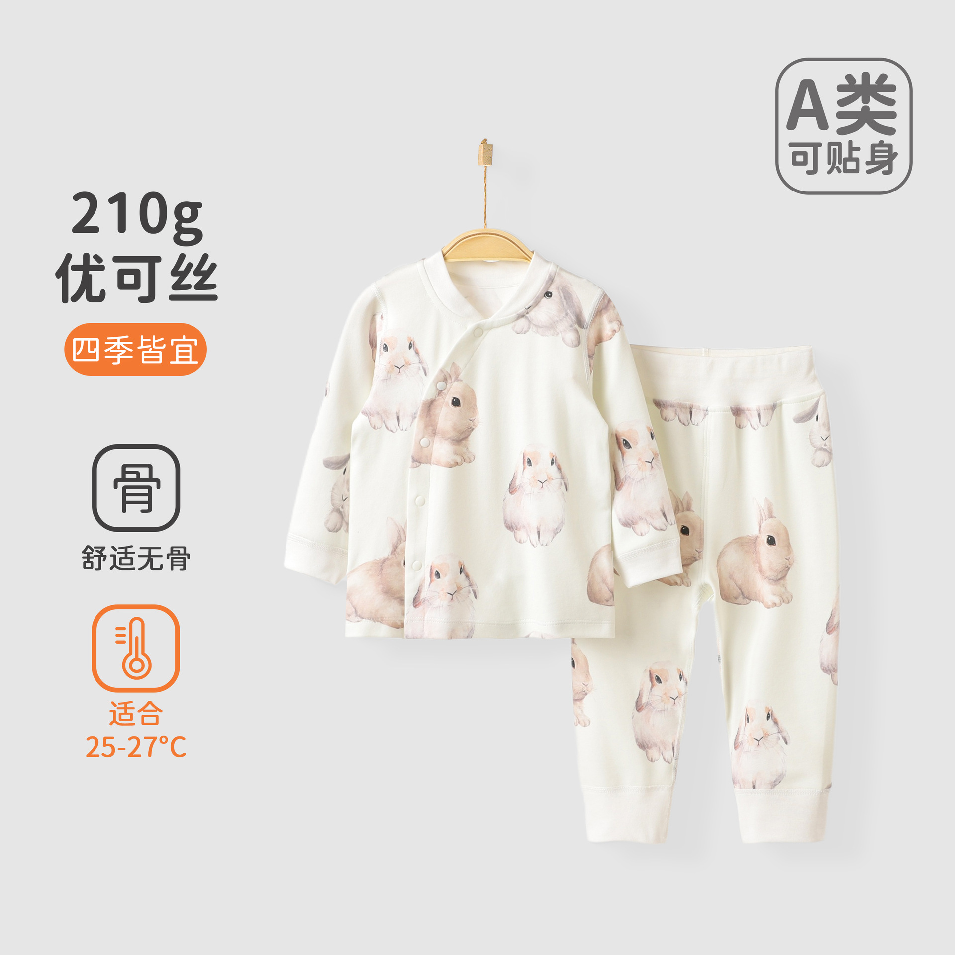 210g 유카 어린이 소년과 소녀 분할 아기 긴 소매 홈 옷 어린이 중간 허리 긴 소매 세트스토어 가기