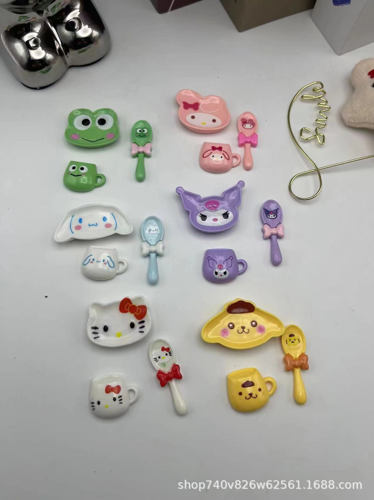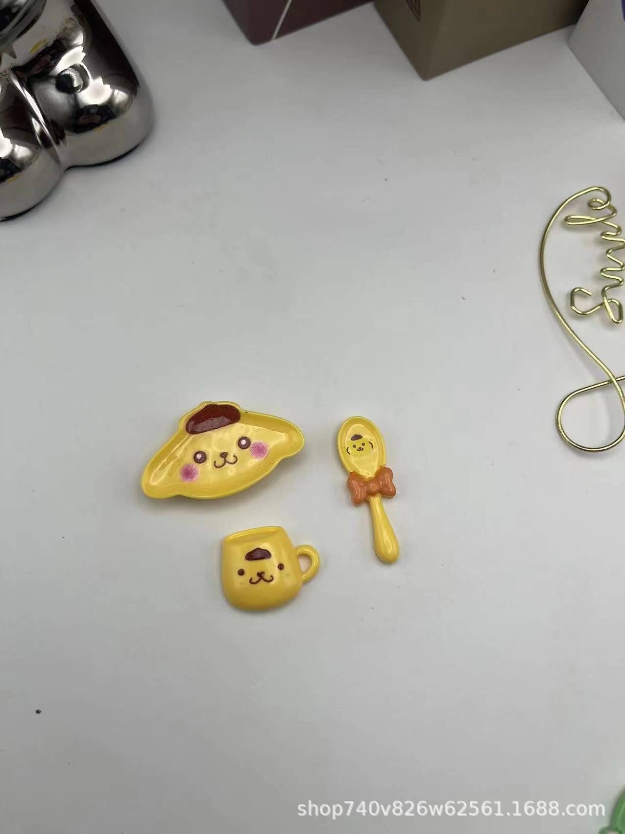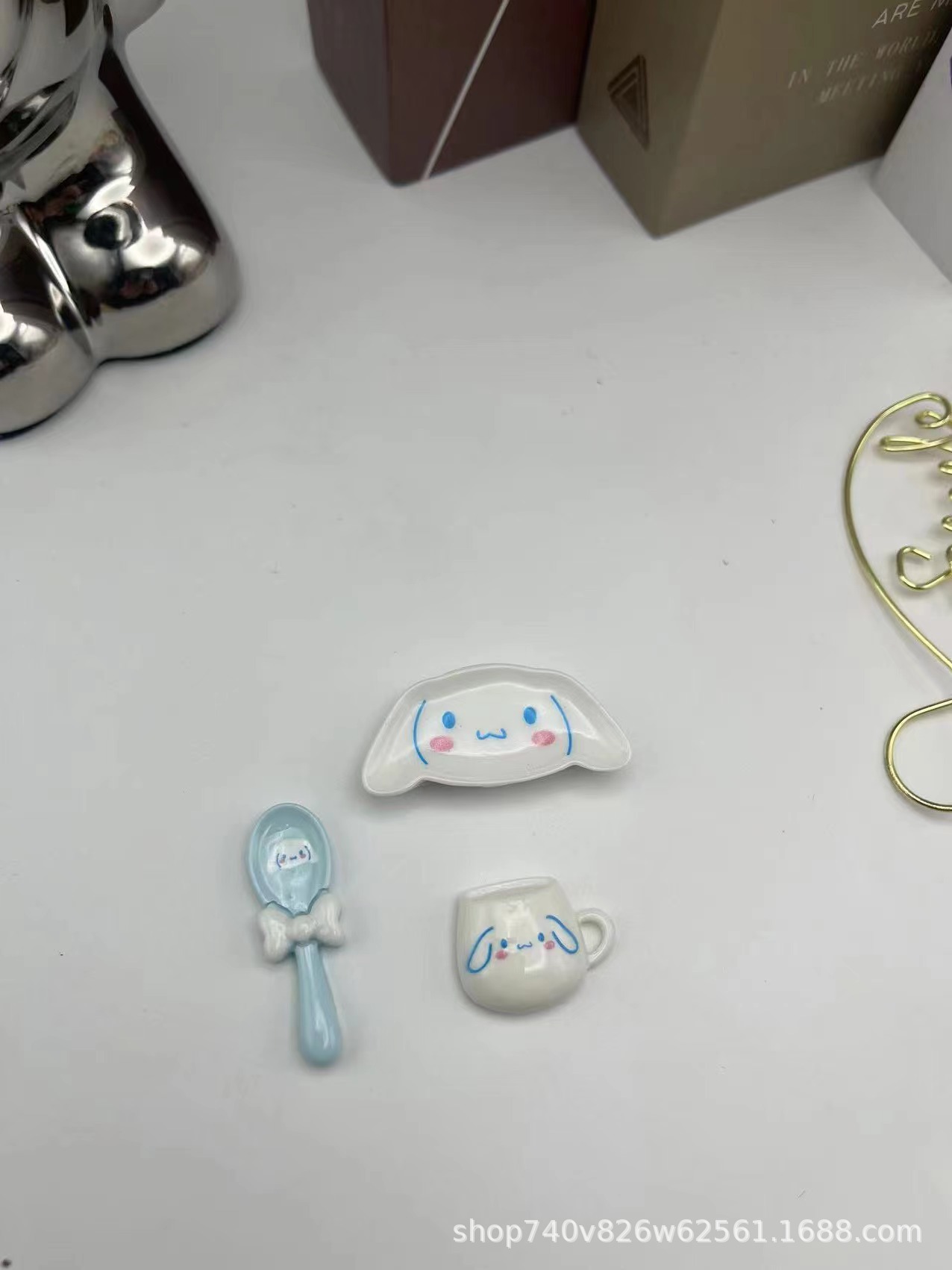 만화 귀여운 유구이 개 식기 3 종 세트 DIY 크림 접착제 수지 보석 액세서리 물 컵 놀이 홈 장난감스토어 가기
