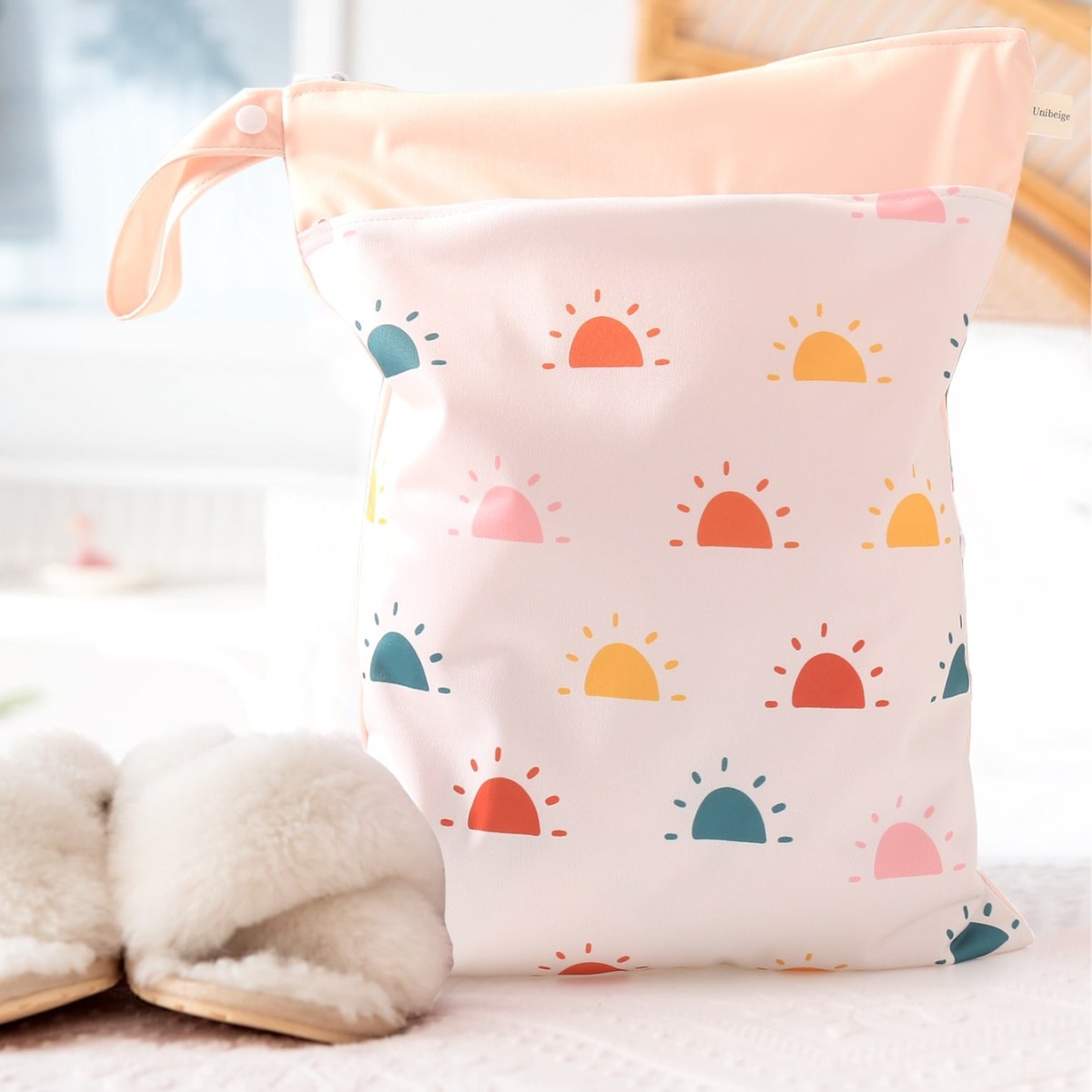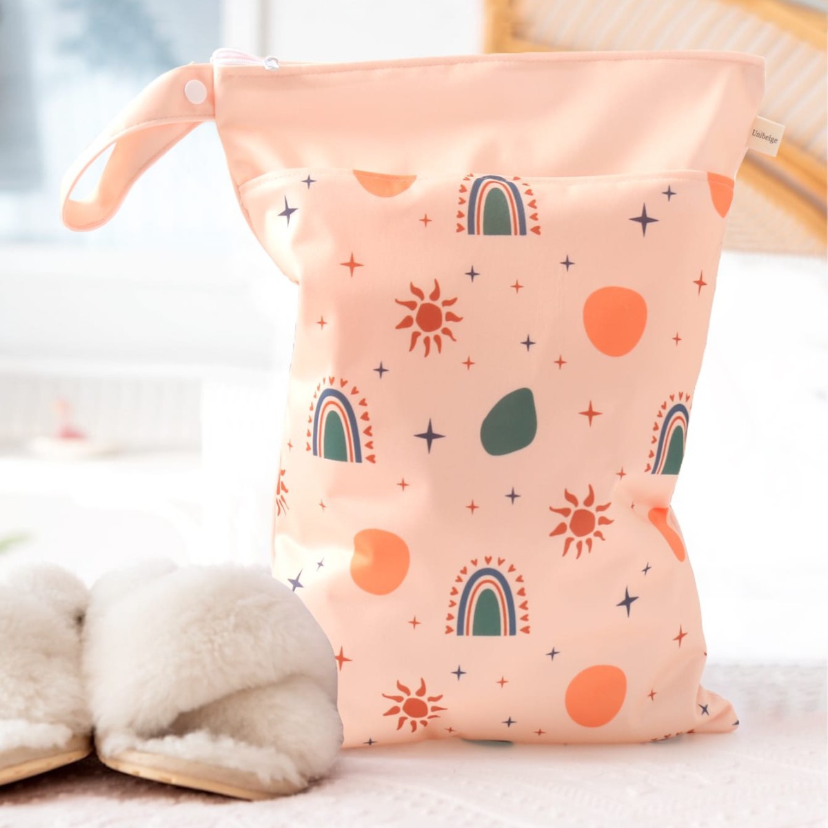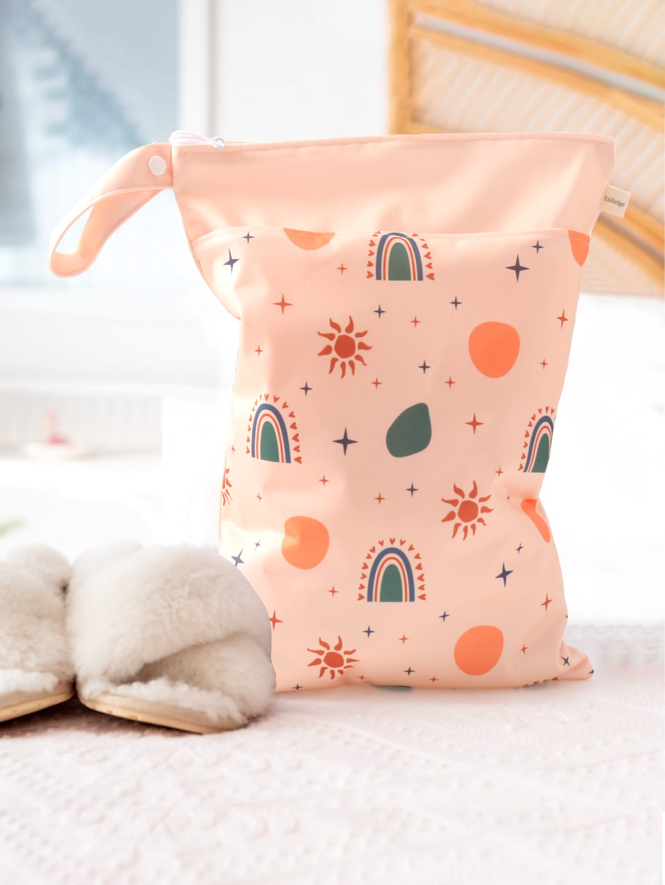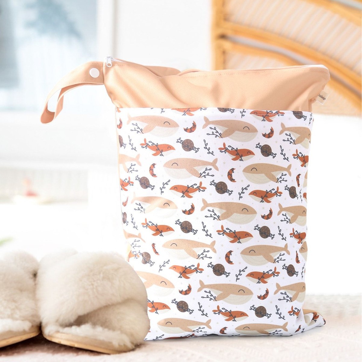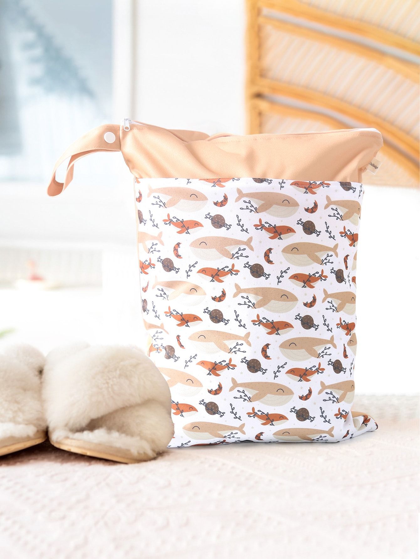 亚马逊ins风萌趣印花双层宝宝尿片防水收纳袋大容量 儿童房收纳
