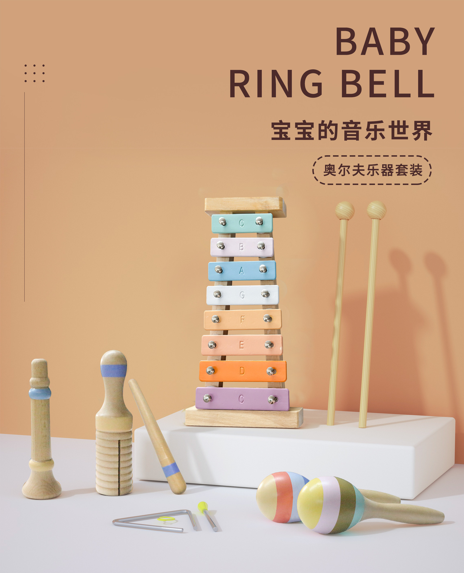 나무 조기 교육 작은 음악가 Orff Drum Knocking Harmonica Cingboard 감각 어린이 악기 세트 교육 장난감스토어 가기