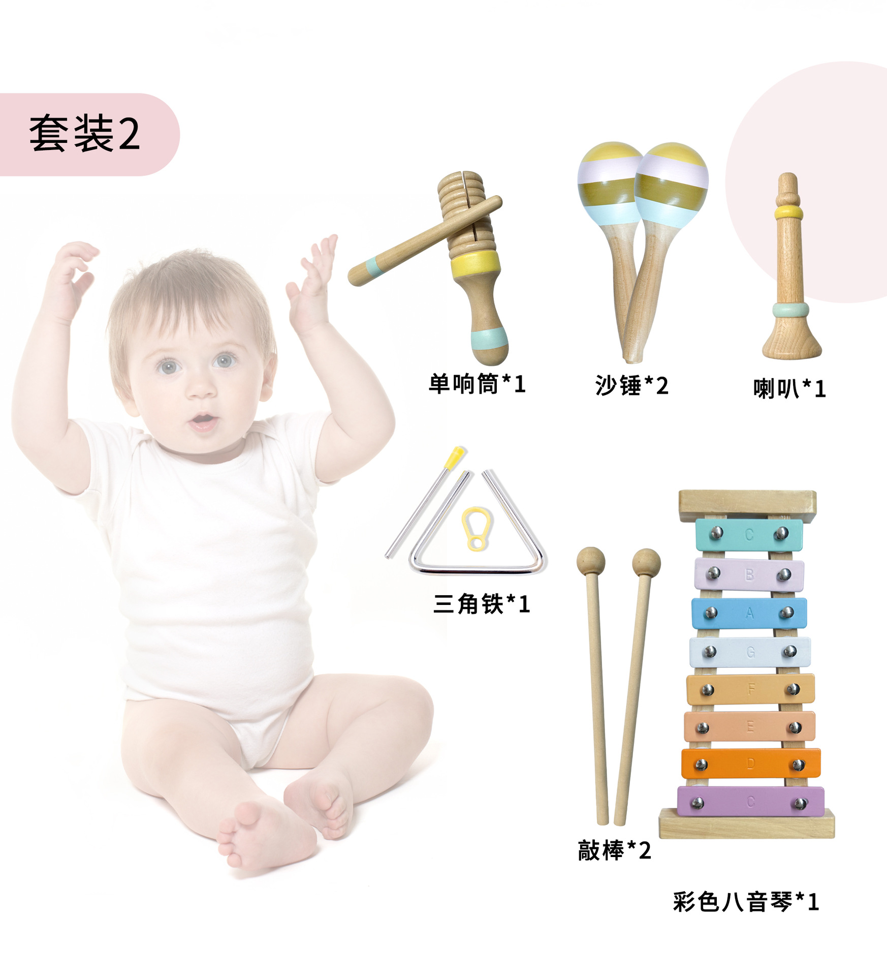 나무 조기 교육 작은 음악가 Orff Drum Knocking Harmonica Cingboard 감각 어린이 악기 세트 교육 장난감