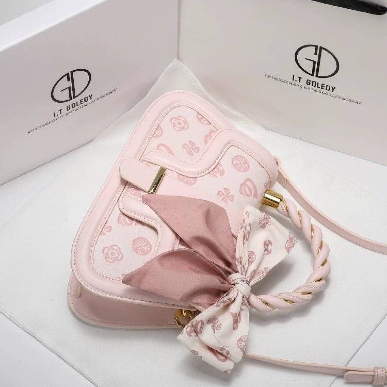 핑크 엠보싱 핸드백 2025 여름 다목적 트렌드 원 숄더 크로스 바디 안장 가방 도매스토어 가기