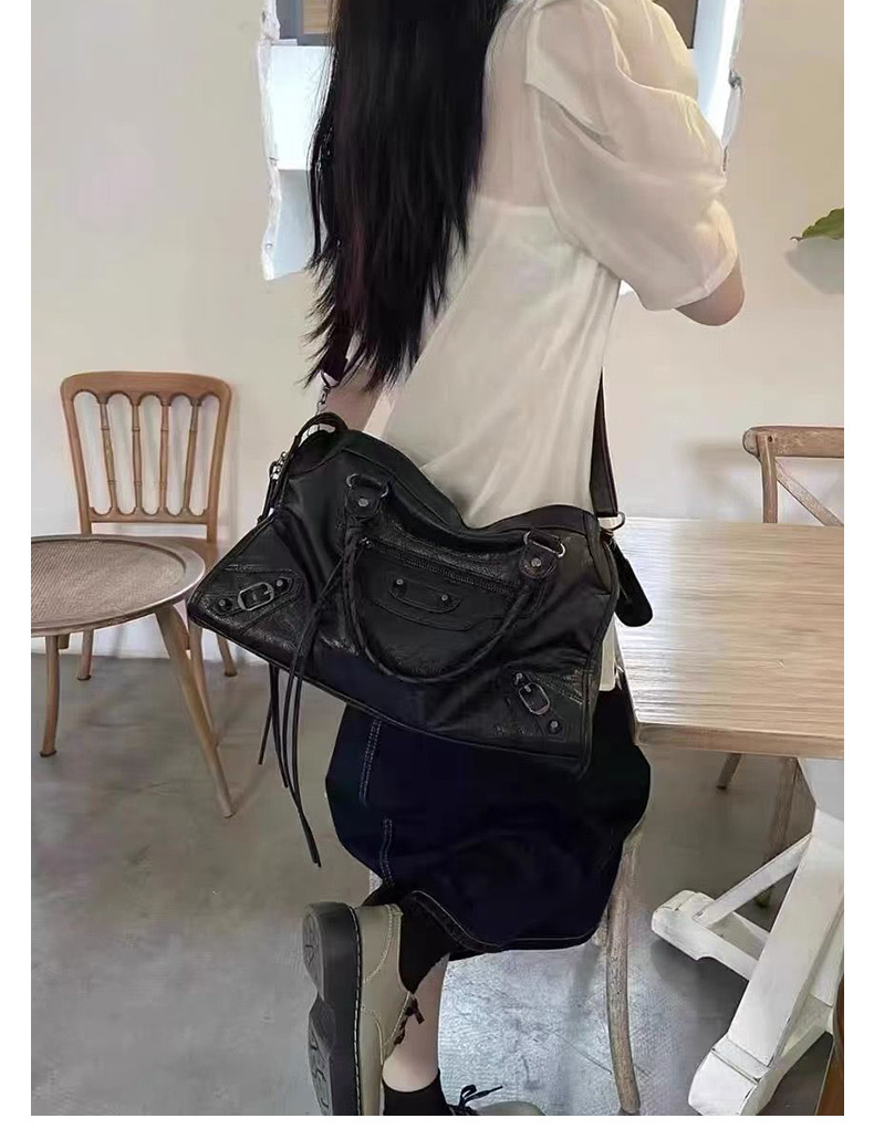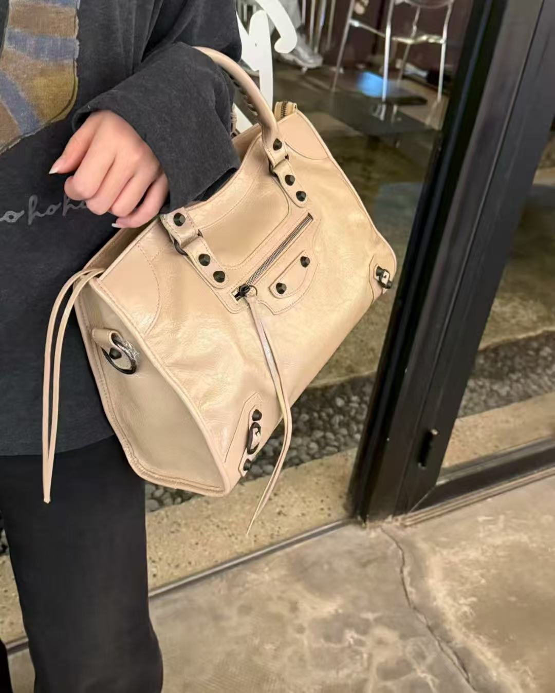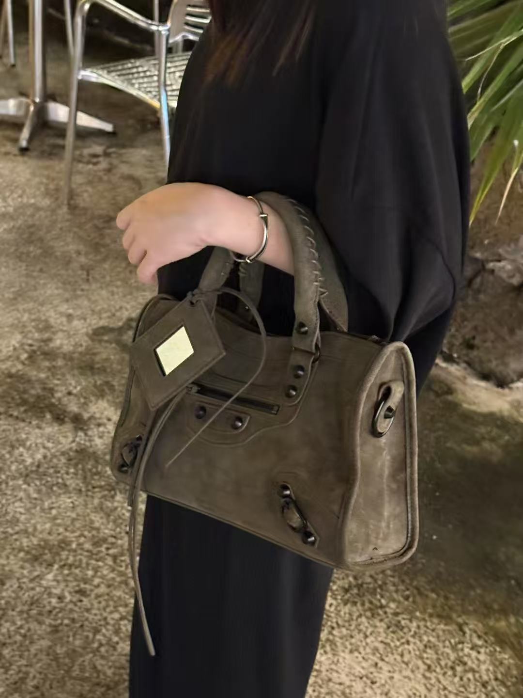 25 신형 르 시티 프렌치 스타일 바이커 백 소프트 스웨이드 ABG 핫걸 리벳 백 1층 소가죽 크로스바디 핸드백스토어 가기