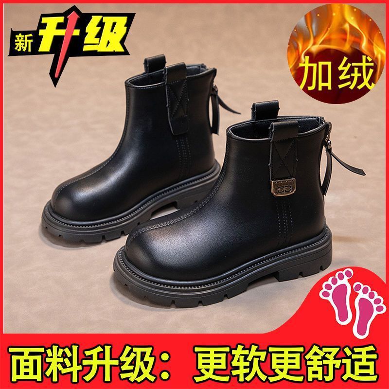여자 가을, 겨울 부츠 어린이 마틴 2024 가을 짧은 부츠 새로운 아기 신발 플러스 벨벳 마틴 부츠