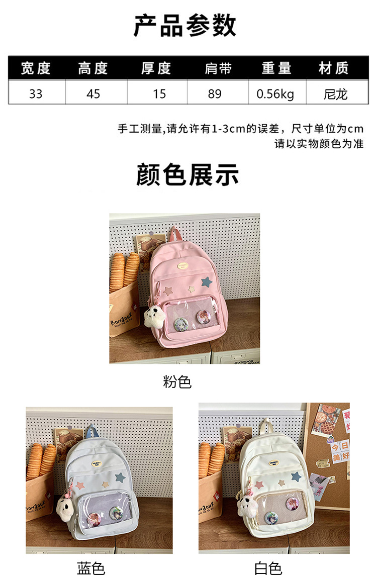 일본식 투명 통증 가방 대용량 올 매치 배낭 외국 스타일 소녀의 데일리 스트리트 휴대용 Schoolbag