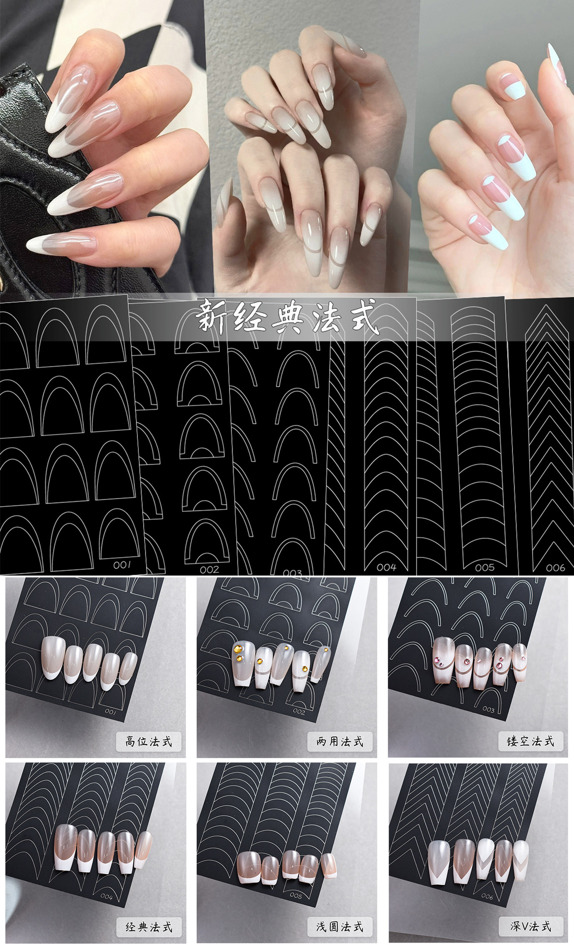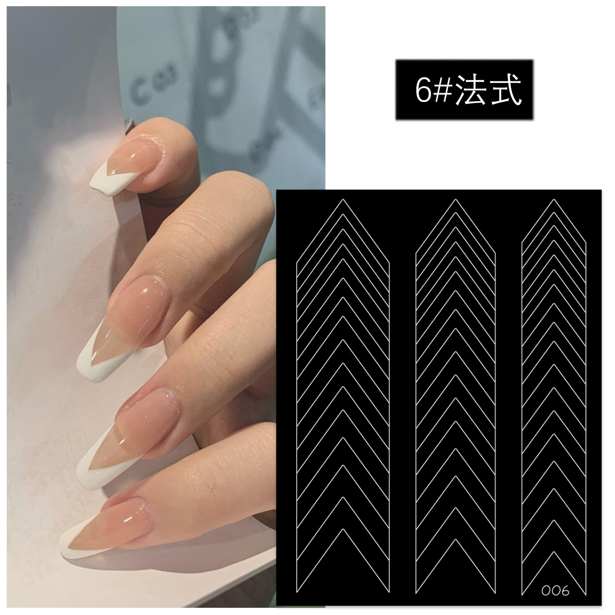 새로운 할로우 프랑스 네일 아트 스티커 이중 사용 라이트 라운드 딥 V 프랑스 사이드 보조 스티커 스마일 스트라이프 착용 네일 스티커스토어 가기