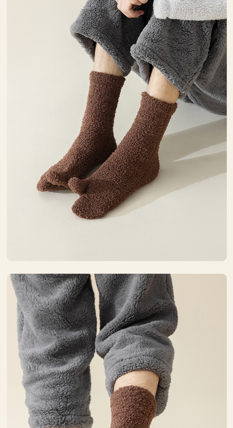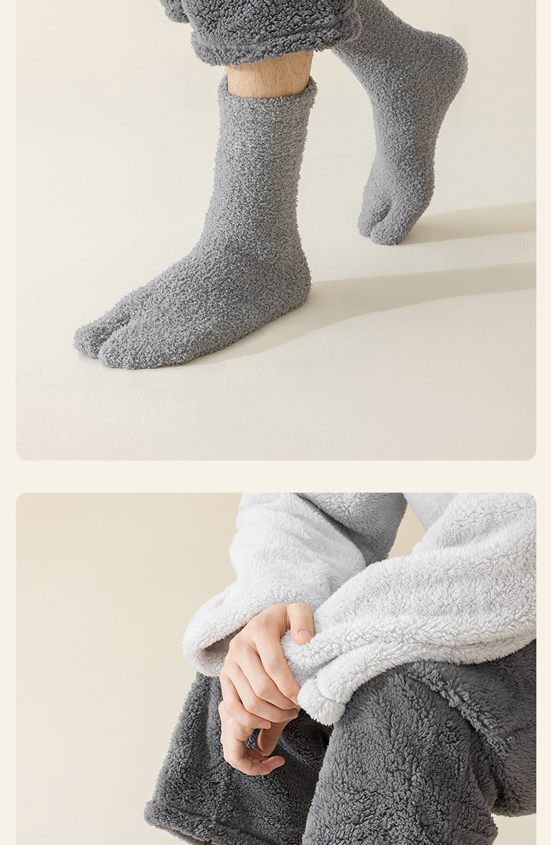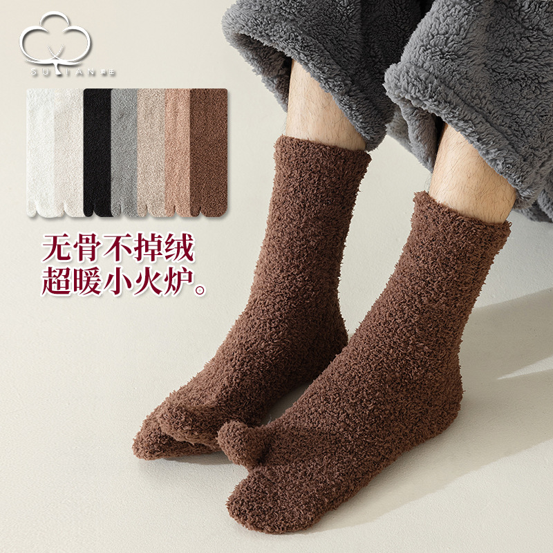 산호 양털 수면 양말 겨울 기모 머리없는 남성용 양말 두꺼운 발가락 양말 남성의 내한성 서리 방지 따뜻한