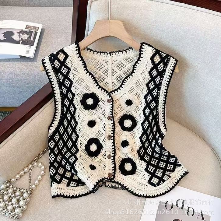 가을 프랑스 스타일 빈티지 세련된 중공 스티칭 꽃 쉬폰 셔츠 여성용 틈새 디자인 센스 슬림 퍼프 슬리브 탑