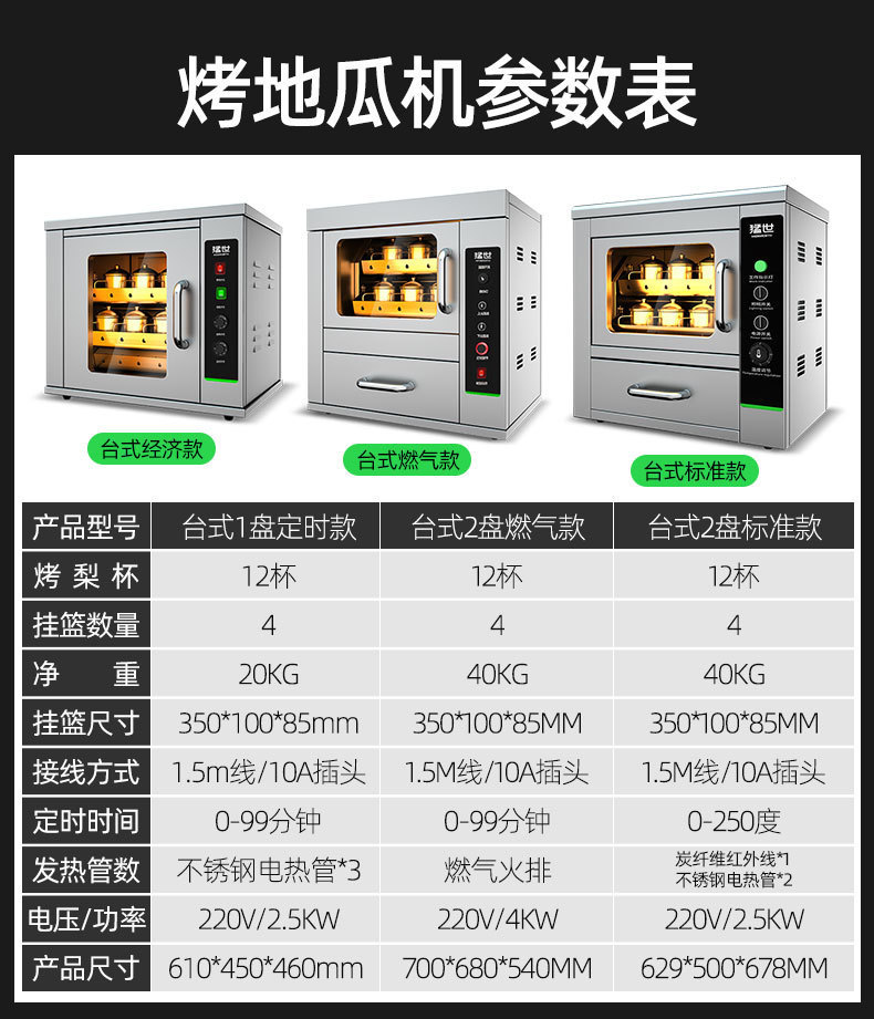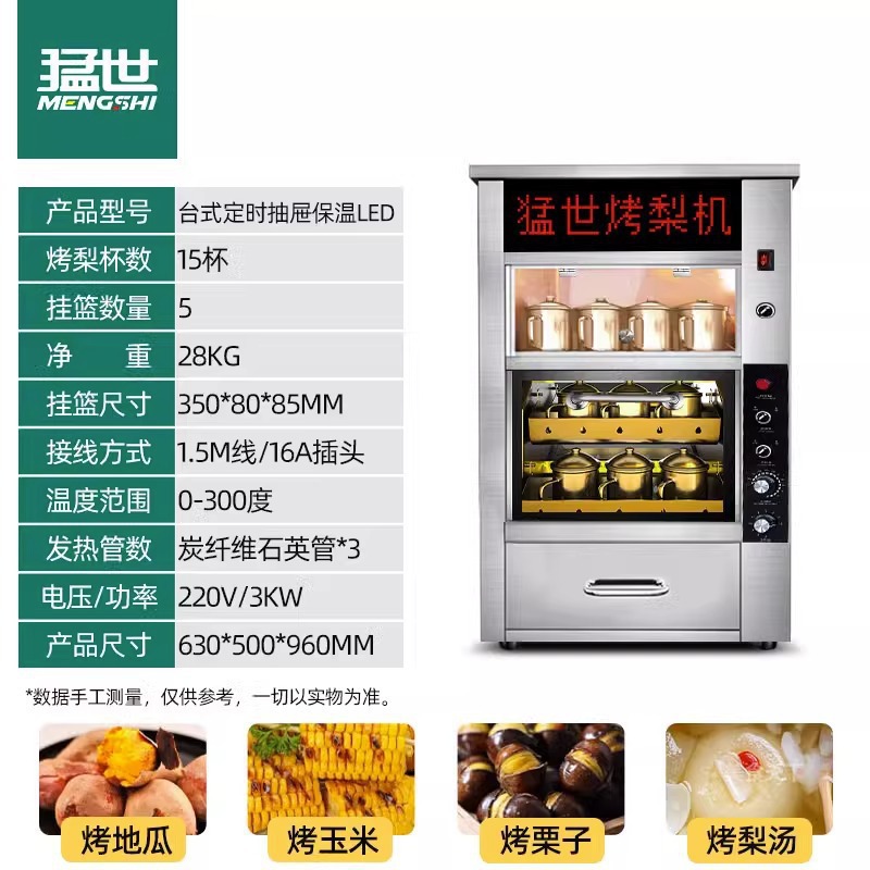 • 전기 가열 데스크탑 12.5kg - 타이밍 - 서랍 - 단열 디스플레이 유형 C - LED 광고 - 구운 배 컵 15개 및 접시 1개