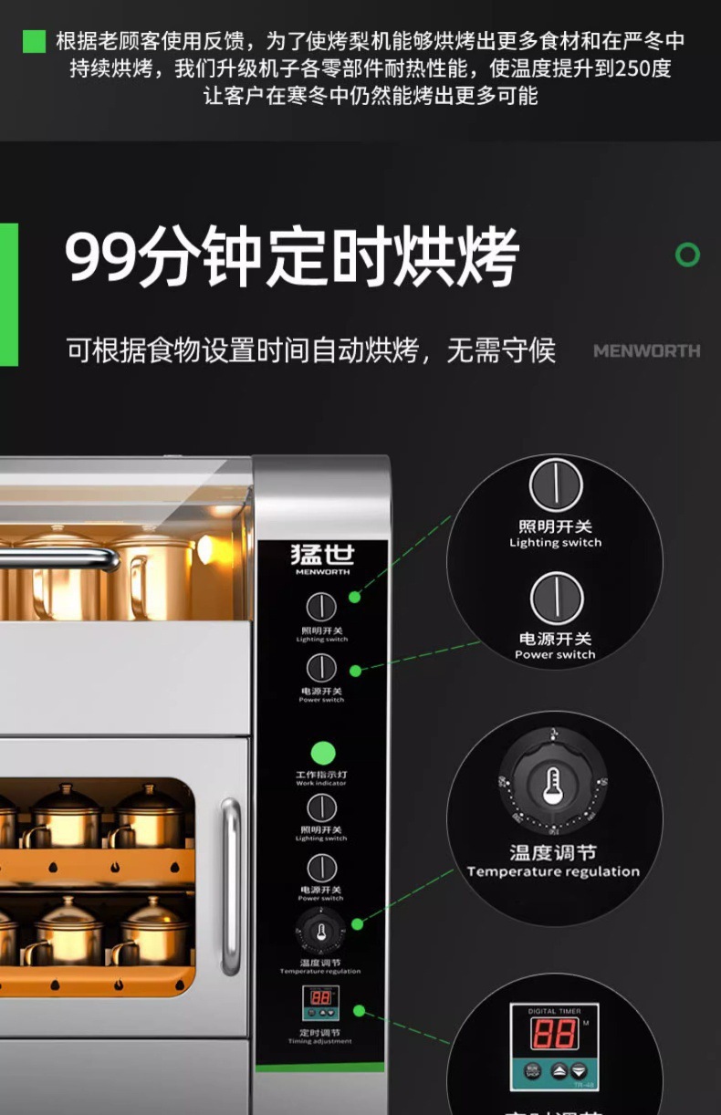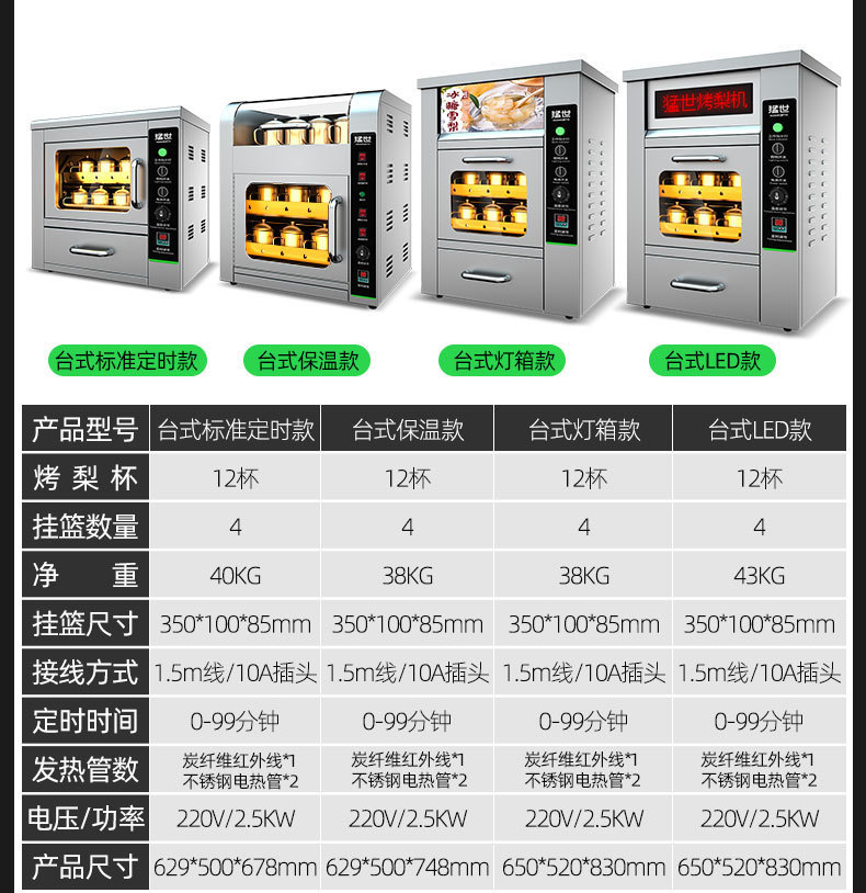 • 电热立式 27.5kg -定时-抽屉-24个烤梨杯1盘
