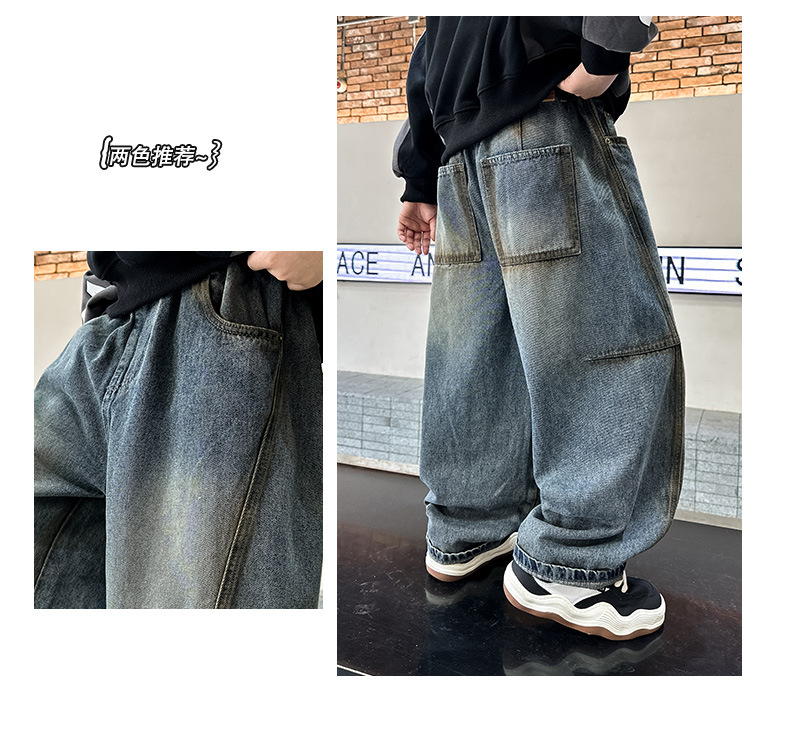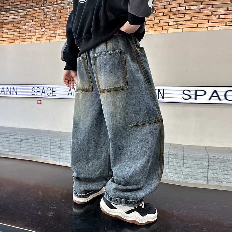 소년 청바지 2024 년 새로운 도착 중다 어린이 가을 착용 쿠션 유행 소년 가을 캐주얼 바지스토어 가기