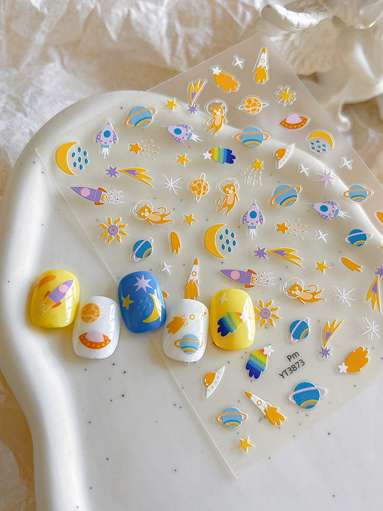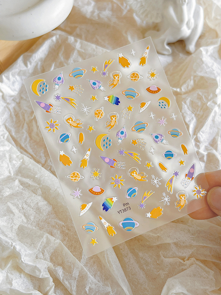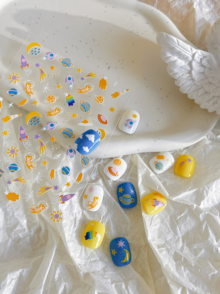 우주 공간 고양이 네일 아트 스티커 귀여운 달콤한 차가운 바람 유성 4 망 스타 얇은 인대 접착 네일 장식 도매스토어 가기