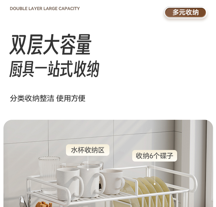 주방 통합 강화 요리 보관 랙 주방 가정용 조리대 싱크 다기능 건조 요리 및 젓가락 보관 랙